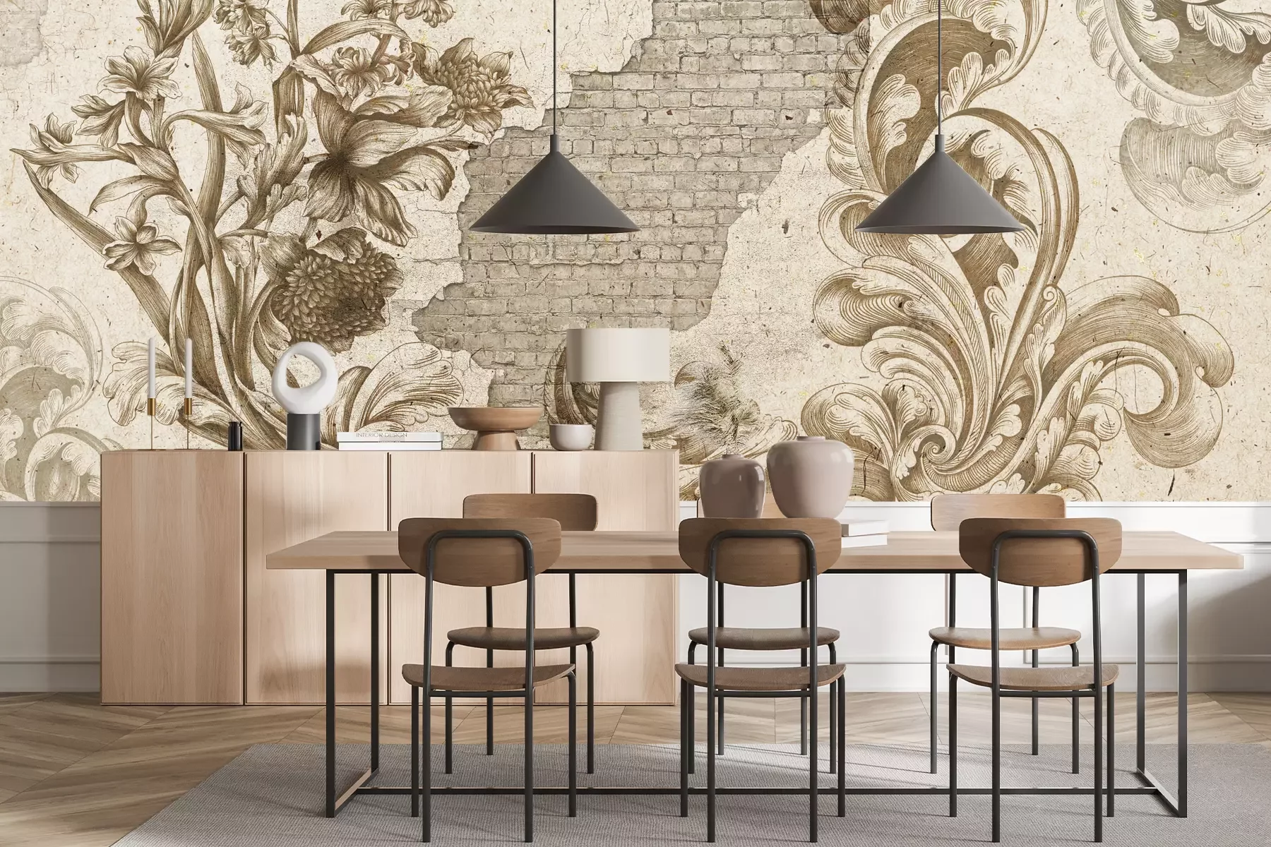 Het materiaal Premium+ is een gestructureerd vinyl op vlies met een gewicht van 255 g/m², dat kleine oneffenheden in de muur effectief camoufleert. De subtiele structuur van fijn zand geeft het oppervlak een exclusieve uitstraling, terwijl de halfmatte afwerking de diepte van de kleuren benadrukt. Het materiaal is dampdoorlatend, waardoor het ook in de keuken en badkamer kan worden gebruikt. De maximale breedte van één baan bedraagt 100 cm – bij grotere afmetingen wordt het fotobehang in meerdere gelijke banen verdeeld. De lijm wordt direct op de muur aangebracht en het behang wordt rand-aan-rand geplakt, wat zorgt voor een esthetisch resultaat zonder zichtbare naden. Het oppervlak kan gemakkelijk worden schoongemaakt door het voorzichtig af te nemen met een vochtige doek.