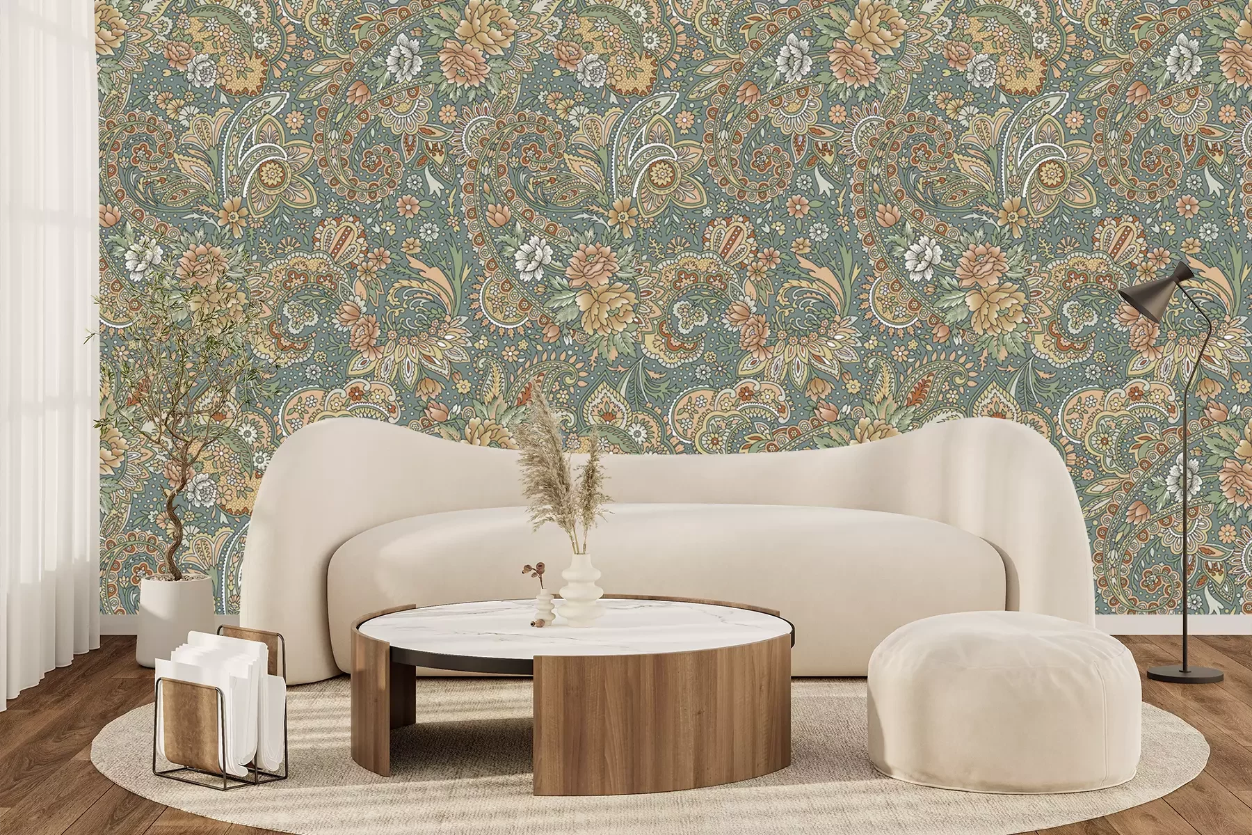 Het materiaal Standard is een hoogwaardig latexmateriaal met een glad, mat oppervlak. Dankzij de HP Latex-printtechnologie zijn de kleuren intens, duurzaam en UV-bestendig, waardoor het patroon jarenlang een onberispelijke uitstraling behoudt. Vervuilde oppervlakken kunnen voorzichtig worden afgeveegd met een droge doek. De maximale breedte van één baan bedraagt 95 cm of 105 cm – afhankelijk van de bestelde fotobehangbreedte. Bij grotere afmetingen wordt het patroon verdeeld over meerdere gelijkmatige banen. Het fotobehang wordt rand-aan-randaangebracht, wat vrijwel onzichtbare naden mogelijk maakt.