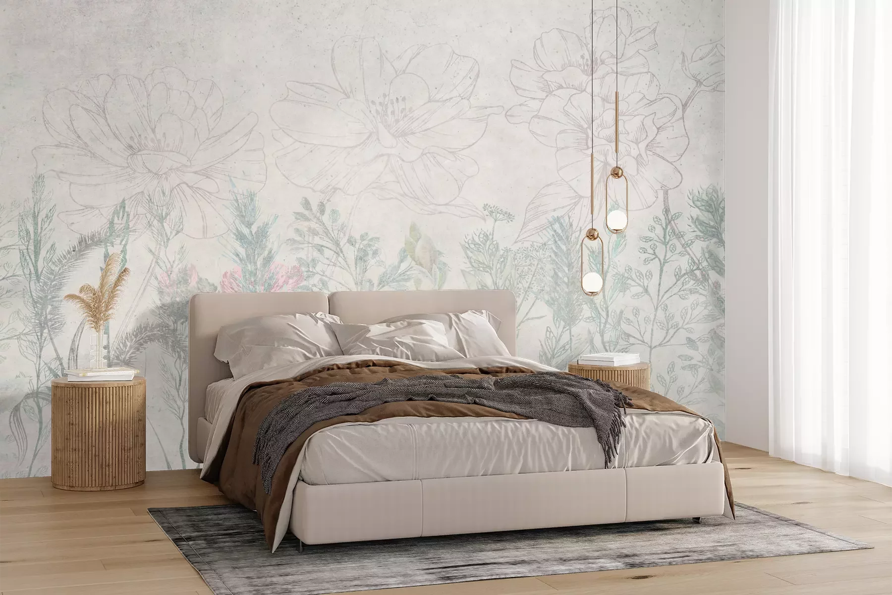 Het materiaal Premium+ is een gestructureerd vinyl op vlies met een gewicht van 255 g/m², dat kleine oneffenheden in de muur effectief camoufleert. De subtiele structuur van fijn zand geeft het oppervlak een exclusieve uitstraling, terwijl de halfmatte afwerking de diepte van de kleuren benadrukt. Het materiaal is dampdoorlatend, waardoor het ook in de keuken en badkamer kan worden gebruikt. De maximale breedte van één baan bedraagt 100 cm – bij grotere afmetingen wordt het fotobehang in meerdere gelijke banen verdeeld. De lijm wordt direct op de muur aangebracht en het behang wordt rand-aan-rand geplakt, wat zorgt voor een esthetisch resultaat zonder zichtbare naden. Het oppervlak kan gemakkelijk worden schoongemaakt door het voorzichtig af te nemen met een vochtige doek.