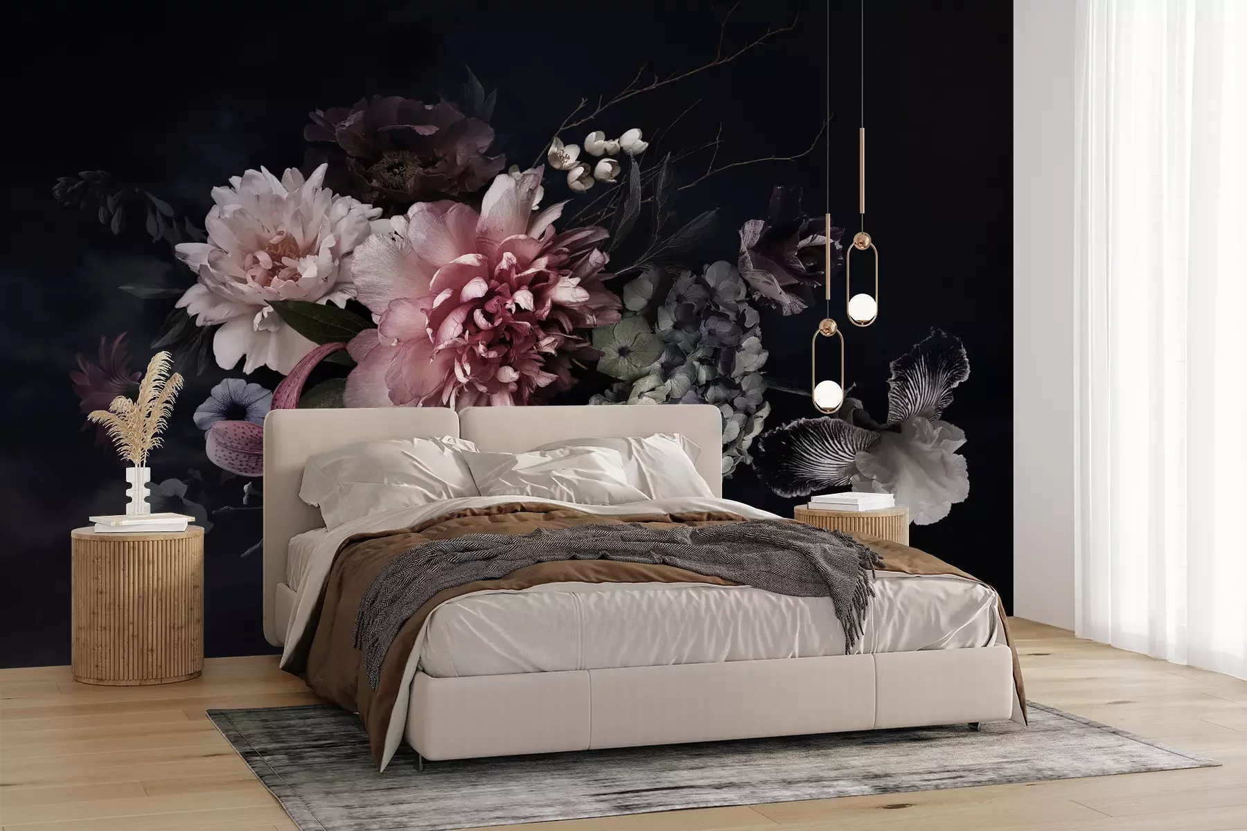 Het materiaal Premium+ is een gestructureerd vinyl op vlies met een gewicht van 255 g/m², dat kleine oneffenheden in de muur effectief camoufleert. De subtiele structuur van fijn zand geeft het oppervlak een exclusieve uitstraling, terwijl de halfmatte afwerking de diepte van de kleuren benadrukt. Het materiaal is dampdoorlatend, waardoor het ook in de keuken en badkamer kan worden gebruikt. De maximale breedte van één baan bedraagt 100 cm – bij grotere afmetingen wordt het fotobehang in meerdere gelijke banen verdeeld. De lijm wordt direct op de muur aangebracht en het behang wordt rand-aan-rand geplakt, wat zorgt voor een esthetisch resultaat zonder zichtbare naden. Het oppervlak kan gemakkelijk worden schoongemaakt door het voorzichtig af te nemen met een vochtige doek.