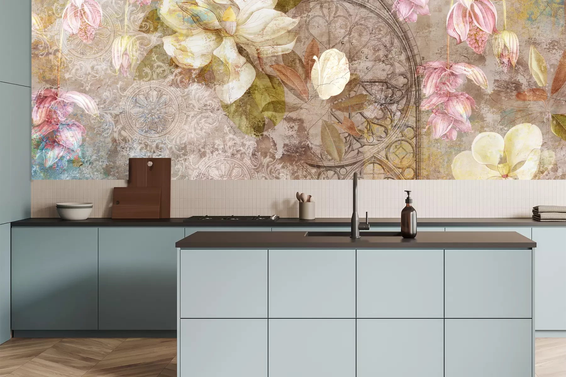 Het materiaal Premium is een glad vinyl op vlies, dat bestand is tegen uitrekken en vervorming. Het is dampdoorlatend – de muren kunnen vrij ademen – waardoor het geschikt is voor gebruik in de keuken en badkamer. Bij vervuiling kan het materiaal worden afgenomen met een vochtige doek. De maximale breedte van één baan bedraagt 95 of 105 cm, afhankelijk van de beschikbaarheid. Montage vindt plaats met de rand-aan-rand methode, wat een esthetisch resultaat zonder zichtbare naden oplevert. Omdat de lijm rechtstreeks op de muur wordt aangebracht, verloopt de installatie van het fotobehang snel en eenvoudig.