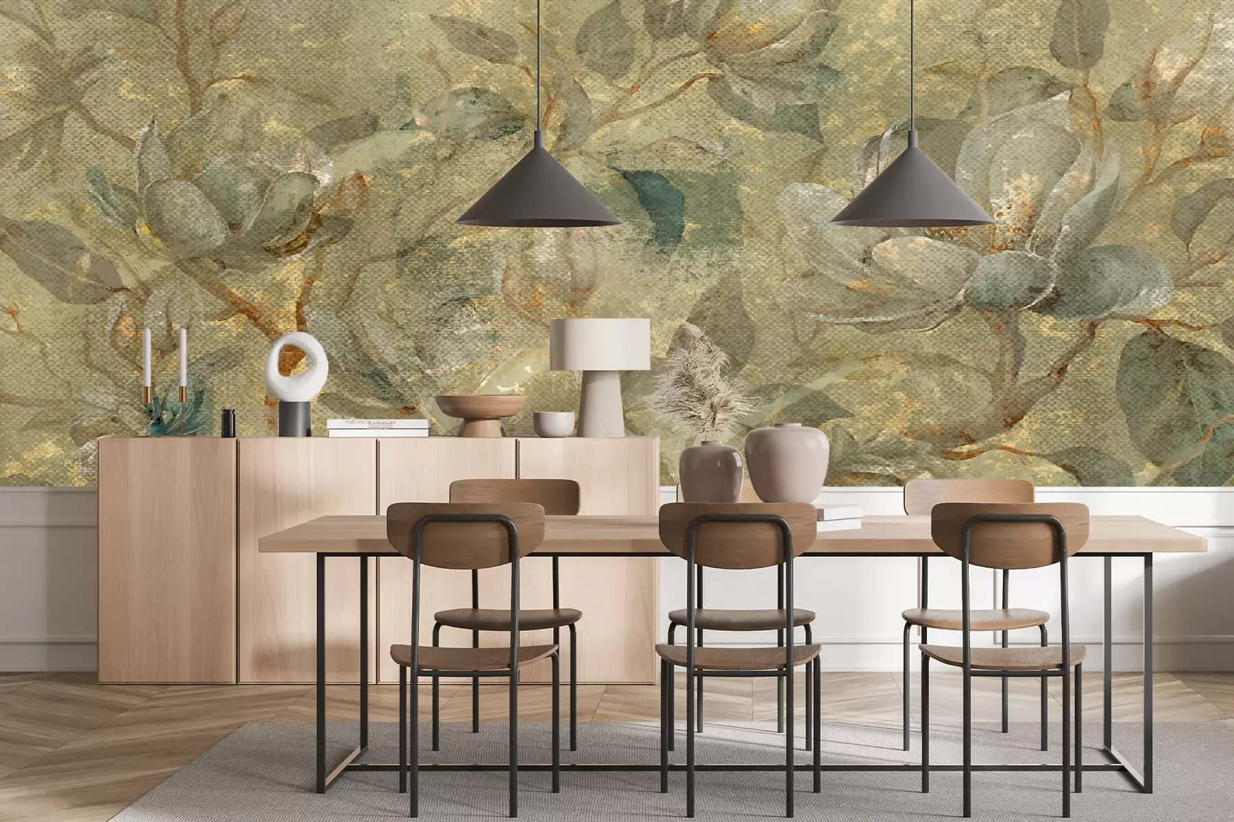 Het materiaal Standard is een hoogwaardig latexmateriaal met een glad, mat oppervlak. Dankzij de HP Latex-printtechnologie zijn de kleuren intens, duurzaam en UV-bestendig, waardoor het patroon jarenlang een onberispelijke uitstraling behoudt. Vervuilde oppervlakken kunnen voorzichtig worden afgeveegd met een droge doek. De maximale breedte van één baan bedraagt 95 cm of 105 cm – afhankelijk van de bestelde fotobehangbreedte. Bij grotere afmetingen wordt het patroon verdeeld over meerdere gelijkmatige banen. Het fotobehang wordt rand-aan-randaangebracht, wat vrijwel onzichtbare naden mogelijk maakt.