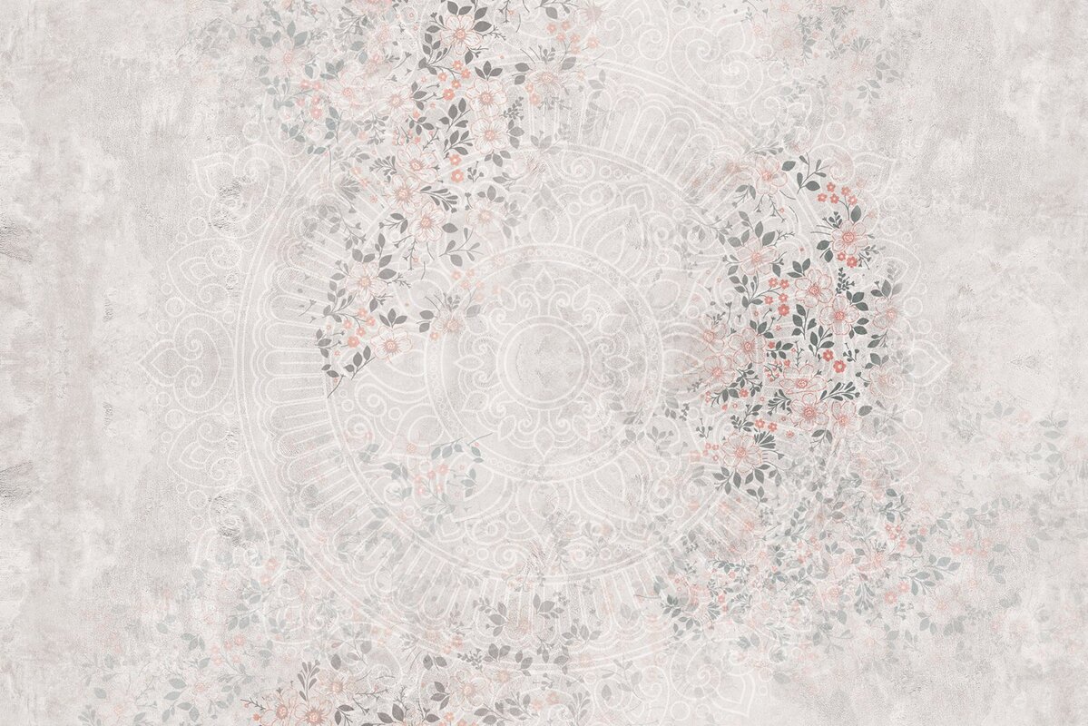 Fotobehang: Bloemenmandala op een lichte achtergrond