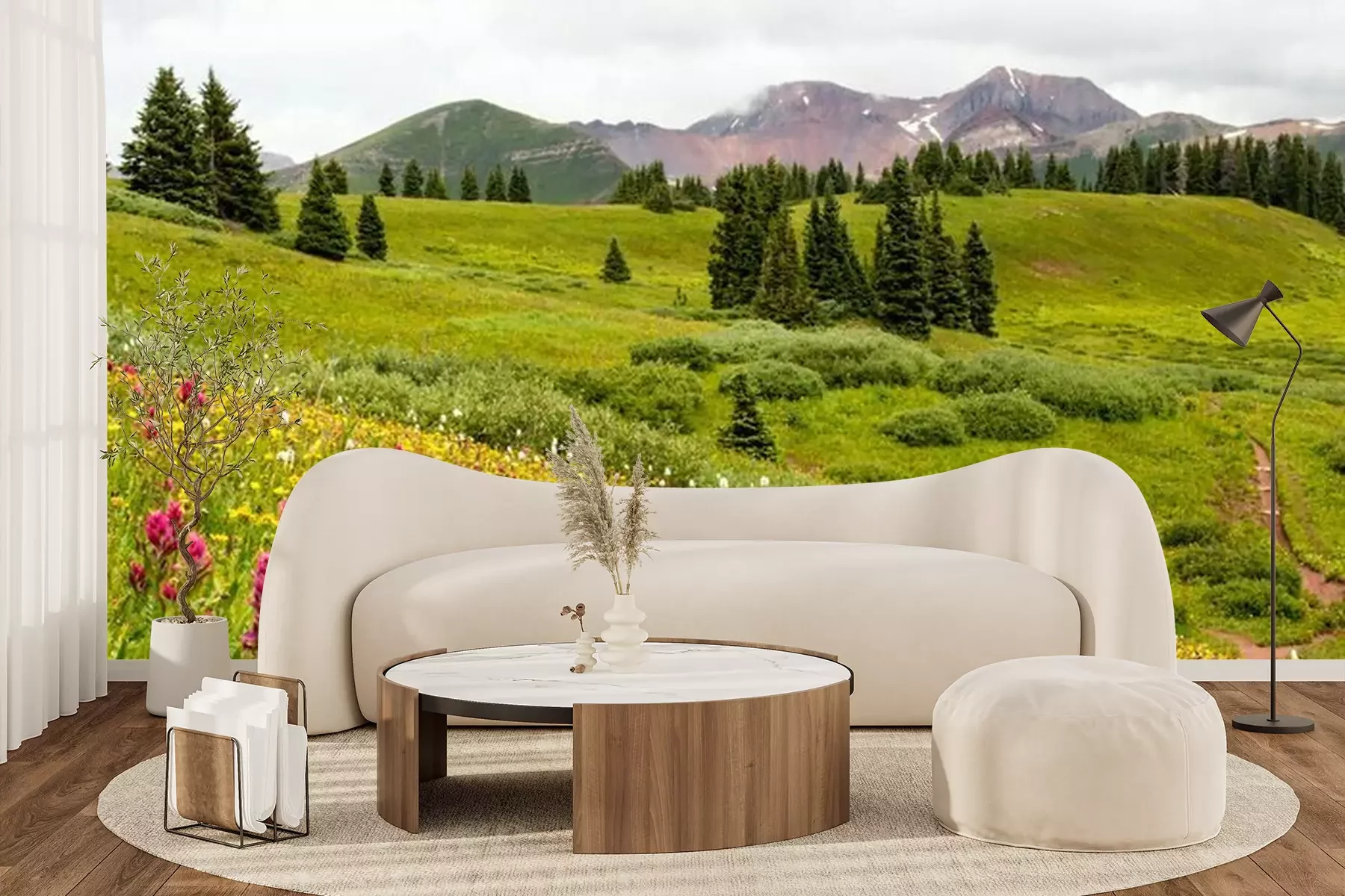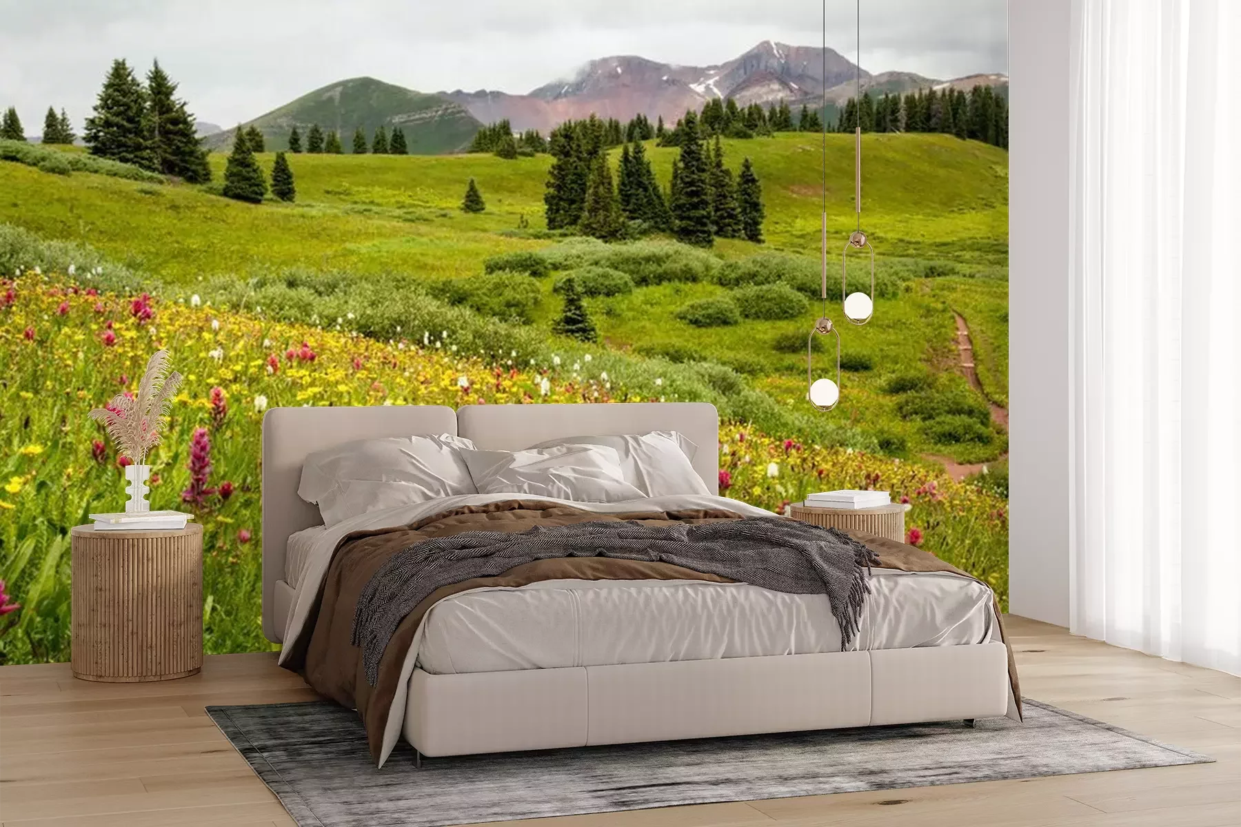 Het materiaal Premium+ is een gestructureerd vinyl op vlies met een gewicht van 255 g/m², dat kleine oneffenheden in de muur effectief camoufleert. De subtiele structuur van fijn zand geeft het oppervlak een exclusieve uitstraling, terwijl de halfmatte afwerking de diepte van de kleuren benadrukt. Het materiaal is dampdoorlatend, waardoor het ook in de keuken en badkamer kan worden gebruikt. De maximale breedte van één baan bedraagt 100 cm – bij grotere afmetingen wordt het fotobehang in meerdere gelijke banen verdeeld. De lijm wordt direct op de muur aangebracht en het behang wordt rand-aan-rand geplakt, wat zorgt voor een esthetisch resultaat zonder zichtbare naden. Het oppervlak kan gemakkelijk worden schoongemaakt door het voorzichtig af te nemen met een vochtige doek.