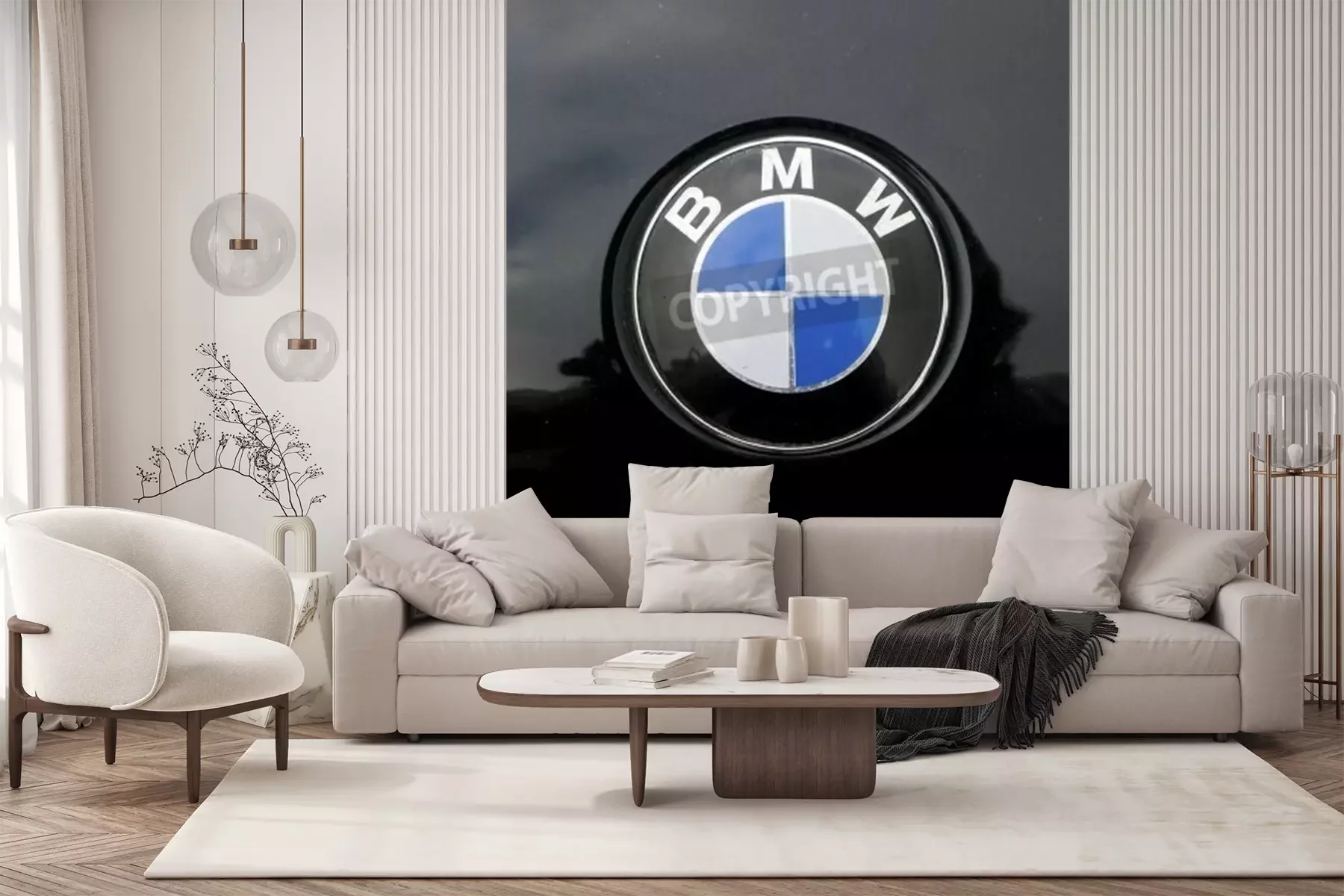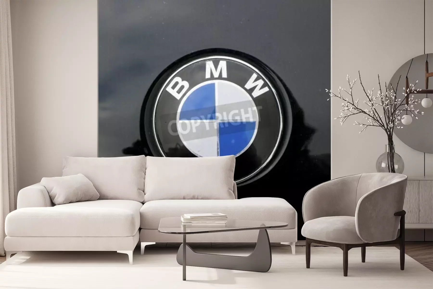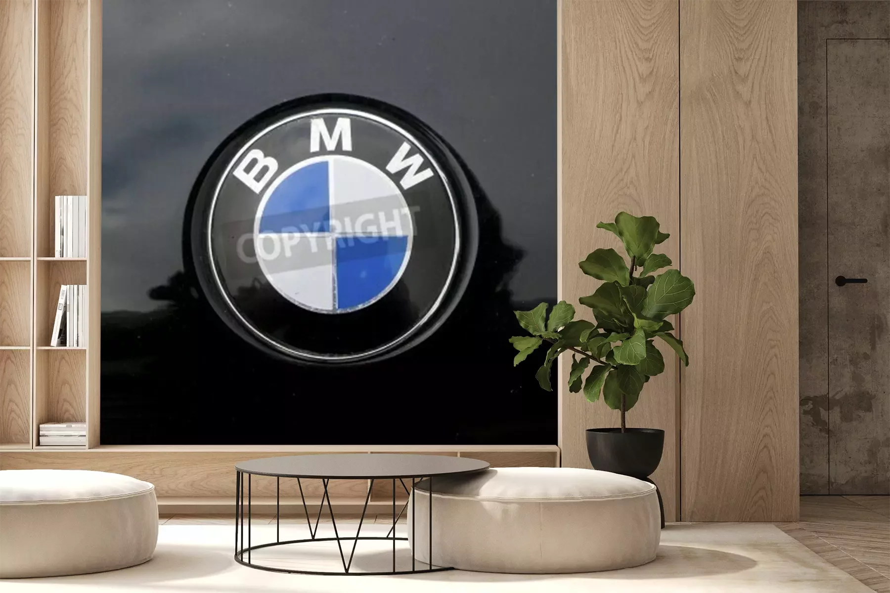 Fotobehang Bmw sign on car mixed with black