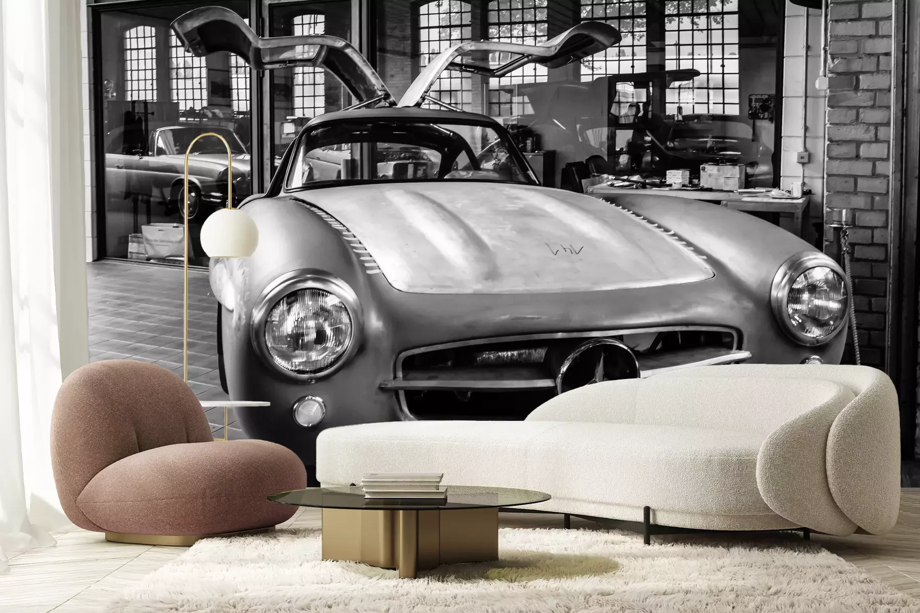 Body mercedes-benz 300sl in de restauratie-workshop van mercedes-benz