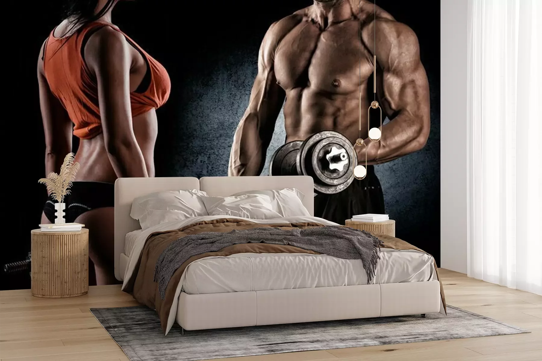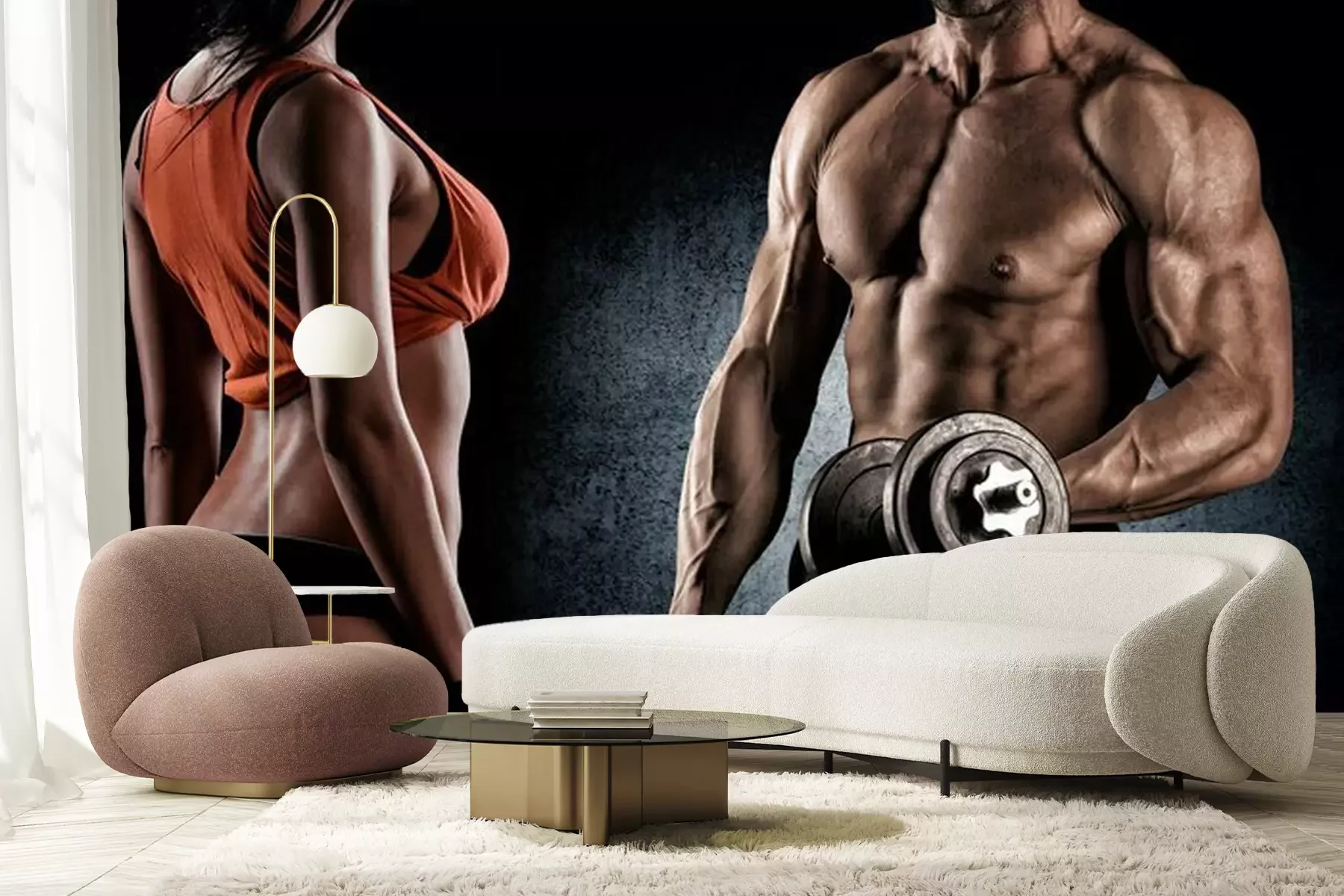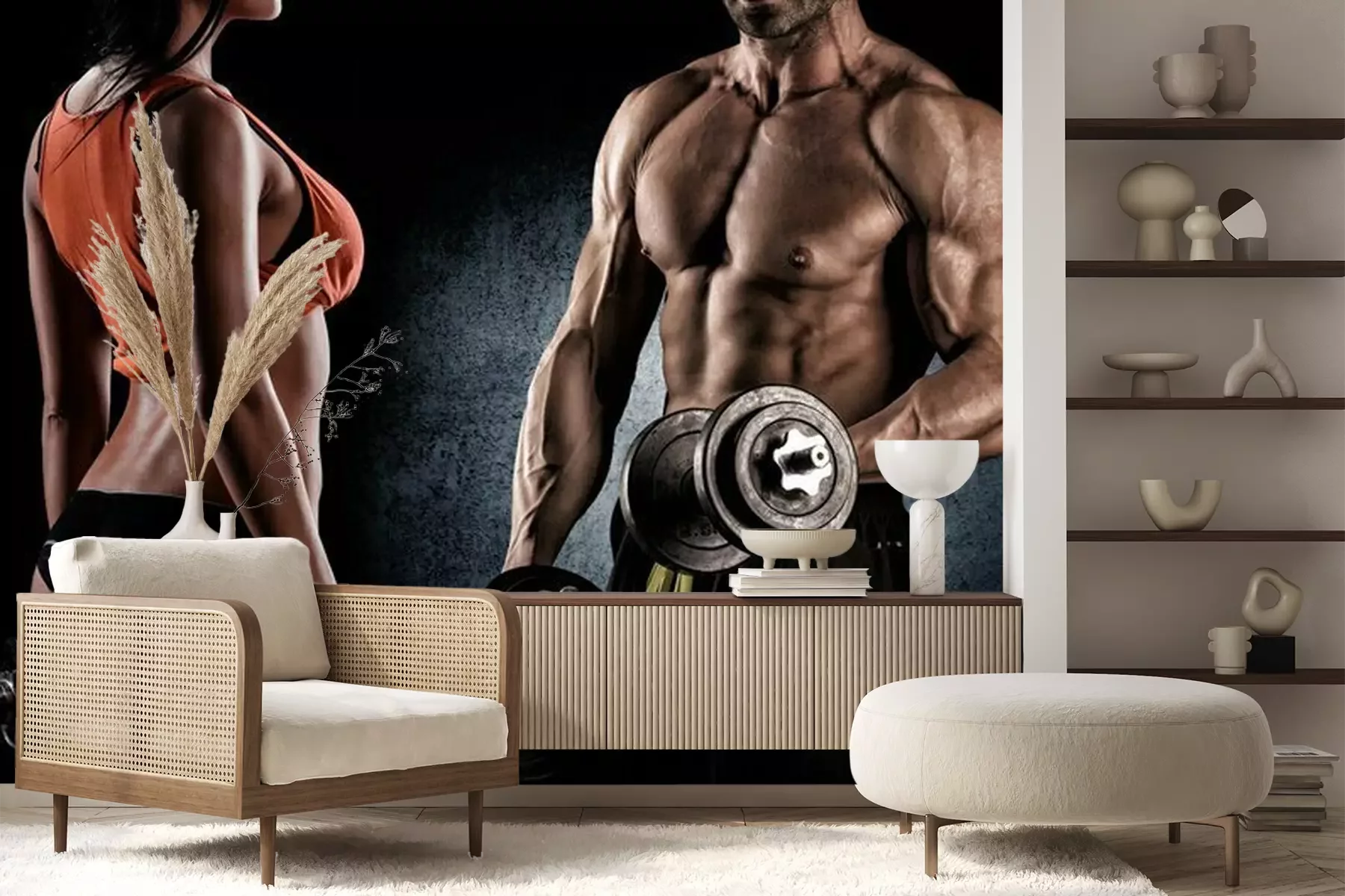 Fotobehang Bodybuilders trainen met gewichten