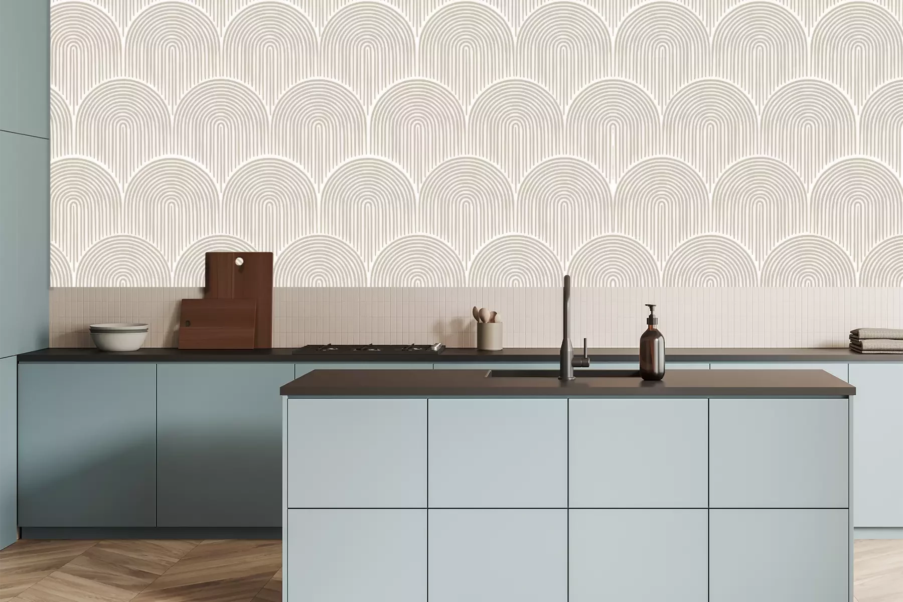 Het materiaal Premium is een glad vinyl op vlies, dat bestand is tegen uitrekken en vervorming. Het is dampdoorlatend – de muren kunnen vrij ademen – waardoor het geschikt is voor gebruik in de keuken en badkamer. Bij vervuiling kan het materiaal worden afgenomen met een vochtige doek. De maximale breedte van één baan bedraagt 95 of 105 cm, afhankelijk van de beschikbaarheid. Montage vindt plaats met de rand-aan-rand methode, wat een esthetisch resultaat zonder zichtbare naden oplevert. Omdat de lijm rechtstreeks op de muur wordt aangebracht, verloopt de installatie van het fotobehang snel en eenvoudig.