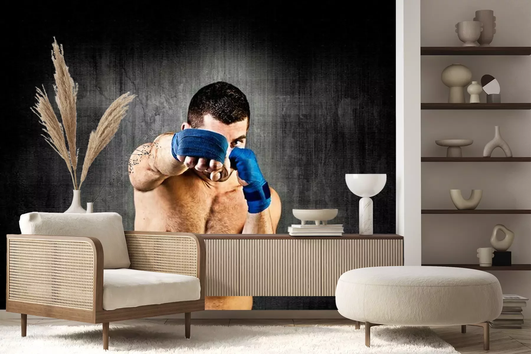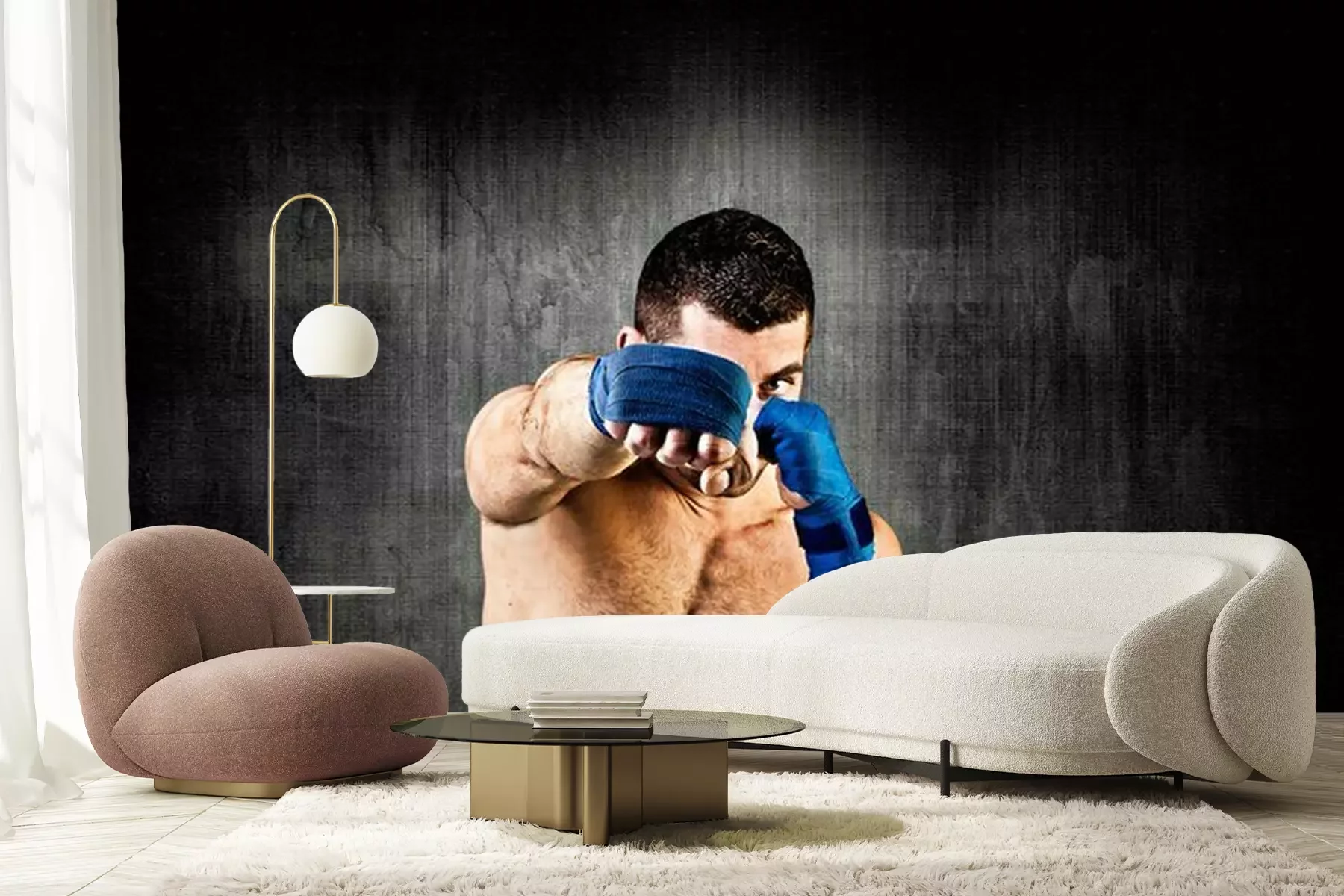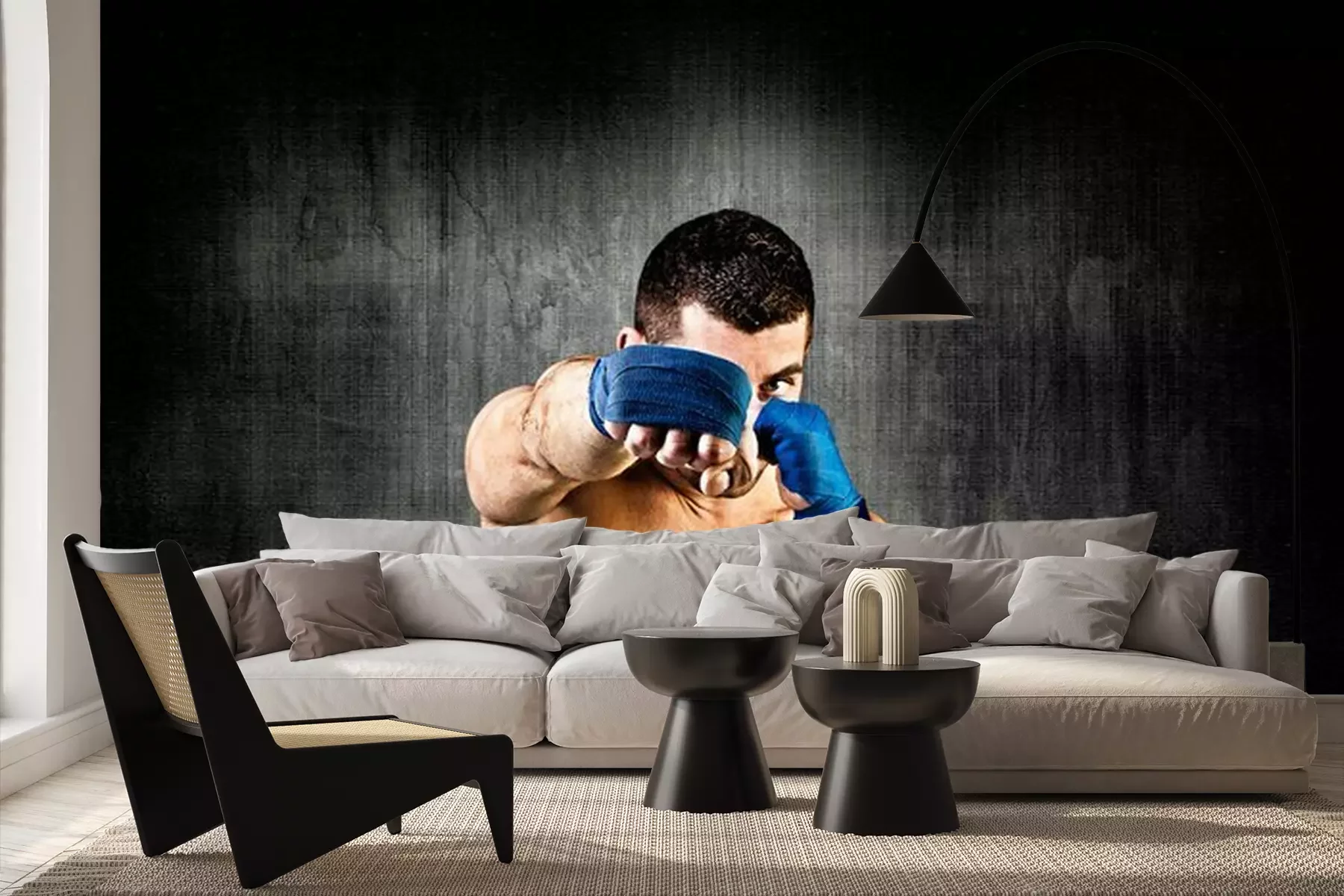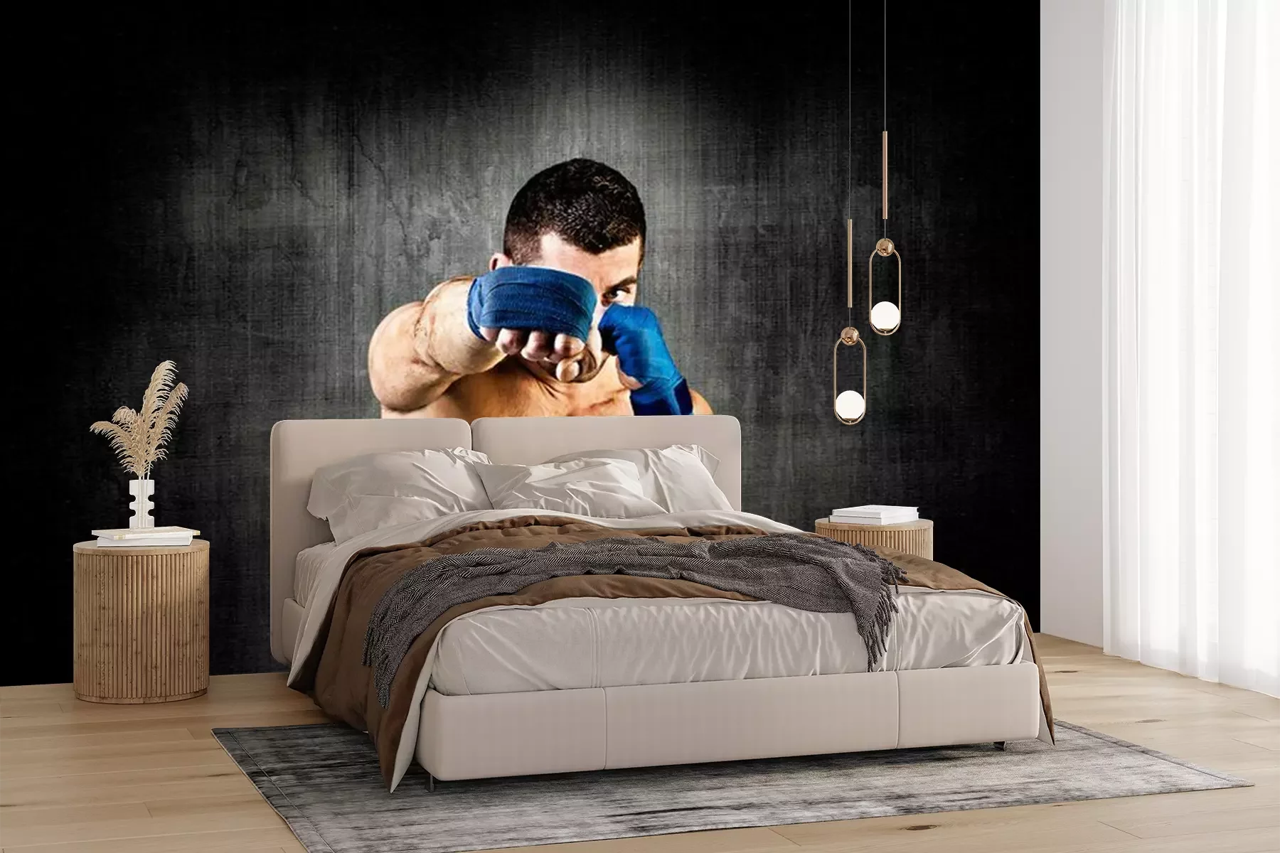 Fotobehang Bokser op de achtergrond van een betonnen muur