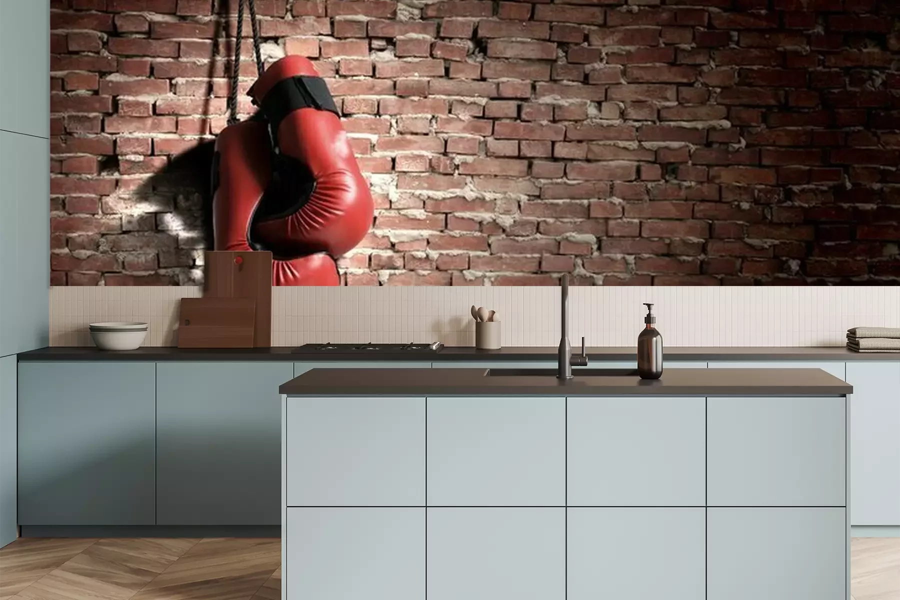 Het materiaal Premium is een glad vinyl op vlies, dat bestand is tegen uitrekken en vervorming. Het is dampdoorlatend – de muren kunnen vrij ademen – waardoor het geschikt is voor gebruik in de keuken en badkamer. Bij vervuiling kan het materiaal worden afgenomen met een vochtige doek. De maximale breedte van één baan bedraagt 95 of 105 cm, afhankelijk van de beschikbaarheid. Montage vindt plaats met de rand-aan-rand methode, wat een esthetisch resultaat zonder zichtbare naden oplevert. Omdat de lijm rechtstreeks op de muur wordt aangebracht, verloopt de installatie van het fotobehang snel en eenvoudig.