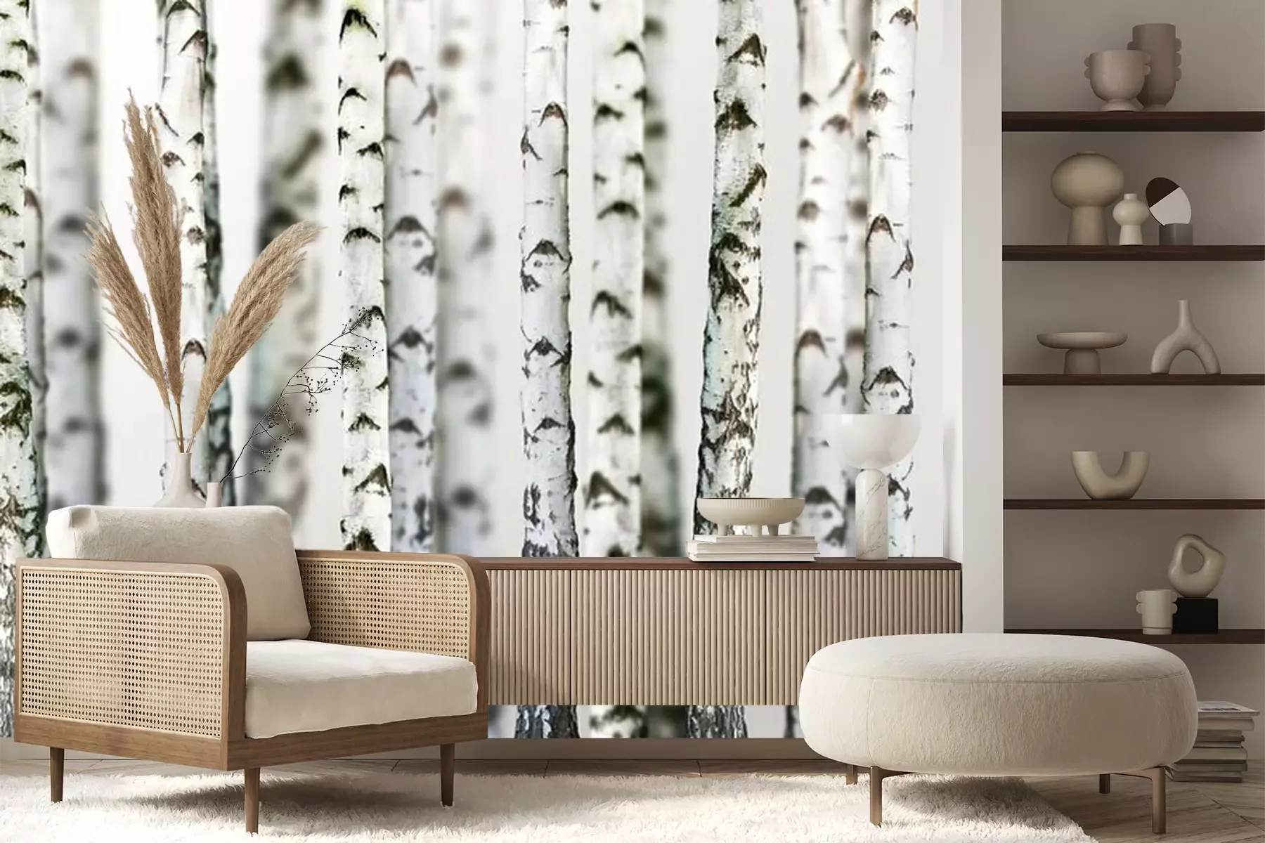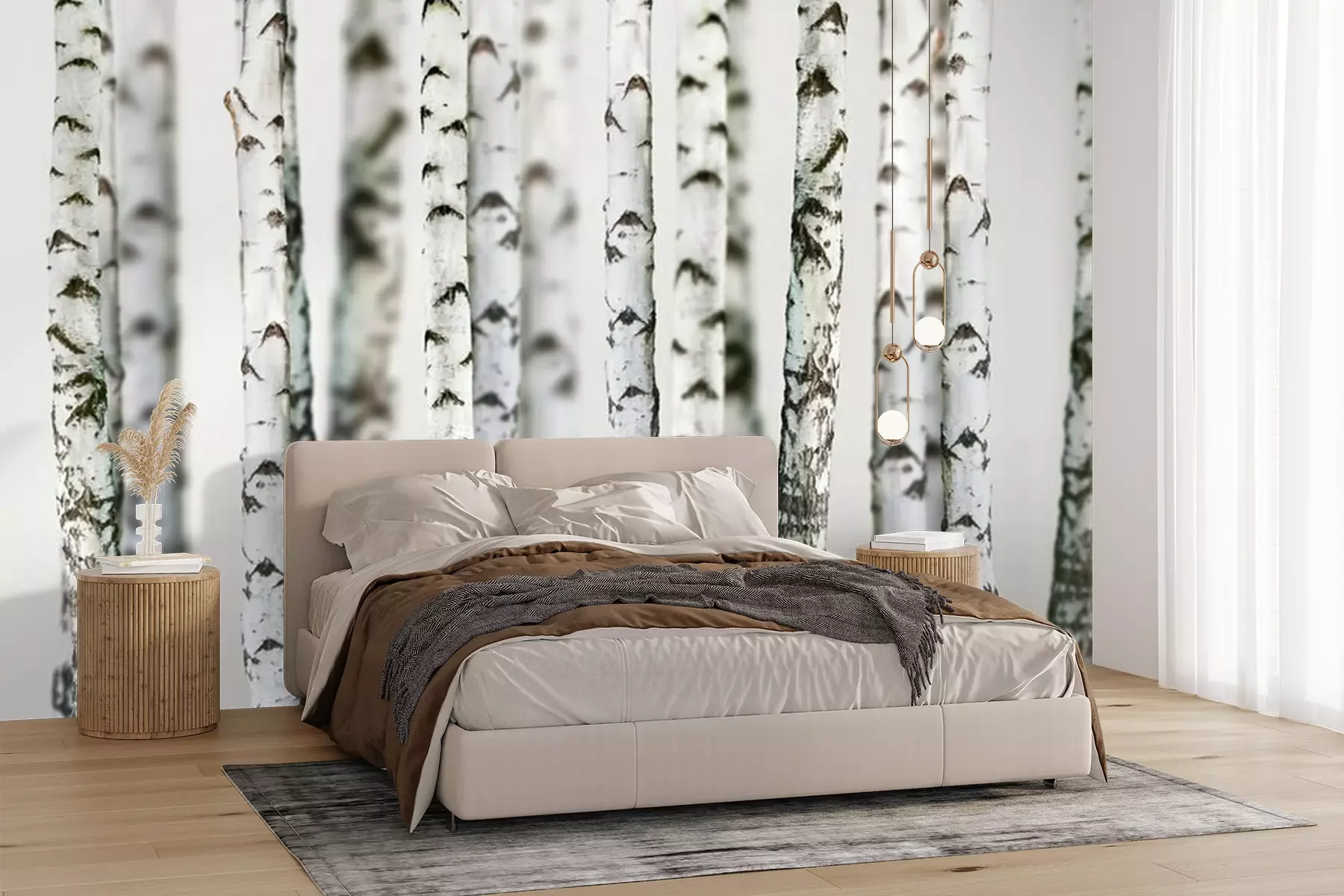 Het materiaal Premium+ is een gestructureerd vinyl op vlies met een gewicht van 255 g/m², dat kleine oneffenheden in de muur effectief camoufleert. De subtiele structuur van fijn zand geeft het oppervlak een exclusieve uitstraling, terwijl de halfmatte afwerking de diepte van de kleuren benadrukt. Het materiaal is dampdoorlatend, waardoor het ook in de keuken en badkamer kan worden gebruikt. De maximale breedte van één baan bedraagt 100 cm – bij grotere afmetingen wordt het fotobehang in meerdere gelijke banen verdeeld. De lijm wordt direct op de muur aangebracht en het behang wordt rand-aan-rand geplakt, wat zorgt voor een esthetisch resultaat zonder zichtbare naden. Het oppervlak kan gemakkelijk worden schoongemaakt door het voorzichtig af te nemen met een vochtige doek.