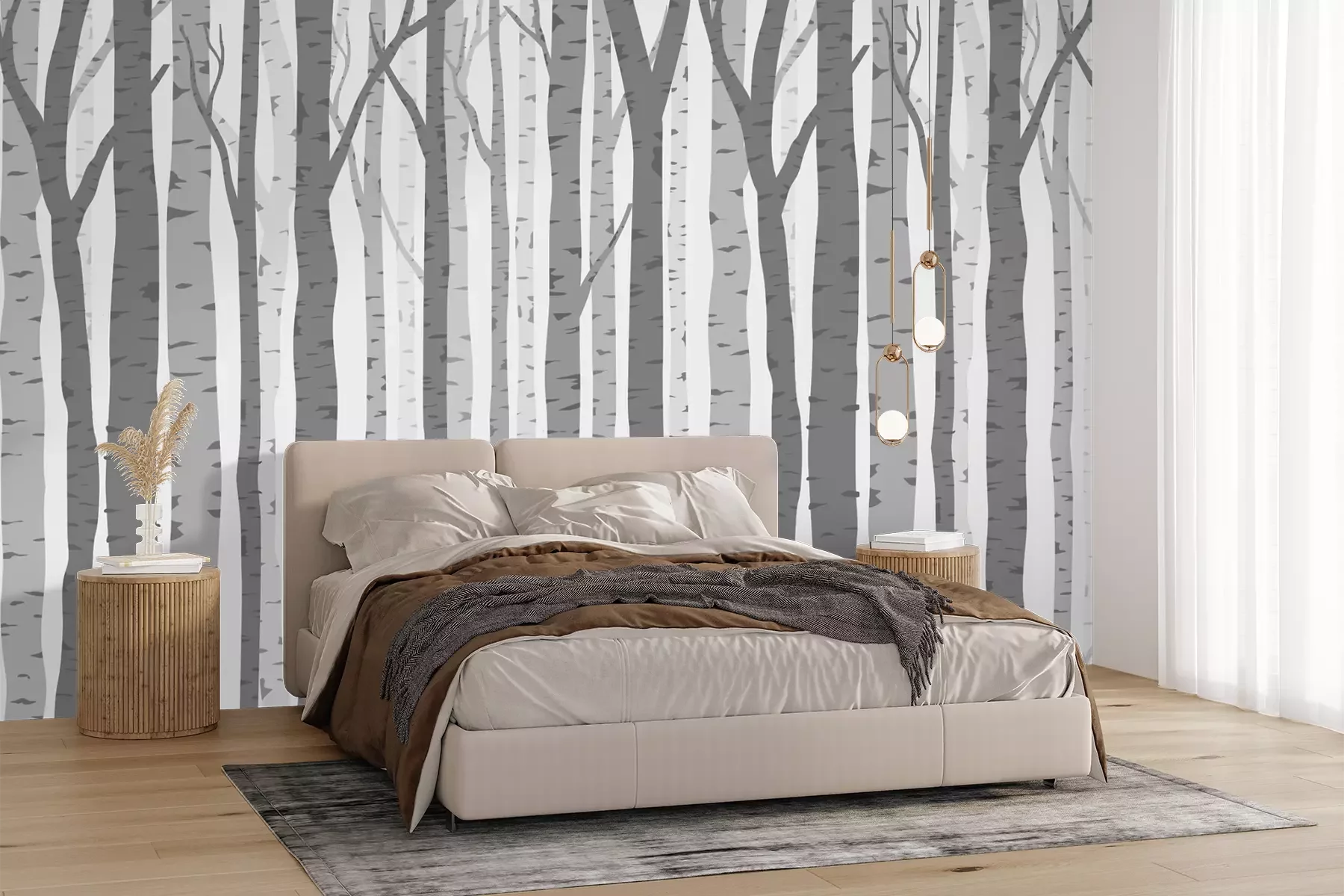 Het materiaal Premium+ is een gestructureerd vinyl op vlies met een gewicht van 255 g/m², dat kleine oneffenheden in de muur effectief camoufleert. De subtiele structuur van fijn zand geeft het oppervlak een exclusieve uitstraling, terwijl de halfmatte afwerking de diepte van de kleuren benadrukt. Het materiaal is dampdoorlatend, waardoor het ook in de keuken en badkamer kan worden gebruikt. De maximale breedte van één baan bedraagt 100 cm – bij grotere afmetingen wordt het fotobehang in meerdere gelijke banen verdeeld. De lijm wordt direct op de muur aangebracht en het behang wordt rand-aan-rand geplakt, wat zorgt voor een esthetisch resultaat zonder zichtbare naden. Het oppervlak kan gemakkelijk worden schoongemaakt door het voorzichtig af te nemen met een vochtige doek.