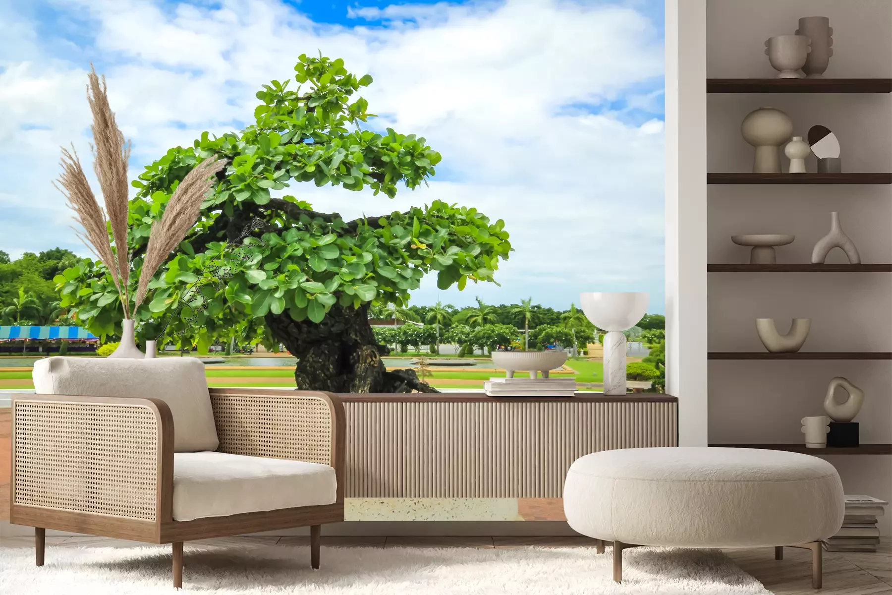 Het materiaal Premium+ is een gestructureerd vinyl op vlies met een gewicht van 255 g/m², dat kleine oneffenheden in de muur effectief camoufleert. De subtiele structuur van fijn zand geeft het oppervlak een exclusieve uitstraling, terwijl de halfmatte afwerking de diepte van de kleuren benadrukt. Het materiaal is dampdoorlatend, waardoor het ook in de keuken en badkamer kan worden gebruikt. De maximale breedte van één baan bedraagt 100 cm – bij grotere afmetingen wordt het fotobehang in meerdere gelijke banen verdeeld. De lijm wordt direct op de muur aangebracht en het behang wordt rand-aan-rand geplakt, wat zorgt voor een esthetisch resultaat zonder zichtbare naden. Het oppervlak kan gemakkelijk worden schoongemaakt door het voorzichtig af te nemen met een vochtige doek.