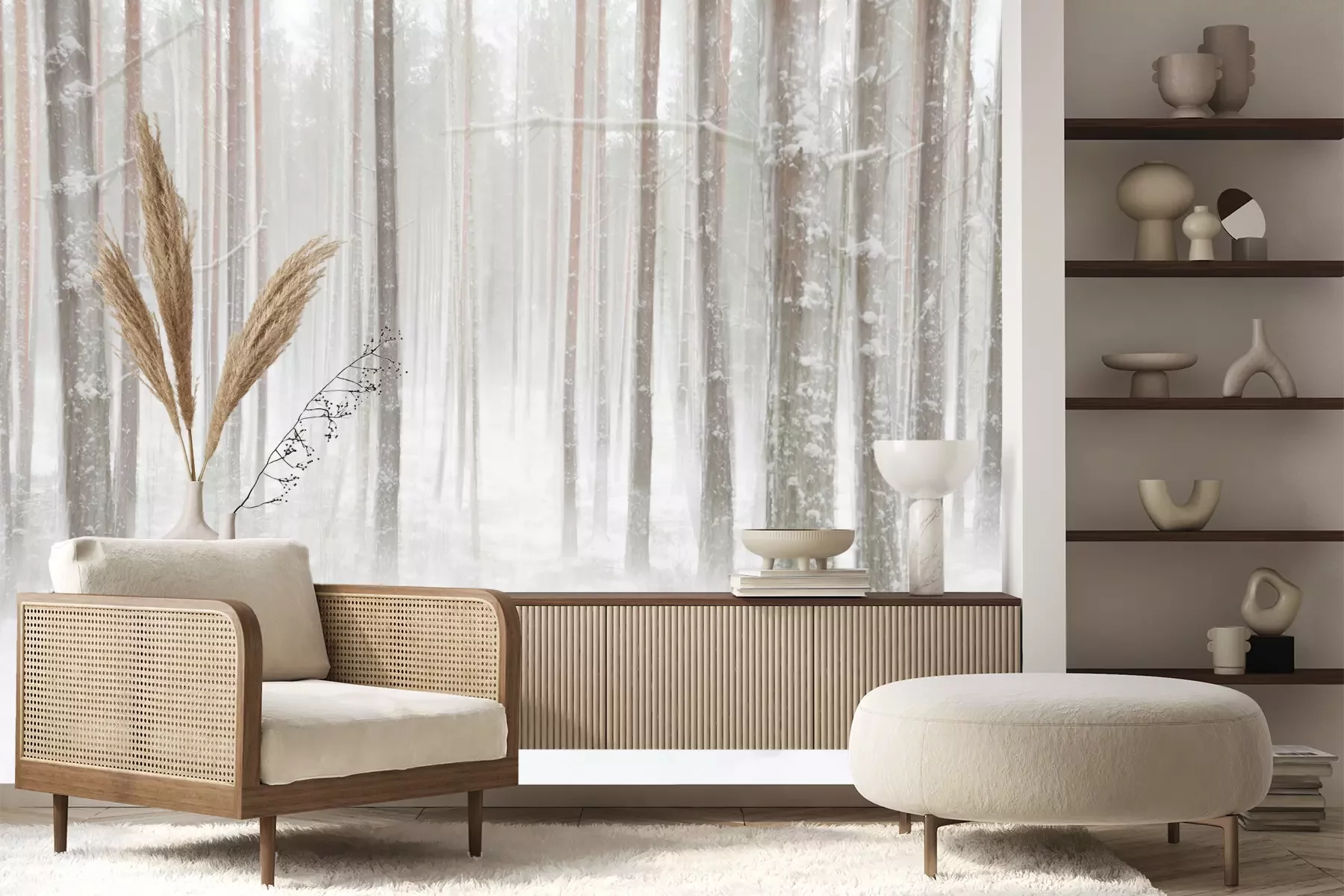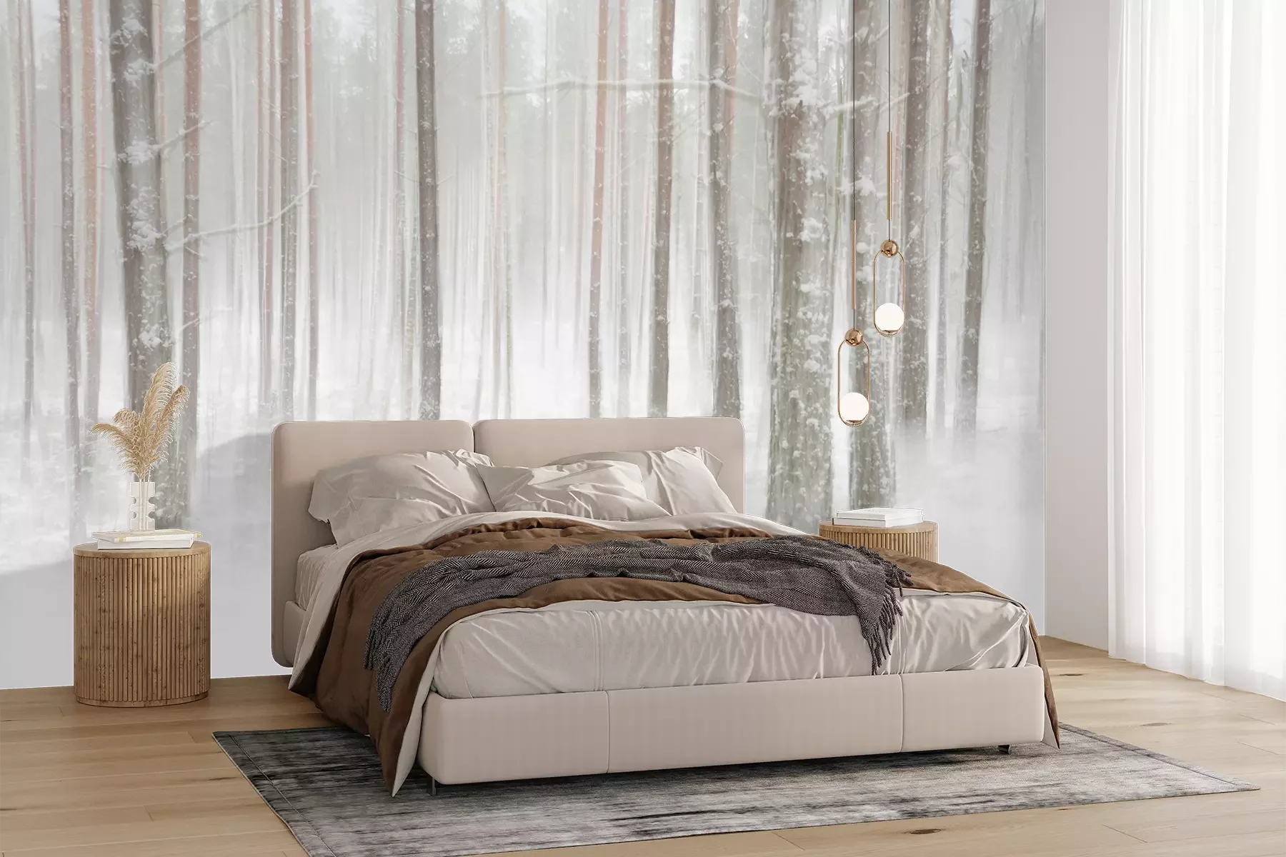 Het materiaal Premium+ is een gestructureerd vinyl op vlies met een gewicht van 255 g/m², dat kleine oneffenheden in de muur effectief camoufleert. De subtiele structuur van fijn zand geeft het oppervlak een exclusieve uitstraling, terwijl de halfmatte afwerking de diepte van de kleuren benadrukt. Het materiaal is dampdoorlatend, waardoor het ook in de keuken en badkamer kan worden gebruikt. De maximale breedte van één baan bedraagt 100 cm – bij grotere afmetingen wordt het fotobehang in meerdere gelijke banen verdeeld. De lijm wordt direct op de muur aangebracht en het behang wordt rand-aan-rand geplakt, wat zorgt voor een esthetisch resultaat zonder zichtbare naden. Het oppervlak kan gemakkelijk worden schoongemaakt door het voorzichtig af te nemen met een vochtige doek.