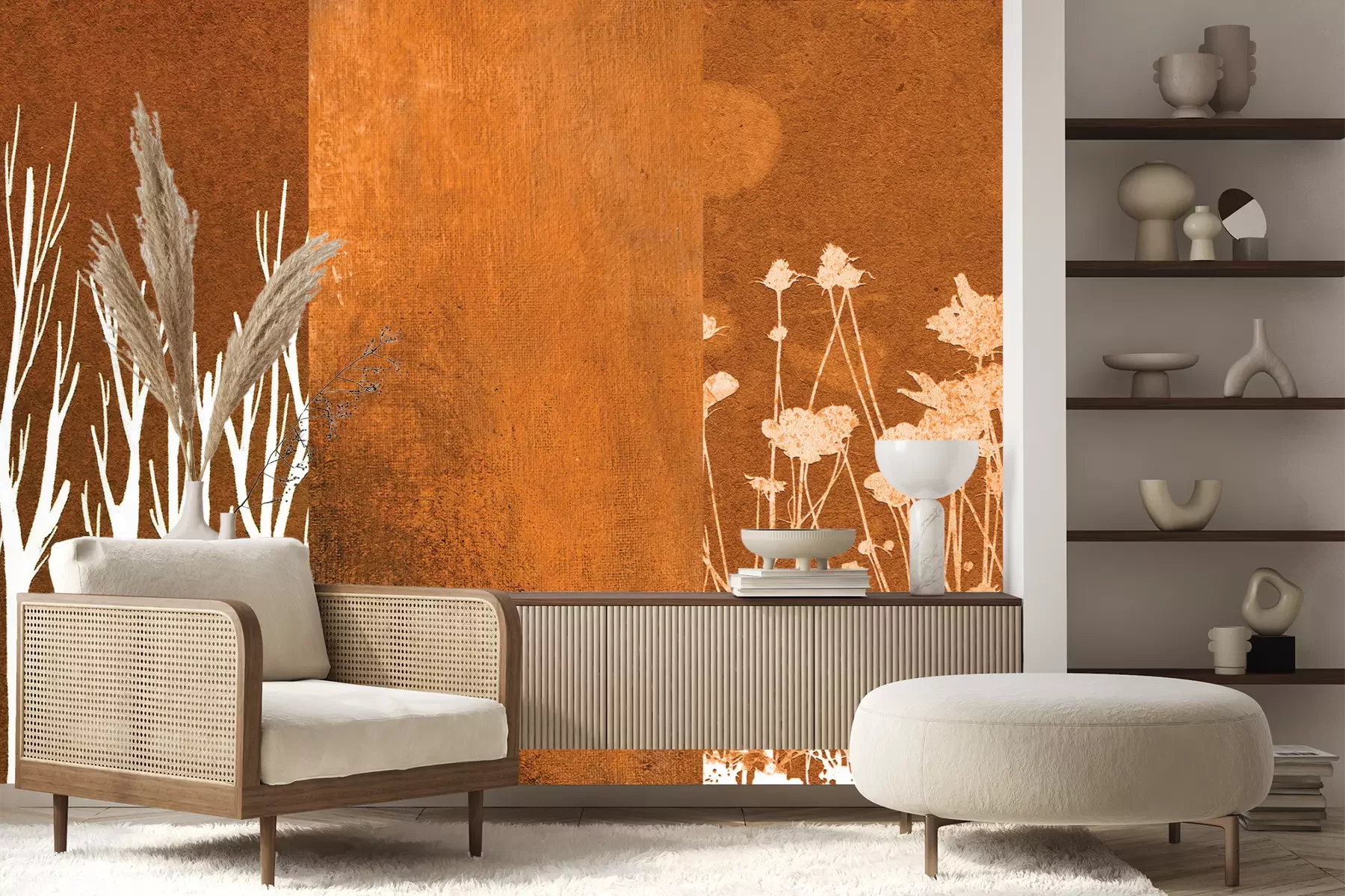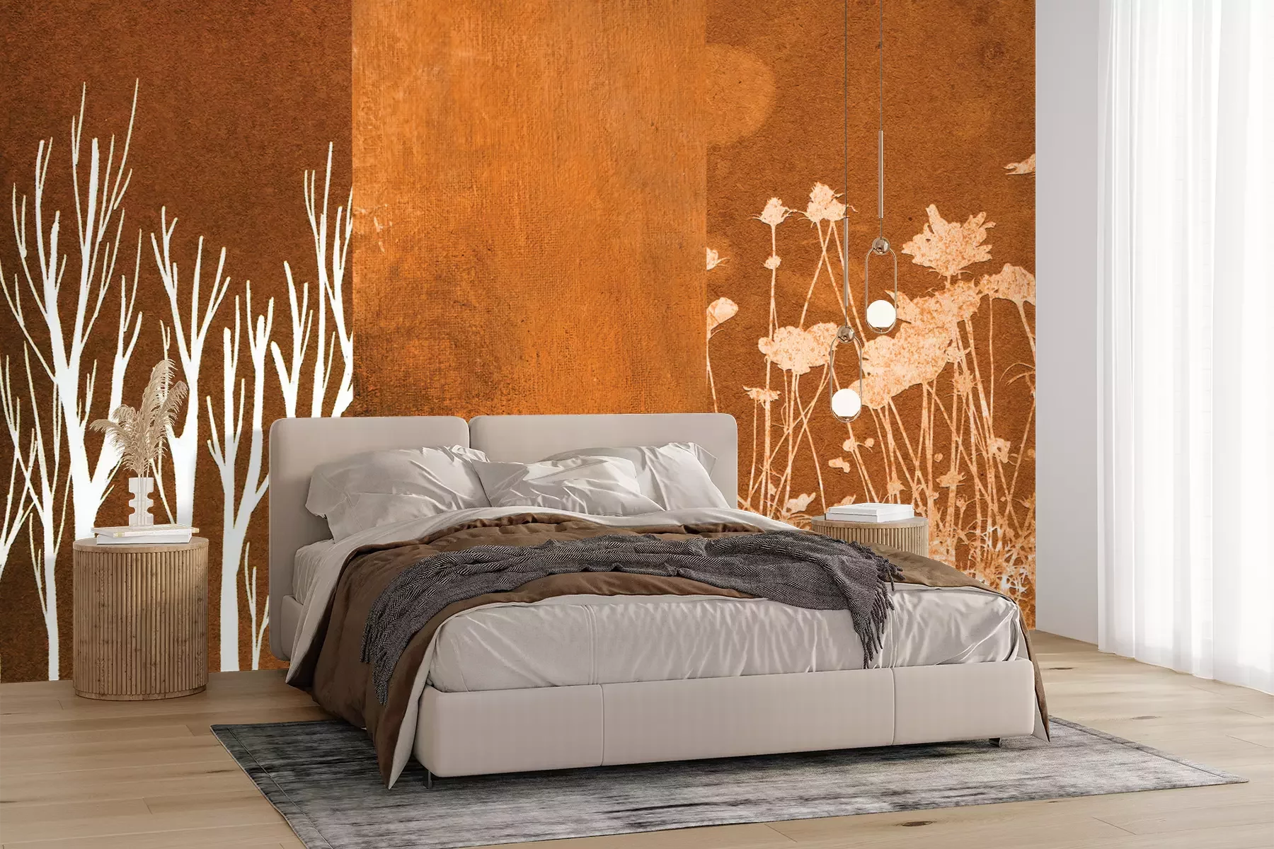 Het materiaal Premium+ is een gestructureerd vinyl op vlies met een gewicht van 255 g/m², dat kleine oneffenheden in de muur effectief camoufleert. De subtiele structuur van fijn zand geeft het oppervlak een exclusieve uitstraling, terwijl de halfmatte afwerking de diepte van de kleuren benadrukt. Het materiaal is dampdoorlatend, waardoor het ook in de keuken en badkamer kan worden gebruikt. De maximale breedte van één baan bedraagt 100 cm – bij grotere afmetingen wordt het fotobehang in meerdere gelijke banen verdeeld. De lijm wordt direct op de muur aangebracht en het behang wordt rand-aan-rand geplakt, wat zorgt voor een esthetisch resultaat zonder zichtbare naden. Het oppervlak kan gemakkelijk worden schoongemaakt door het voorzichtig af te nemen met een vochtige doek.