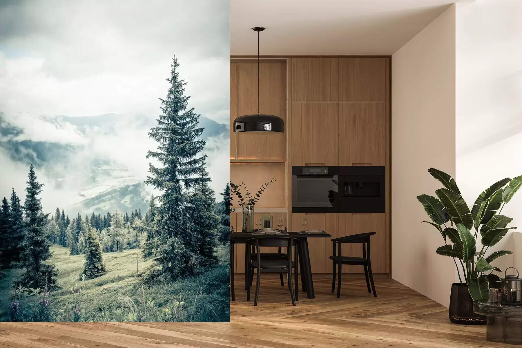 Het materiaal Premium+ is een gestructureerd vinyl op vlies met een gewicht van 255 g/m², dat kleine oneffenheden in de muur effectief camoufleert. De subtiele structuur van fijn zand geeft het oppervlak een exclusieve uitstraling, terwijl de halfmatte afwerking de diepte van de kleuren benadrukt. Het materiaal is dampdoorlatend, waardoor het ook in de keuken en badkamer kan worden gebruikt. De maximale breedte van één baan bedraagt 100 cm – bij grotere afmetingen wordt het fotobehang in meerdere gelijke banen verdeeld. De lijm wordt direct op de muur aangebracht en het behang wordt rand-aan-rand geplakt, wat zorgt voor een esthetisch resultaat zonder zichtbare naden. Het oppervlak kan gemakkelijk worden schoongemaakt door het voorzichtig af te nemen met een vochtige doek.