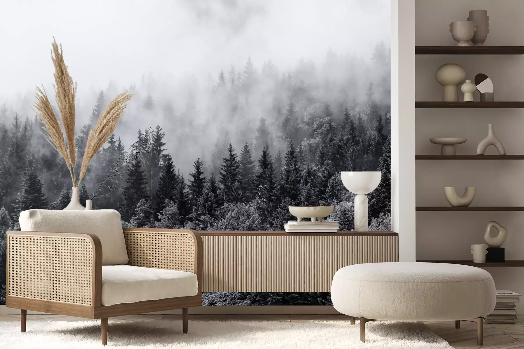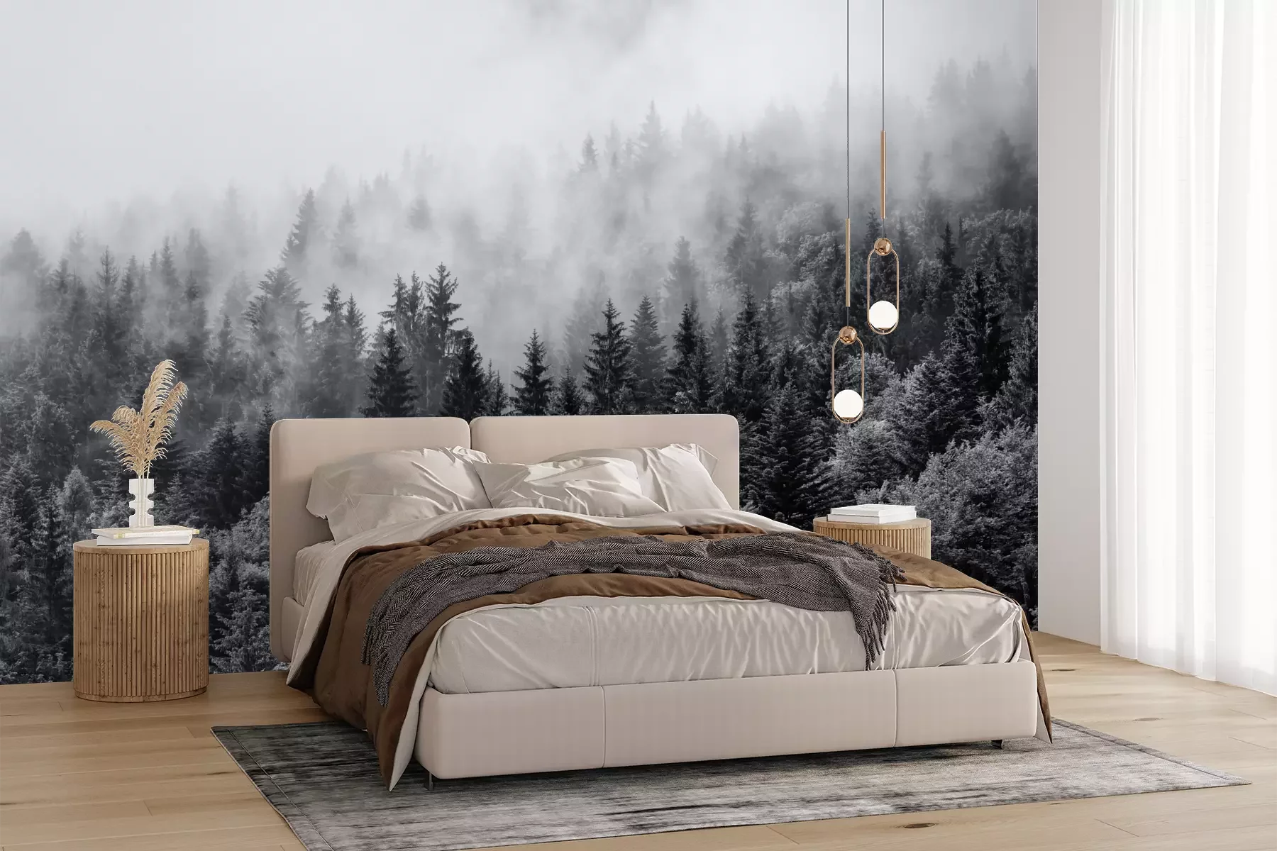 Het materiaal Premium+ is een gestructureerd vinyl op vlies met een gewicht van 255 g/m², dat kleine oneffenheden in de muur effectief camoufleert. De subtiele structuur van fijn zand geeft het oppervlak een exclusieve uitstraling, terwijl de halfmatte afwerking de diepte van de kleuren benadrukt. Het materiaal is dampdoorlatend, waardoor het ook in de keuken en badkamer kan worden gebruikt. De maximale breedte van één baan bedraagt 100 cm – bij grotere afmetingen wordt het fotobehang in meerdere gelijke banen verdeeld. De lijm wordt direct op de muur aangebracht en het behang wordt rand-aan-rand geplakt, wat zorgt voor een esthetisch resultaat zonder zichtbare naden. Het oppervlak kan gemakkelijk worden schoongemaakt door het voorzichtig af te nemen met een vochtige doek.