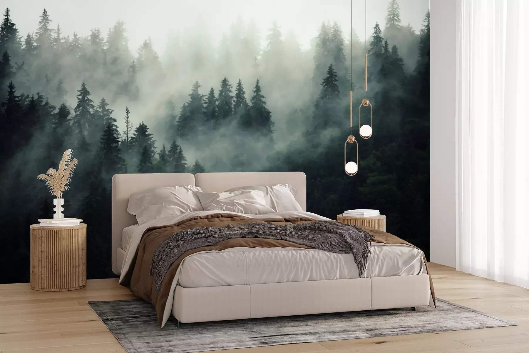 Het materiaal Premium+ is een gestructureerd vinyl op vlies met een gewicht van 255 g/m², dat kleine oneffenheden in de muur effectief camoufleert. De subtiele structuur van fijn zand geeft het oppervlak een exclusieve uitstraling, terwijl de halfmatte afwerking de diepte van de kleuren benadrukt. Het materiaal is dampdoorlatend, waardoor het ook in de keuken en badkamer kan worden gebruikt. De maximale breedte van één baan bedraagt 100 cm – bij grotere afmetingen wordt het fotobehang in meerdere gelijke banen verdeeld. De lijm wordt direct op de muur aangebracht en het behang wordt rand-aan-rand geplakt, wat zorgt voor een esthetisch resultaat zonder zichtbare naden. Het oppervlak kan gemakkelijk worden schoongemaakt door het voorzichtig af te nemen met een vochtige doek.