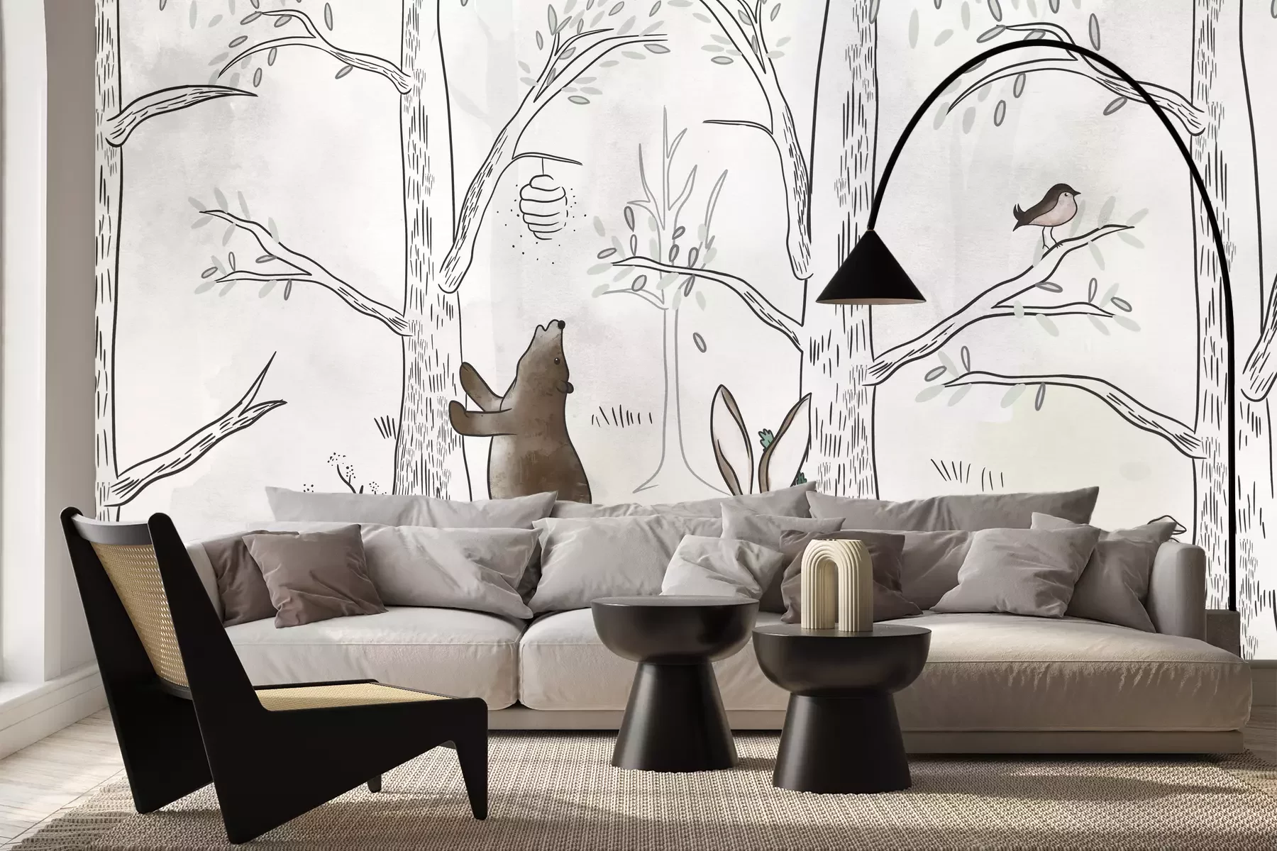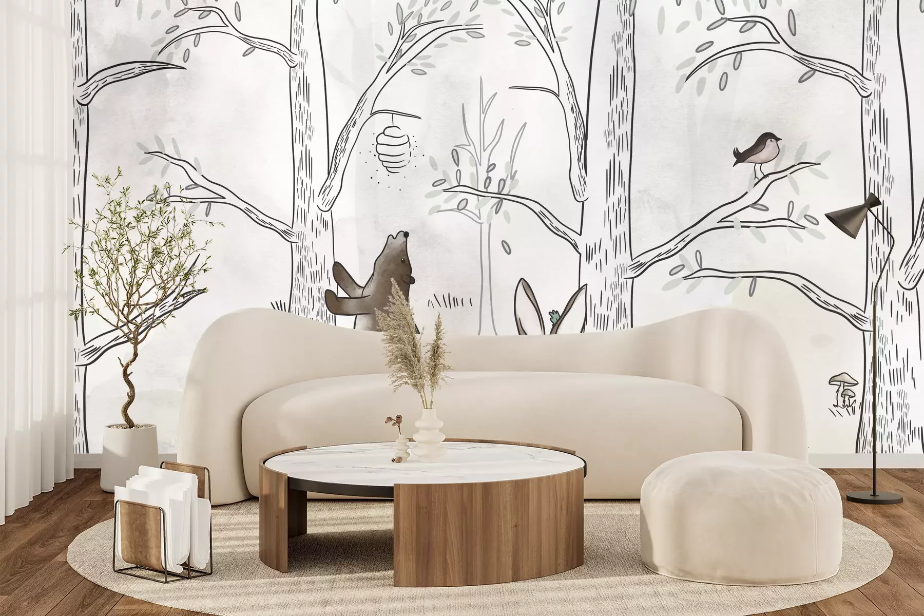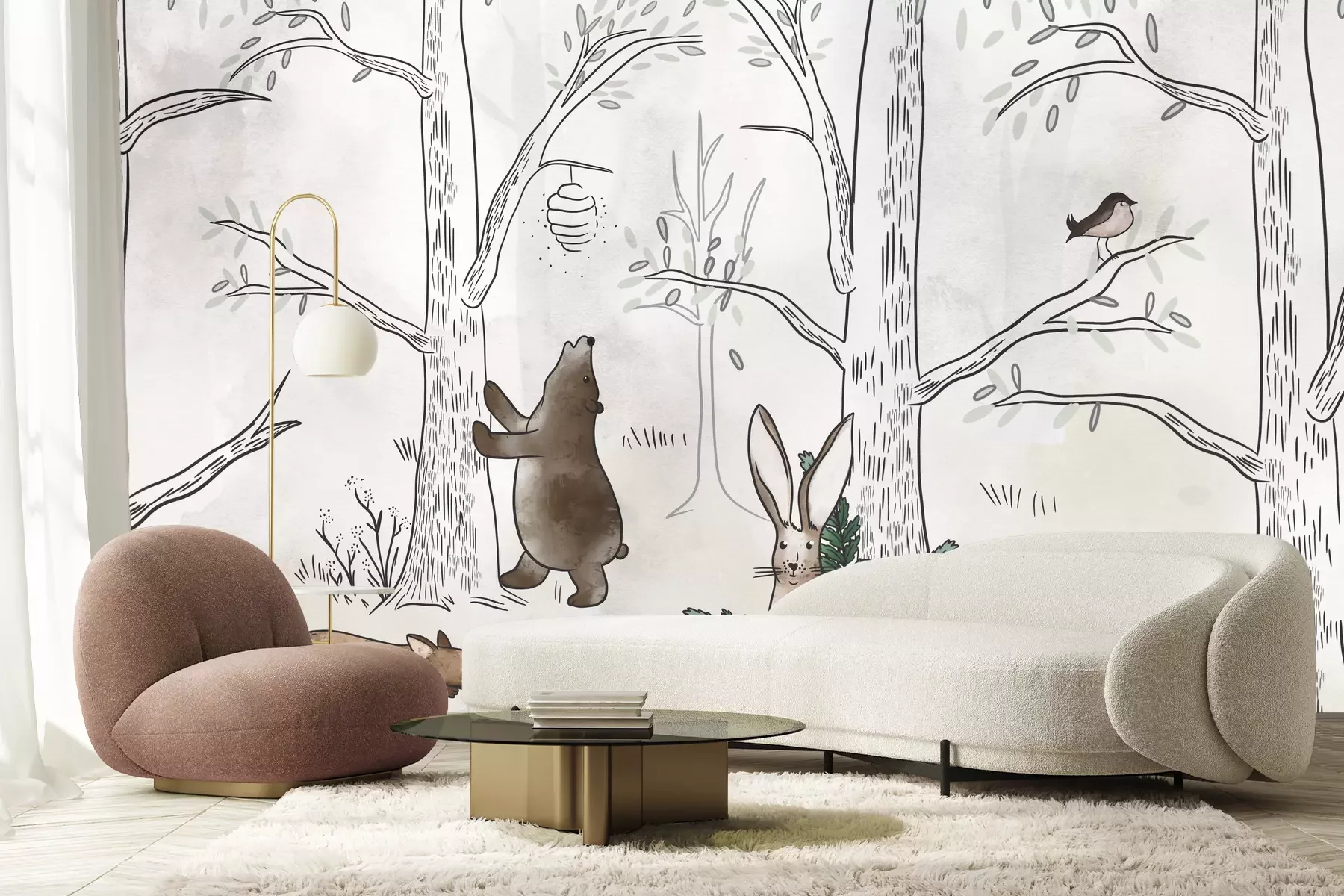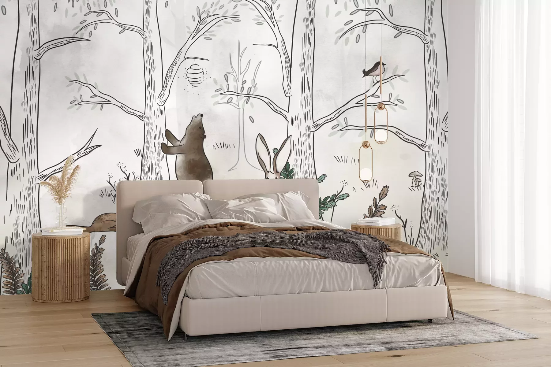*Korting is niet van toepassing op lijmen, accessoires en cadeaubonnen.Als je op zoek bent naar een idee voor een opvallende decoratie van de kinderkamer, is het hier gepresenteerde fotobehang een uitstekende keuze. Bosdieren zijn een motief dat erg populair is, omdat het toelaat een vleugje natuur in het interieur te brengen – wat vooral waardevol is als je in de stad woont. Wanneer zo’n fotobehang op de muur verschijnt, lijken de door kinderen geliefde dieren binnen handbereik en ontstaat er een vriendelijke, charmante sfeer. De minimalistische esthetiek van het patroon verdient bijzondere aandacht. De compositie is uitgevoerd in een gedempt kleurenpalet, gebaseerd op natuurlijke, aardse tinten, waardoor een gezellige en zintuiglijk rustgevende omgeving ontstaat. We hebben een aantal ideeën over kinderfotobehang in welke stijlen ons goed tot zijn recht komt. Dieren die zich verschuilen in het dichte bos passen perfect bij Scandinavische, eco- of boho-inrichtingen. Dankzij de neutrale achtergrond komen de dieren op de voorgrond te staan, trekken ze de aandacht en stimuleren ze de kinderlijke verbeelding. Het patroon komt het beste tot zijn recht boven het bedje of in een speelhoek – het wordt dan niet alleen een decoratief element, maar ook een inspiratiebron voor creatieve activiteiten. Een belangrijk aspect zijn de hoogwaardige materialen waarvan ons fotobehang is gemaakt. Bosdieren kunnen gerust ook in een babykamer worden aangebracht – de decoratie is ecologisch, geurloos en volledig veilig voor de gezondheid, zoals bevestigd door talrijke certificaten. Bovendien zijn de banen krasbestendig en kunnen eventuele vlekken gemakkelijk worden verwijderd – een groot voordeel bij het inrichten van een kinderkamer met fotobehang. Bosdieren zijn niet alleen een uitstekende oplossing voor thuis, maar ook een perfecte keuze voor crèches, kleuterscholen of andere educatieve instellingen. Zo’n muurdecoratie maakt het mogelijk om in enkele ogenblikken een knusse en tegelijk stimulerende ruimte te creëren. Ook de universele uitstraling van dit fotobehang verdient vermelding– bosdieren spreken zowel jongens als meisjes aan, waardoor je gemakkelijk een inrichting kunt creëren waarin elk kind zich op zijn gemak voelt.