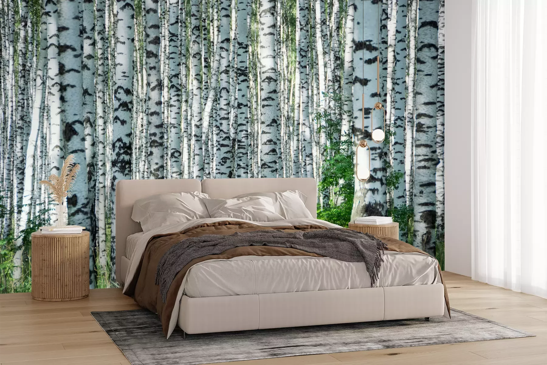 Het materiaal Premium+ is een gestructureerd vinyl op vlies met een gewicht van 255 g/m², dat kleine oneffenheden in de muur effectief camoufleert. De subtiele structuur van fijn zand geeft het oppervlak een exclusieve uitstraling, terwijl de halfmatte afwerking de diepte van de kleuren benadrukt. Het materiaal is dampdoorlatend, waardoor het ook in de keuken en badkamer kan worden gebruikt. De maximale breedte van één baan bedraagt 100 cm – bij grotere afmetingen wordt het fotobehang in meerdere gelijke banen verdeeld. De lijm wordt direct op de muur aangebracht en het behang wordt rand-aan-rand geplakt, wat zorgt voor een esthetisch resultaat zonder zichtbare naden. Het oppervlak kan gemakkelijk worden schoongemaakt door het voorzichtig af te nemen met een vochtige doek.