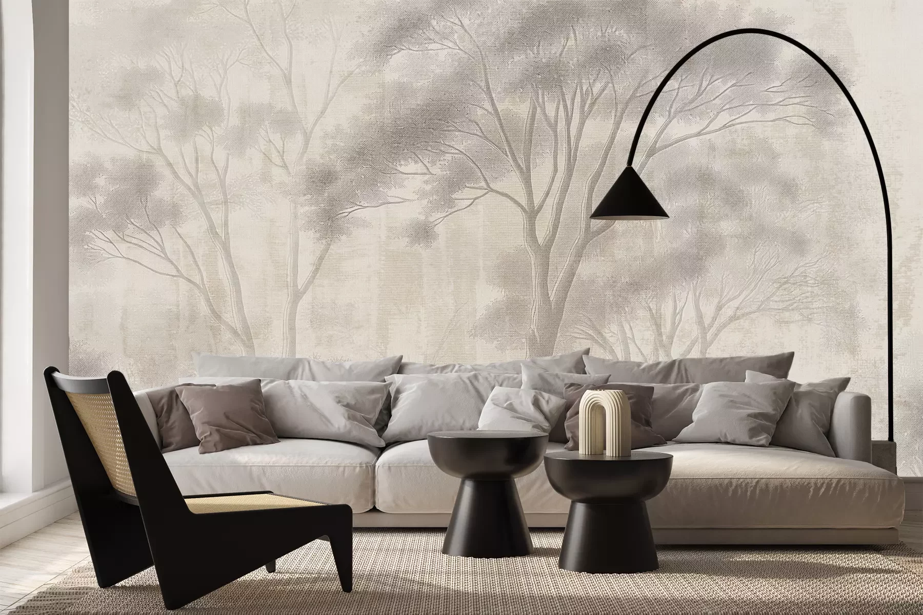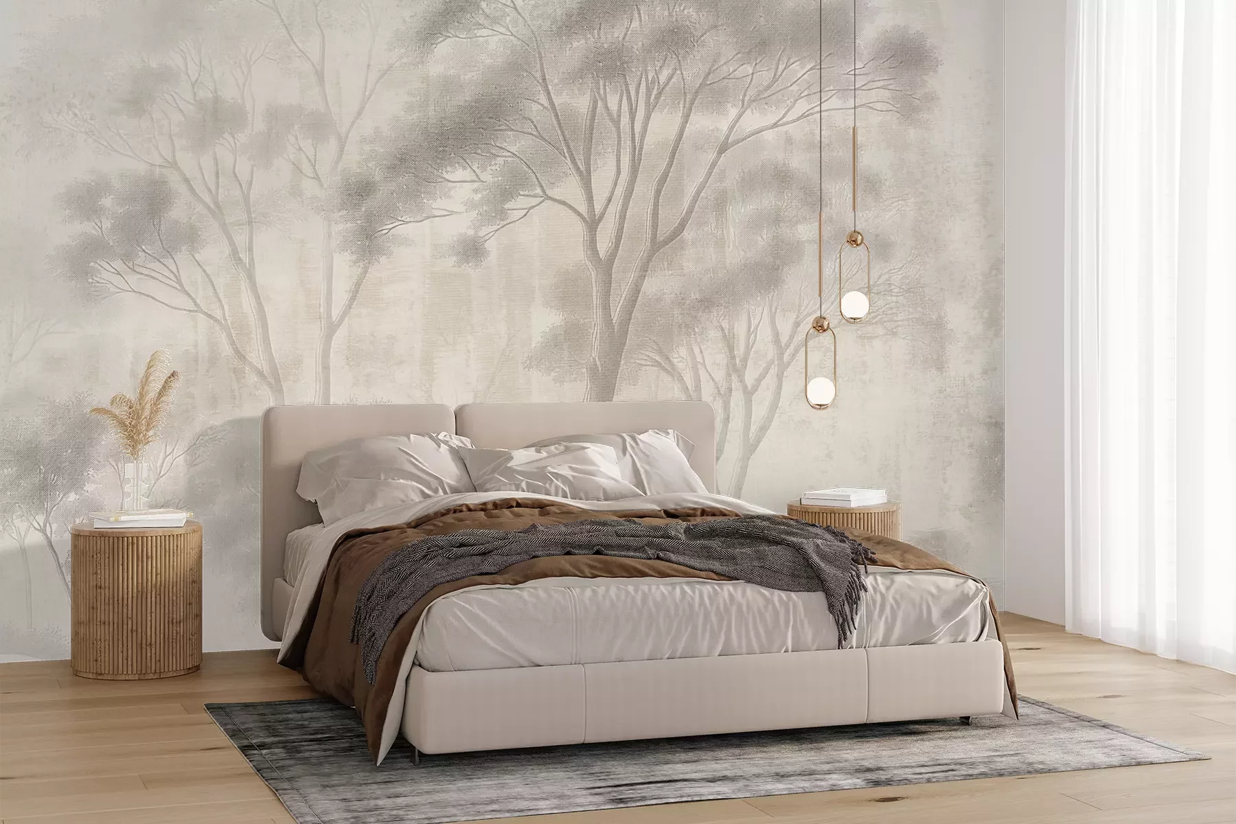 Het materiaal Premium+ is een gestructureerd vinyl op vlies met een gewicht van 255 g/m², dat kleine oneffenheden in de muur effectief camoufleert. De subtiele structuur van fijn zand geeft het oppervlak een exclusieve uitstraling, terwijl de halfmatte afwerking de diepte van de kleuren benadrukt. Het materiaal is dampdoorlatend, waardoor het ook in de keuken en badkamer kan worden gebruikt. De maximale breedte van één baan bedraagt 100 cm – bij grotere afmetingen wordt het fotobehang in meerdere gelijke banen verdeeld. De lijm wordt direct op de muur aangebracht en het behang wordt rand-aan-rand geplakt, wat zorgt voor een esthetisch resultaat zonder zichtbare naden. Het oppervlak kan gemakkelijk worden schoongemaakt door het voorzichtig af te nemen met een vochtige doek.