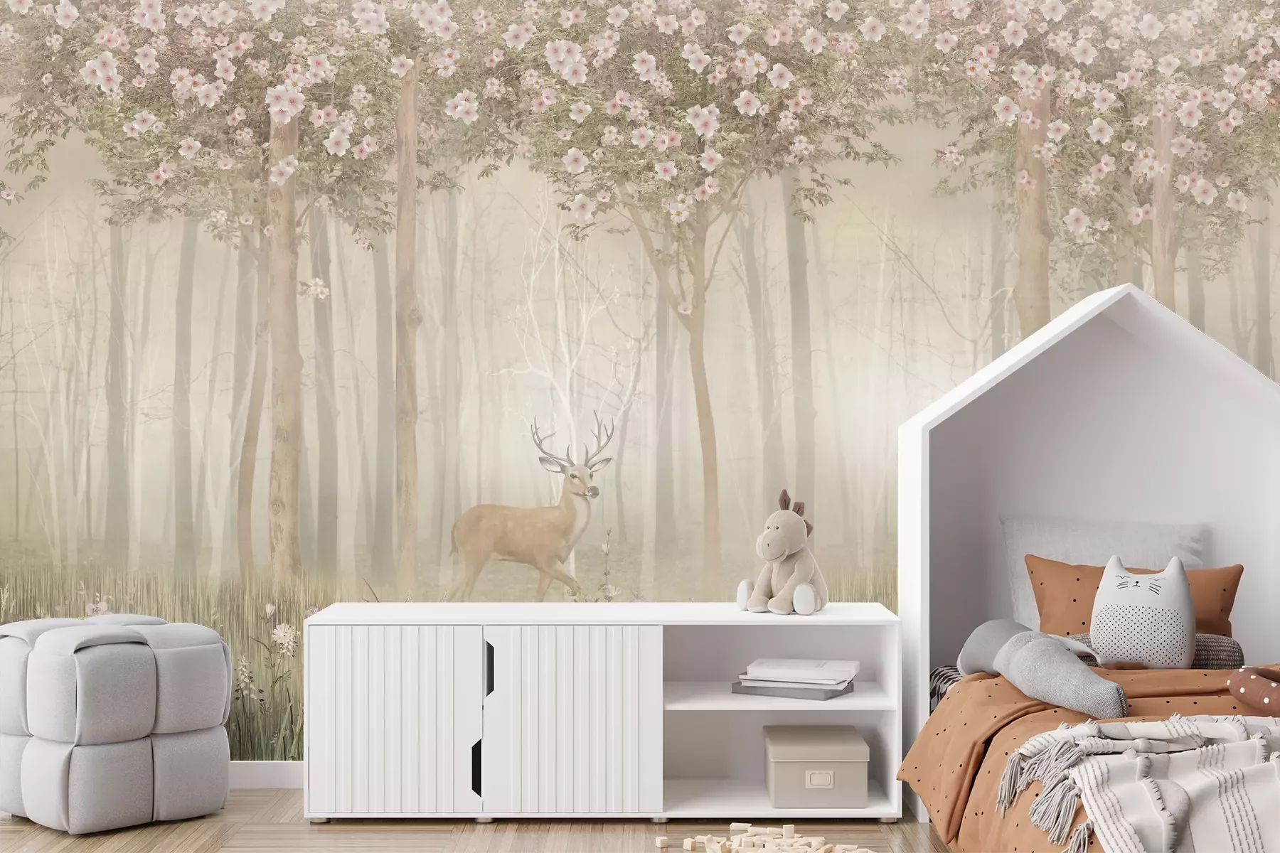 Het materiaal Premium+ is een gestructureerd vinyl op vlies met een gewicht van 255 g/m², dat kleine oneffenheden in de muur effectief camoufleert. De subtiele structuur van fijn zand geeft het oppervlak een exclusieve uitstraling, terwijl de halfmatte afwerking de diepte van de kleuren benadrukt. Het materiaal is dampdoorlatend, waardoor het ook in de keuken en badkamer kan worden gebruikt. De maximale breedte van één baan bedraagt 100 cm – bij grotere afmetingen wordt het fotobehang in meerdere gelijke banen verdeeld. De lijm wordt direct op de muur aangebracht en het behang wordt rand-aan-rand geplakt, wat zorgt voor een esthetisch resultaat zonder zichtbare naden. Het oppervlak kan gemakkelijk worden schoongemaakt door het voorzichtig af te nemen met een vochtige doek.