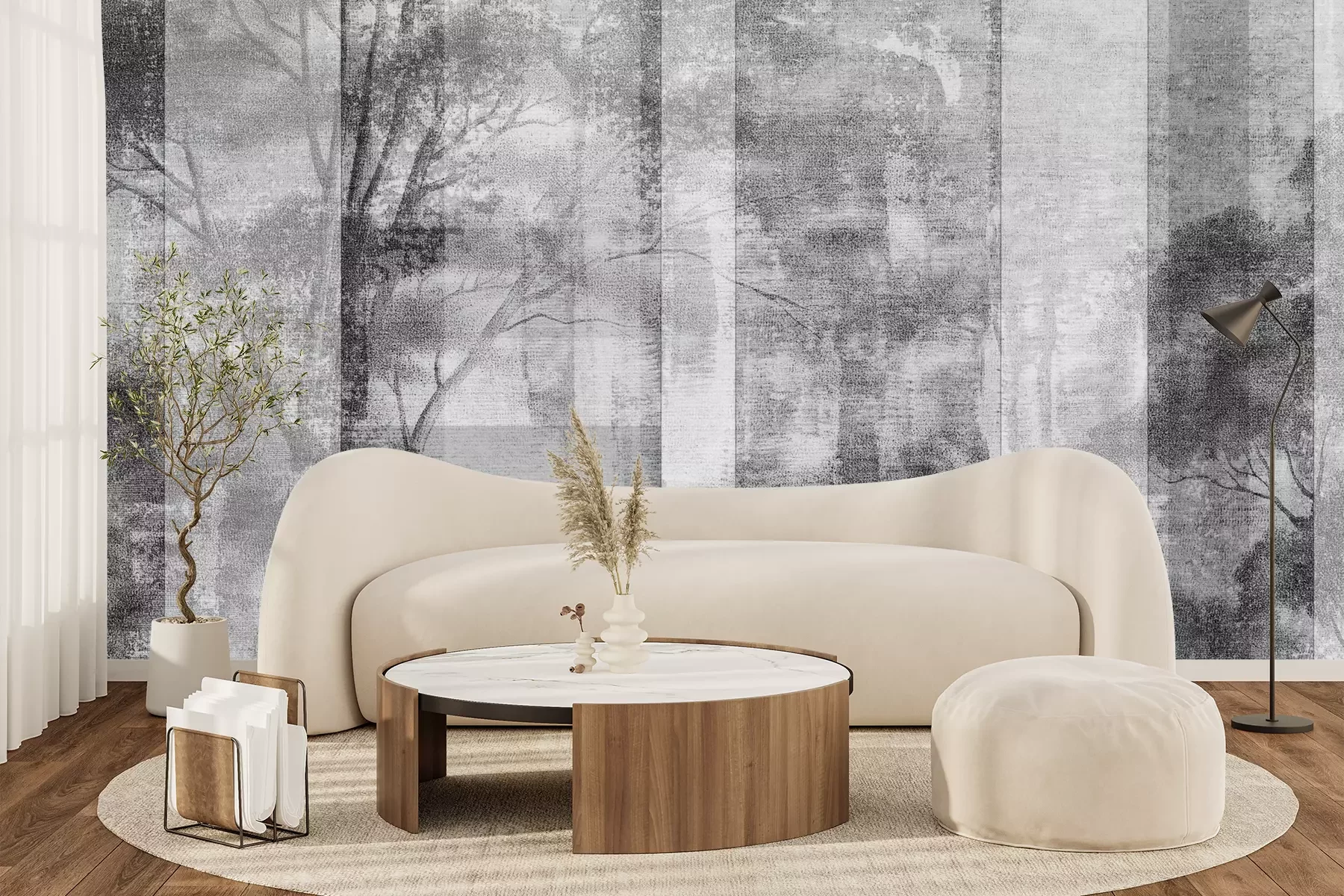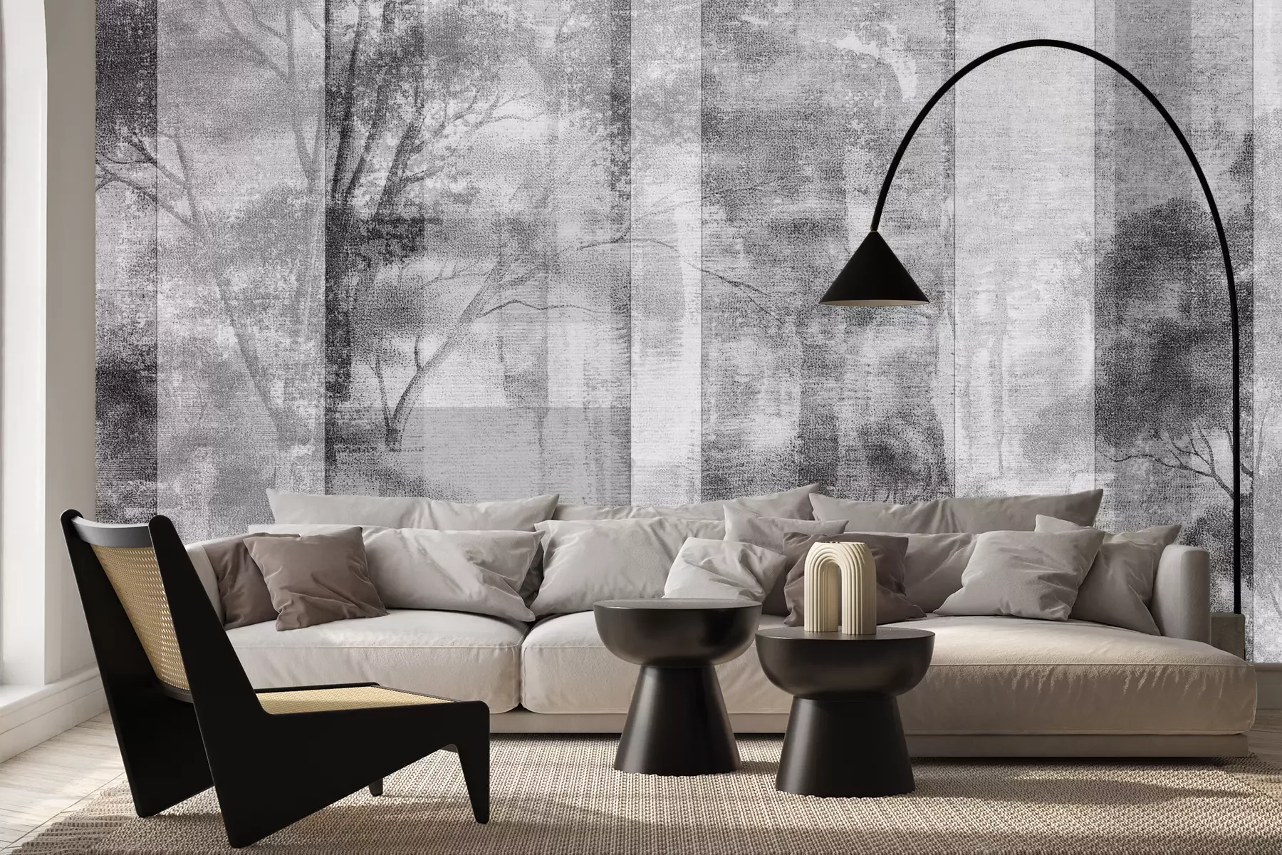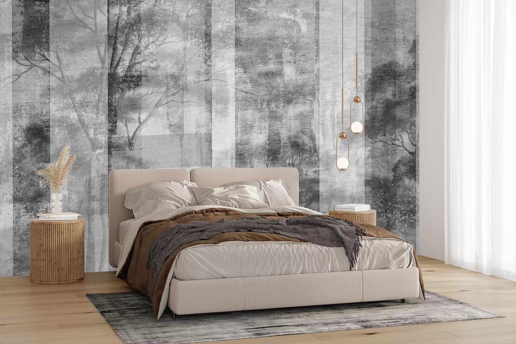 Het materiaal Premium+ is een gestructureerd vinyl op vlies met een gewicht van 255 g/m², dat kleine oneffenheden in de muur effectief camoufleert. De subtiele structuur van fijn zand geeft het oppervlak een exclusieve uitstraling, terwijl de halfmatte afwerking de diepte van de kleuren benadrukt. Het materiaal is dampdoorlatend, waardoor het ook in de keuken en badkamer kan worden gebruikt. De maximale breedte van één baan bedraagt 100 cm – bij grotere afmetingen wordt het fotobehang in meerdere gelijke banen verdeeld. De lijm wordt direct op de muur aangebracht en het behang wordt rand-aan-rand geplakt, wat zorgt voor een esthetisch resultaat zonder zichtbare naden. Het oppervlak kan gemakkelijk worden schoongemaakt door het voorzichtig af te nemen met een vochtige doek.