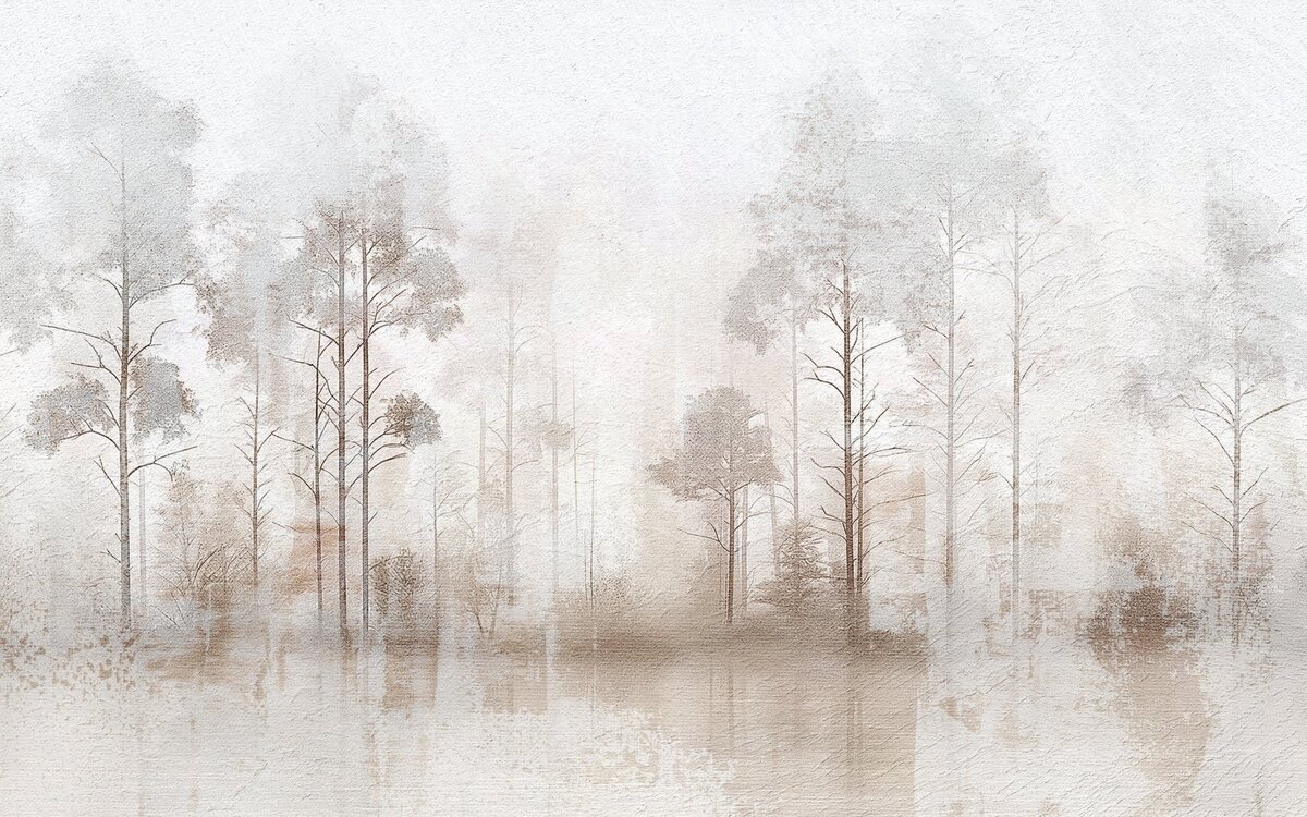 Fotobehang: Boslandschap met bomen tegen een achtergrond die beton imiteert