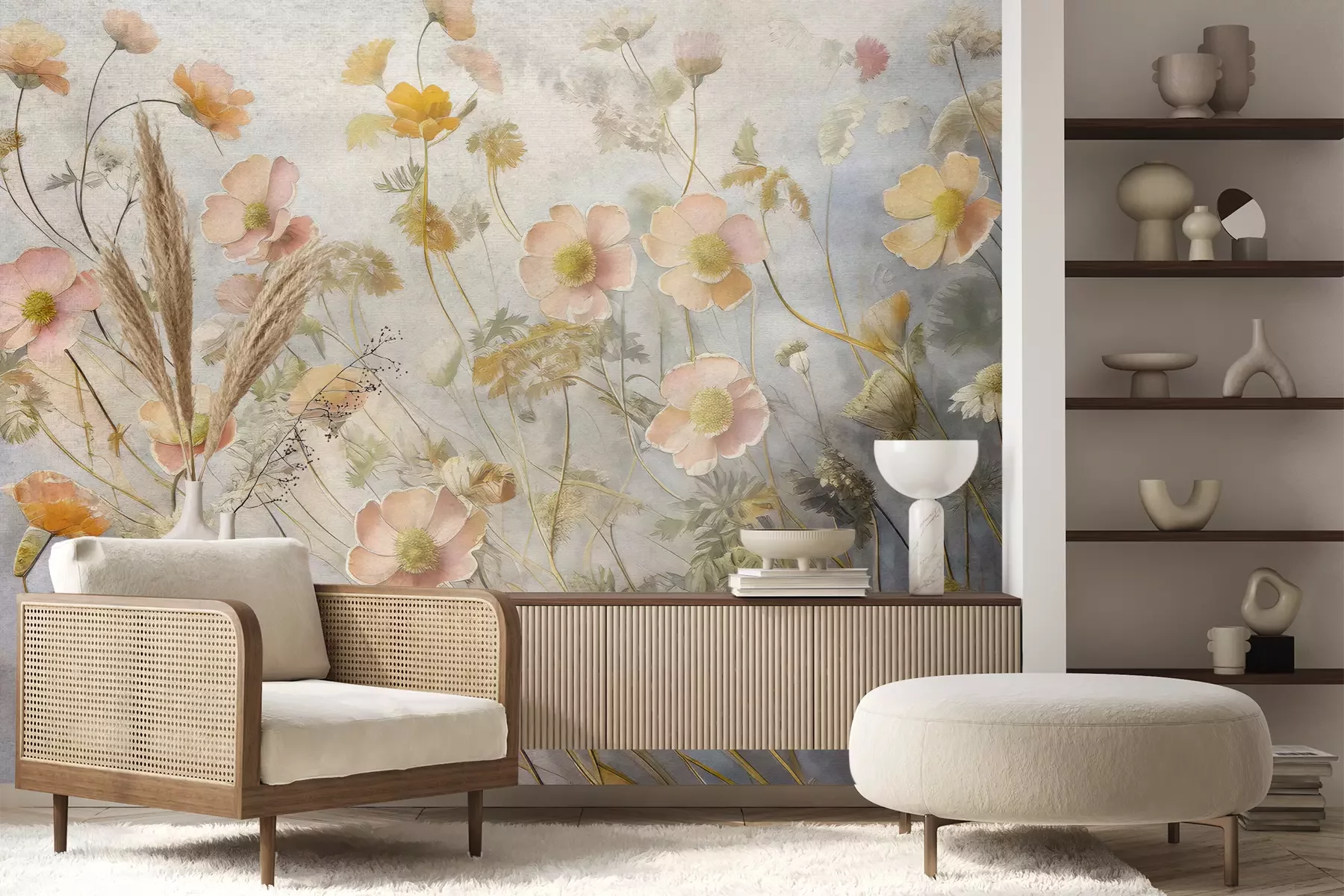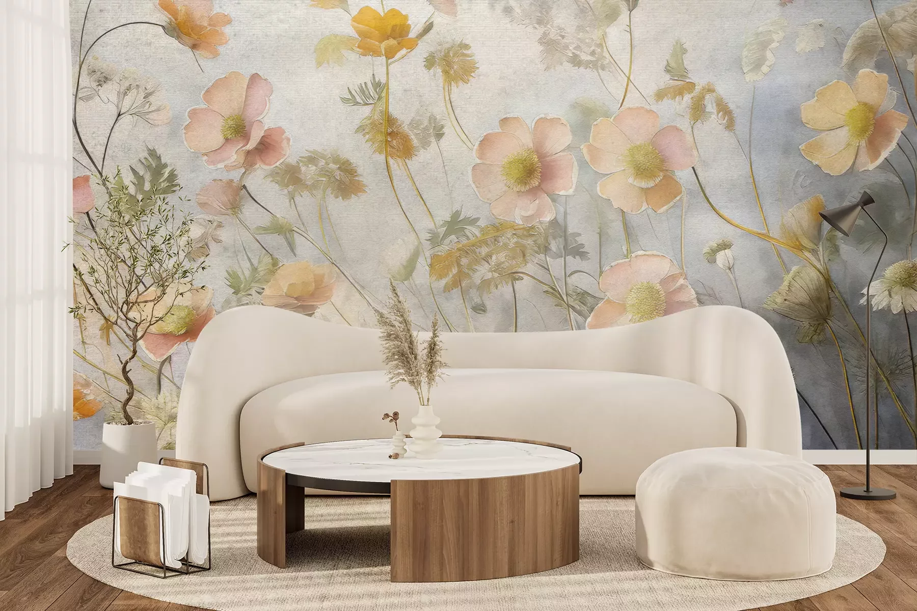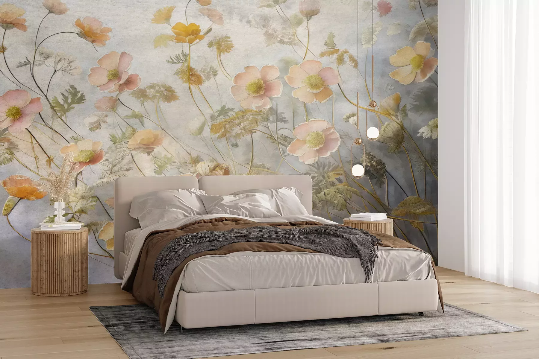 Het materiaal Premium+ is een gestructureerd vinyl op vlies met een gewicht van 255 g/m², dat kleine oneffenheden in de muur effectief camoufleert. De subtiele structuur van fijn zand geeft het oppervlak een exclusieve uitstraling, terwijl de halfmatte afwerking de diepte van de kleuren benadrukt. Het materiaal is dampdoorlatend, waardoor het ook in de keuken en badkamer kan worden gebruikt. De maximale breedte van één baan bedraagt 100 cm – bij grotere afmetingen wordt het fotobehang in meerdere gelijke banen verdeeld. De lijm wordt direct op de muur aangebracht en het behang wordt rand-aan-rand geplakt, wat zorgt voor een esthetisch resultaat zonder zichtbare naden. Het oppervlak kan gemakkelijk worden schoongemaakt door het voorzichtig af te nemen met een vochtige doek.