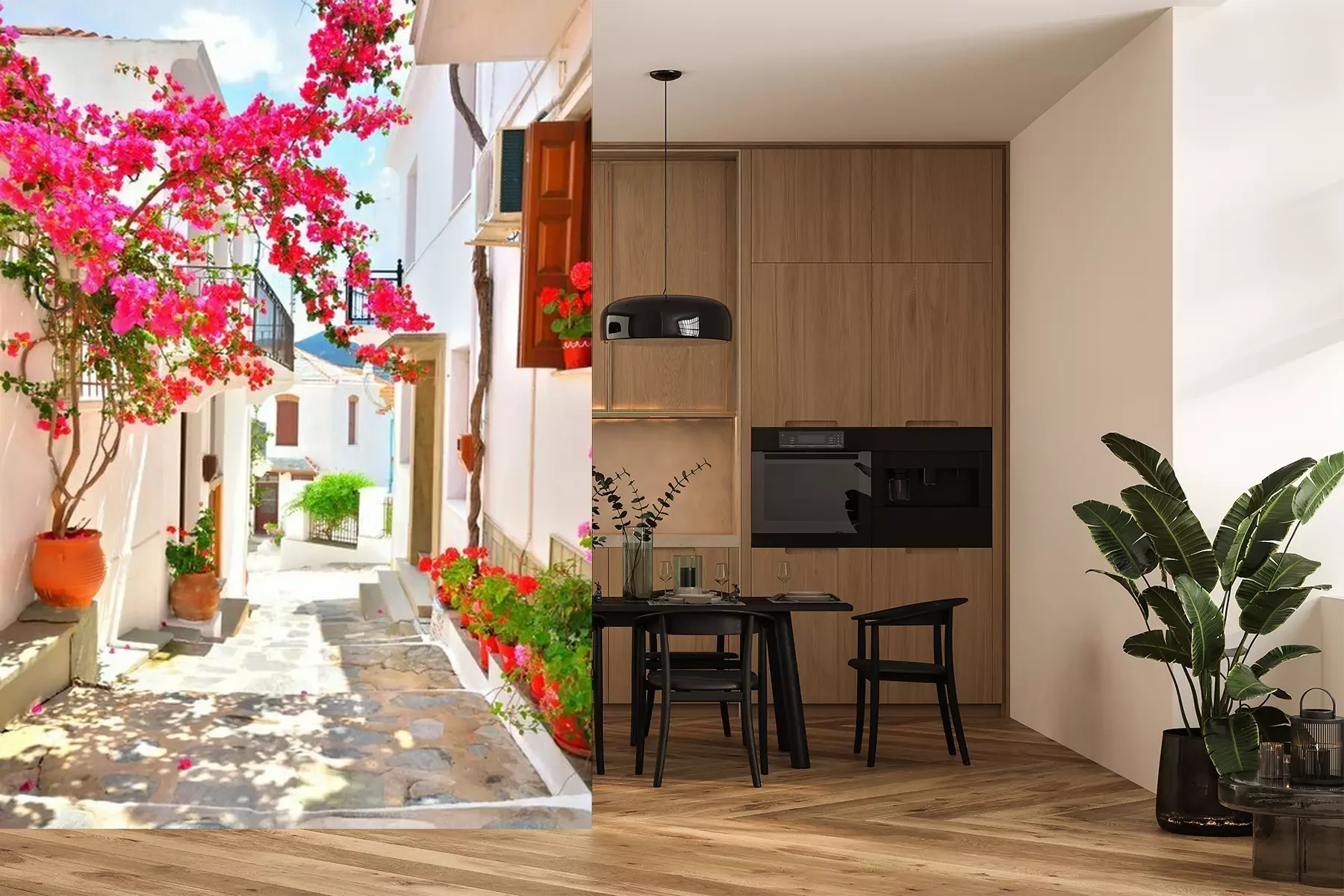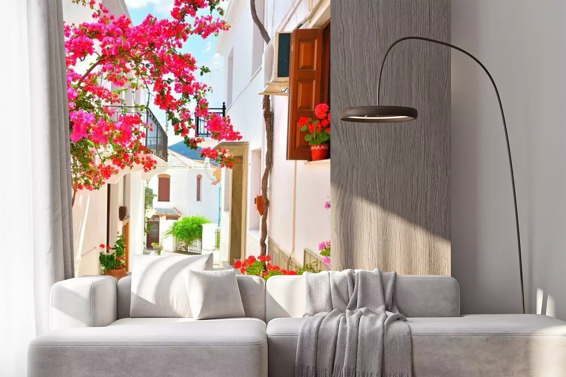 Witte huizen in de zon in GriekenlandProbleemloze bezorging verzorgd door vertrouwde vervoerders