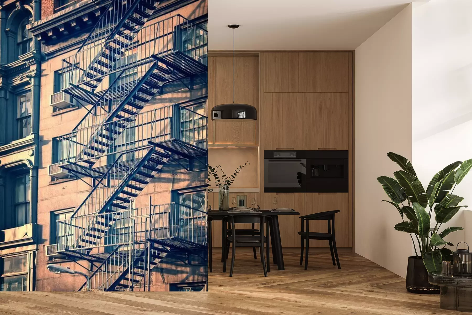 Het materiaal Premium is een glad vinyl op vlies, dat bestand is tegen uitrekken en vervorming. Het is dampdoorlatend – de muren kunnen vrij ademen – waardoor het geschikt is voor gebruik in de keuken en badkamer. Bij vervuiling kan het materiaal worden afgenomen met een vochtige doek. De maximale breedte van één baan bedraagt 95 of 105 cm, afhankelijk van de beschikbaarheid. Montage vindt plaats met de rand-aan-rand methode, wat een esthetisch resultaat zonder zichtbare naden oplevert. Omdat de lijm rechtstreeks op de muur wordt aangebracht, verloopt de installatie van het fotobehang snel en eenvoudig.