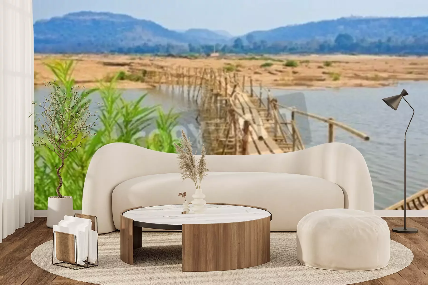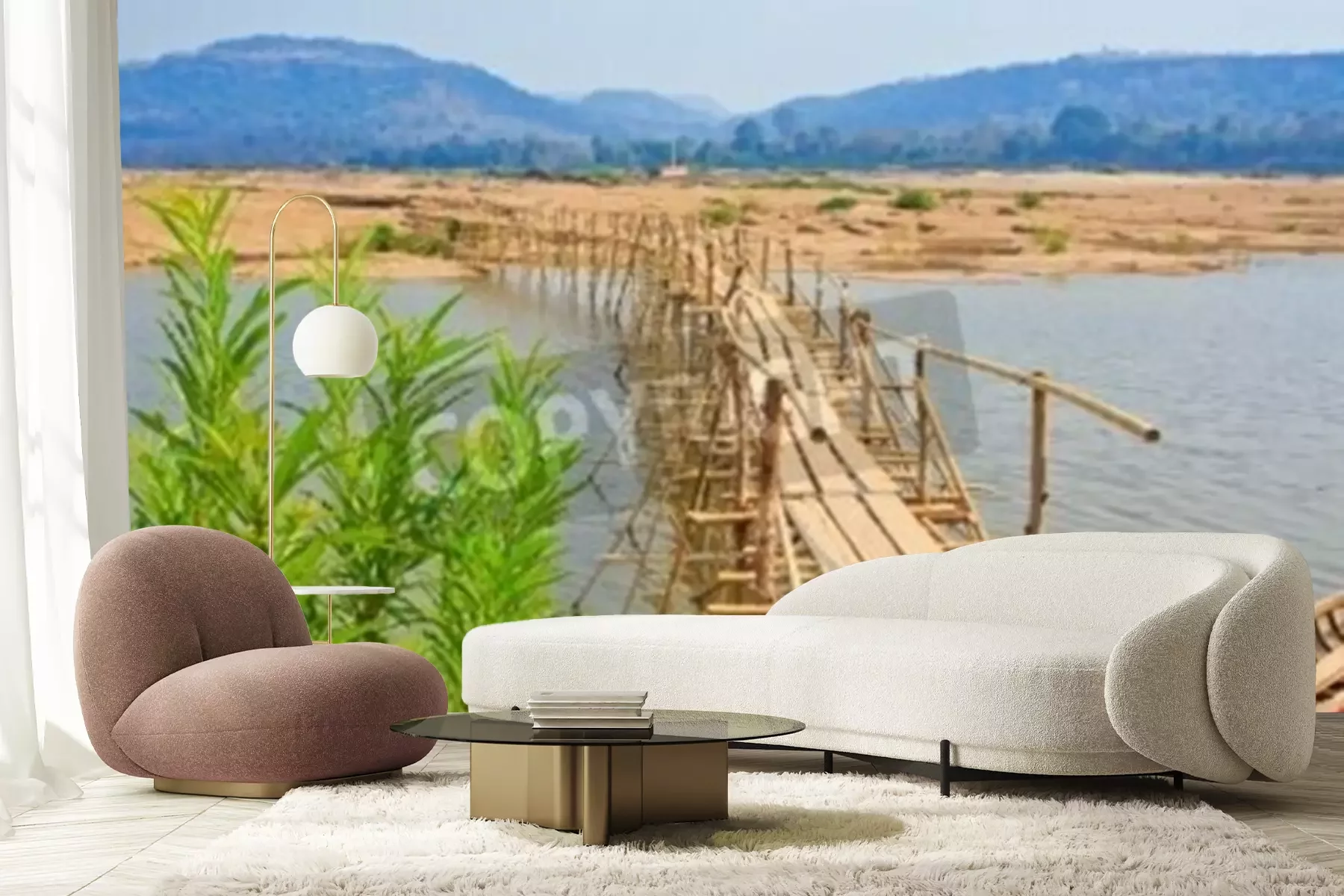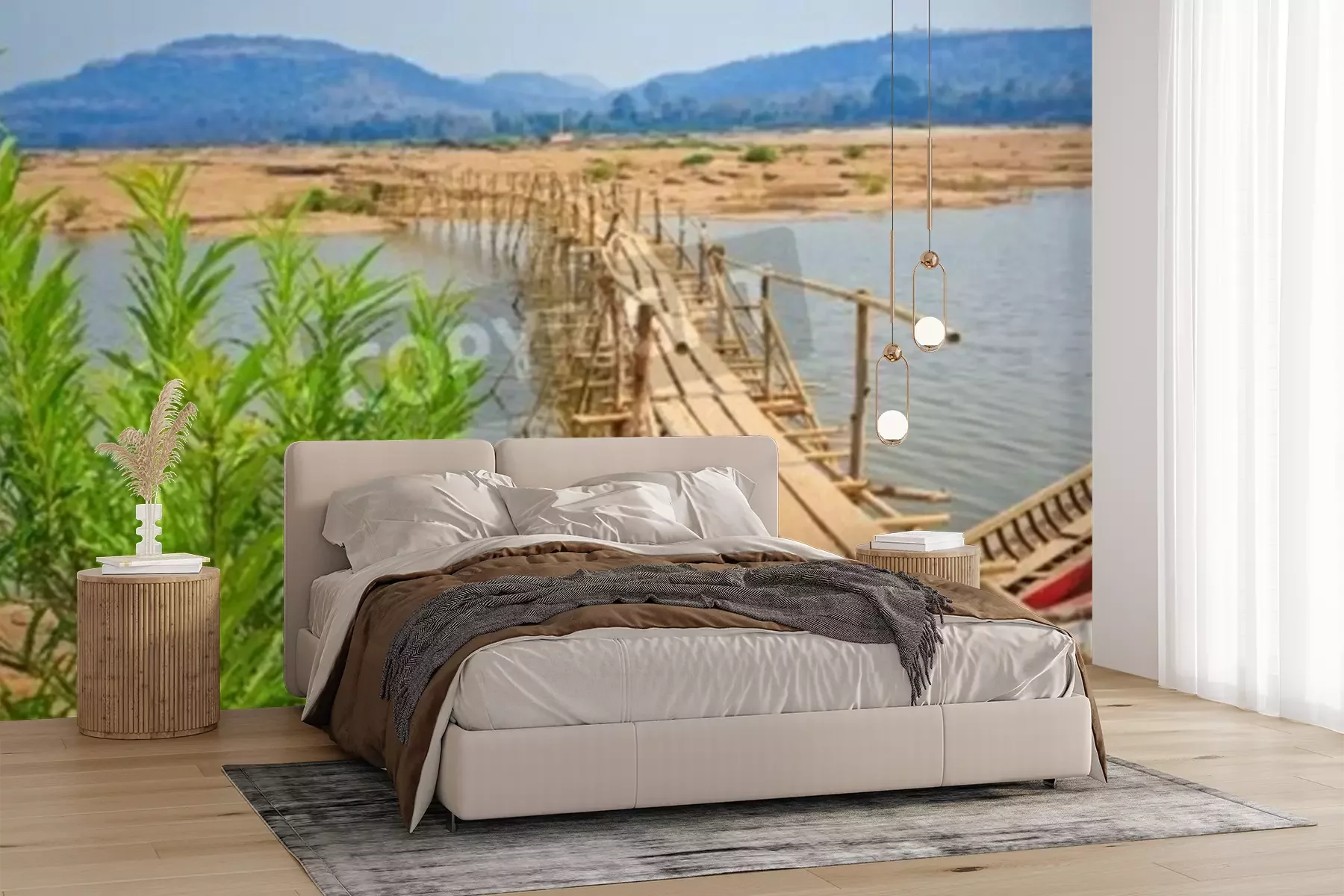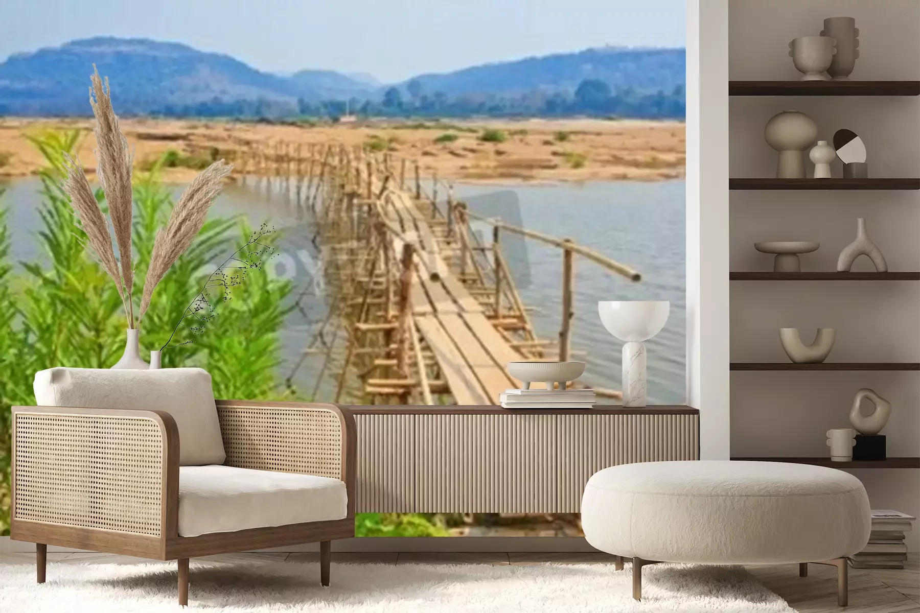 Fotobehang Brug gemaakt van bamboe in Thailand