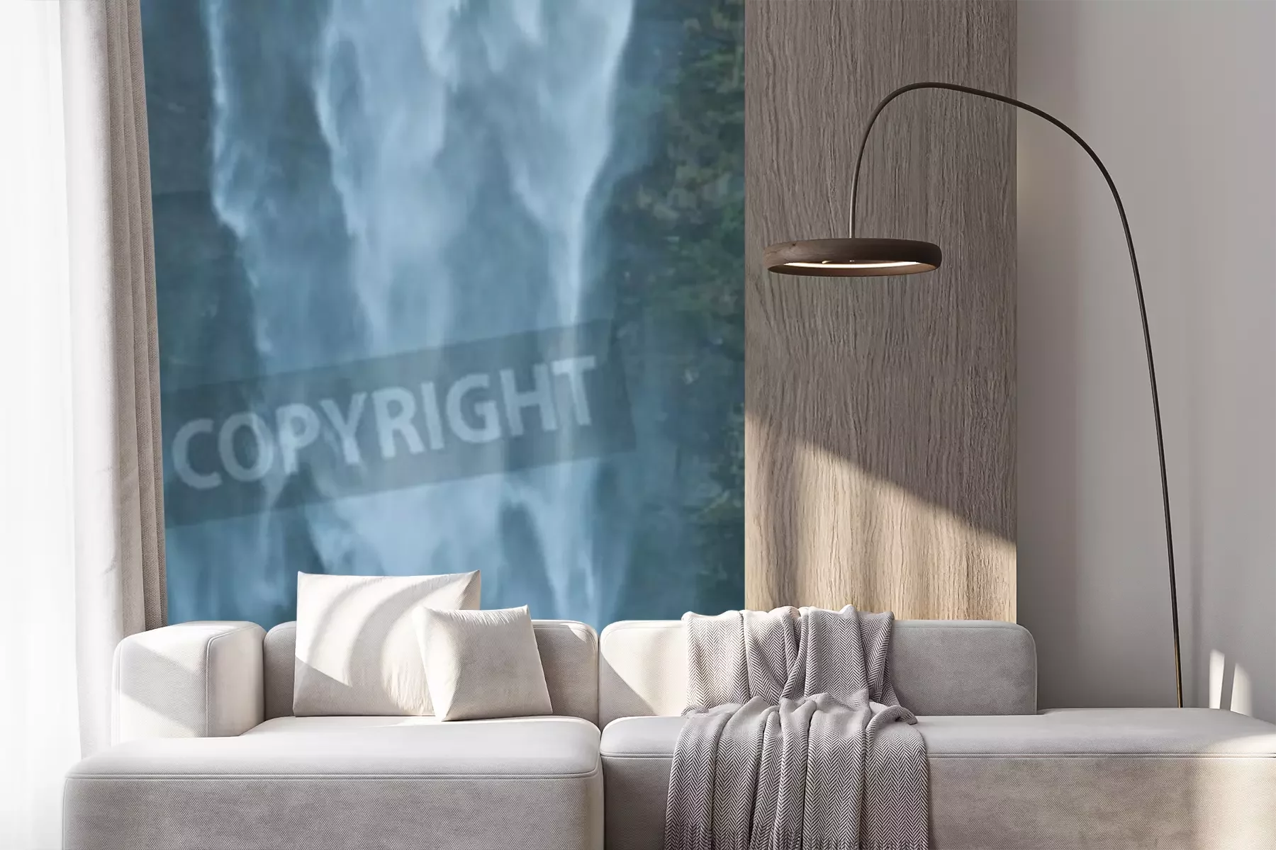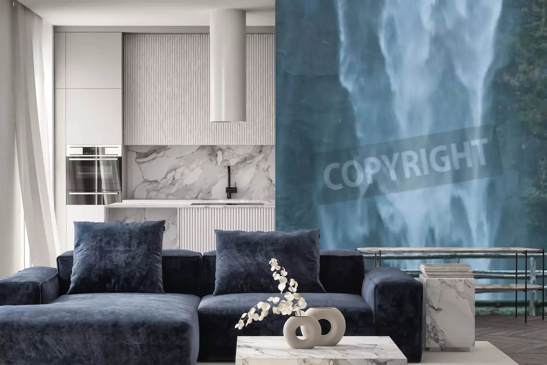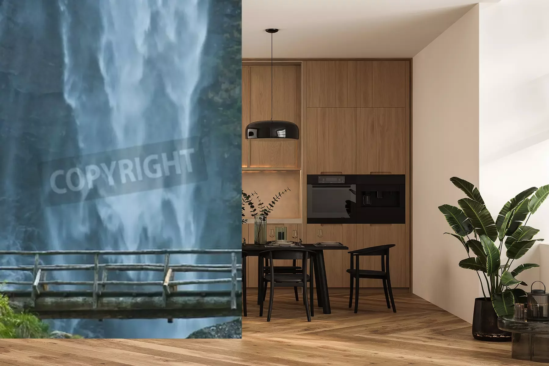 Fotobehang Brug met waterval op de achtergrond