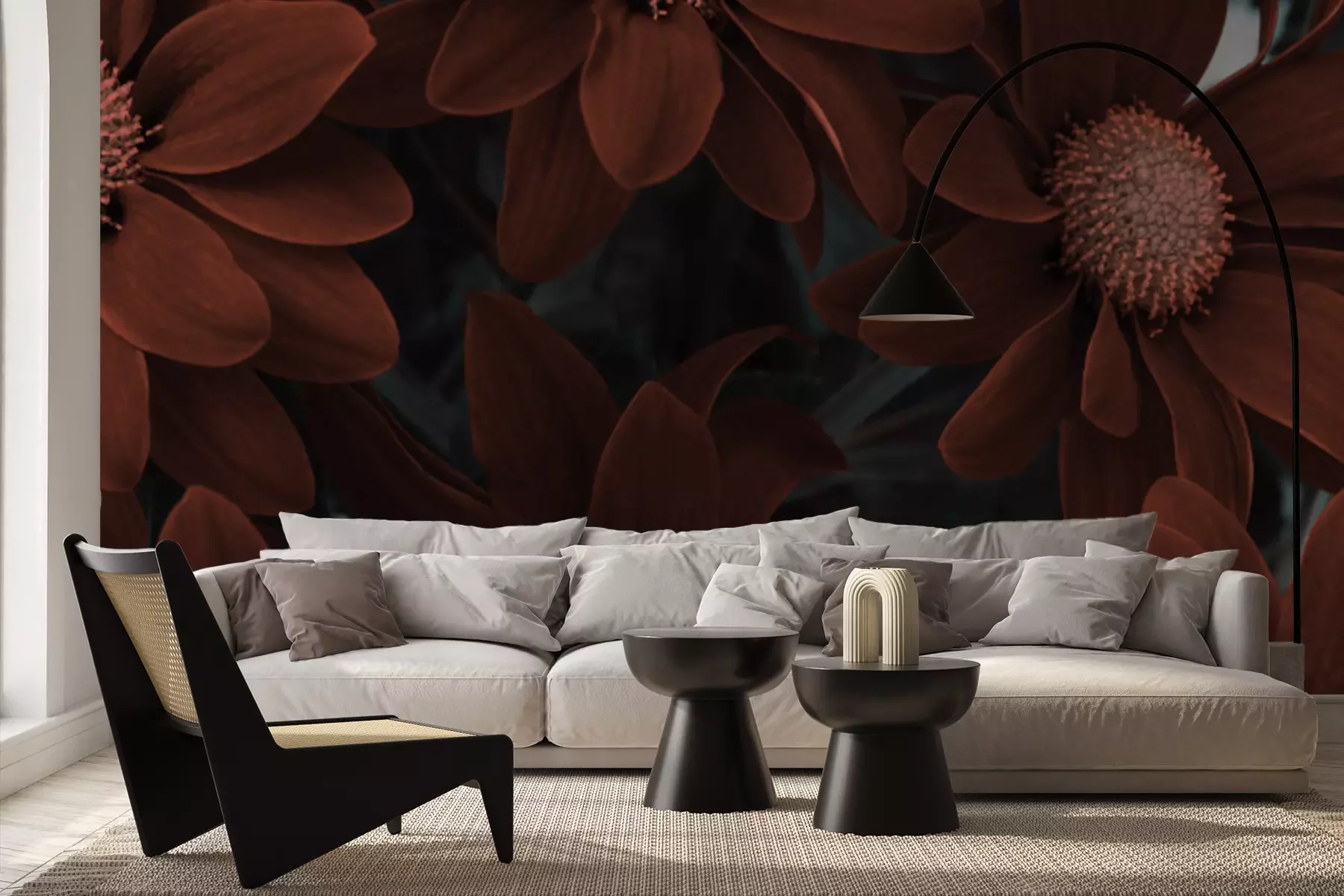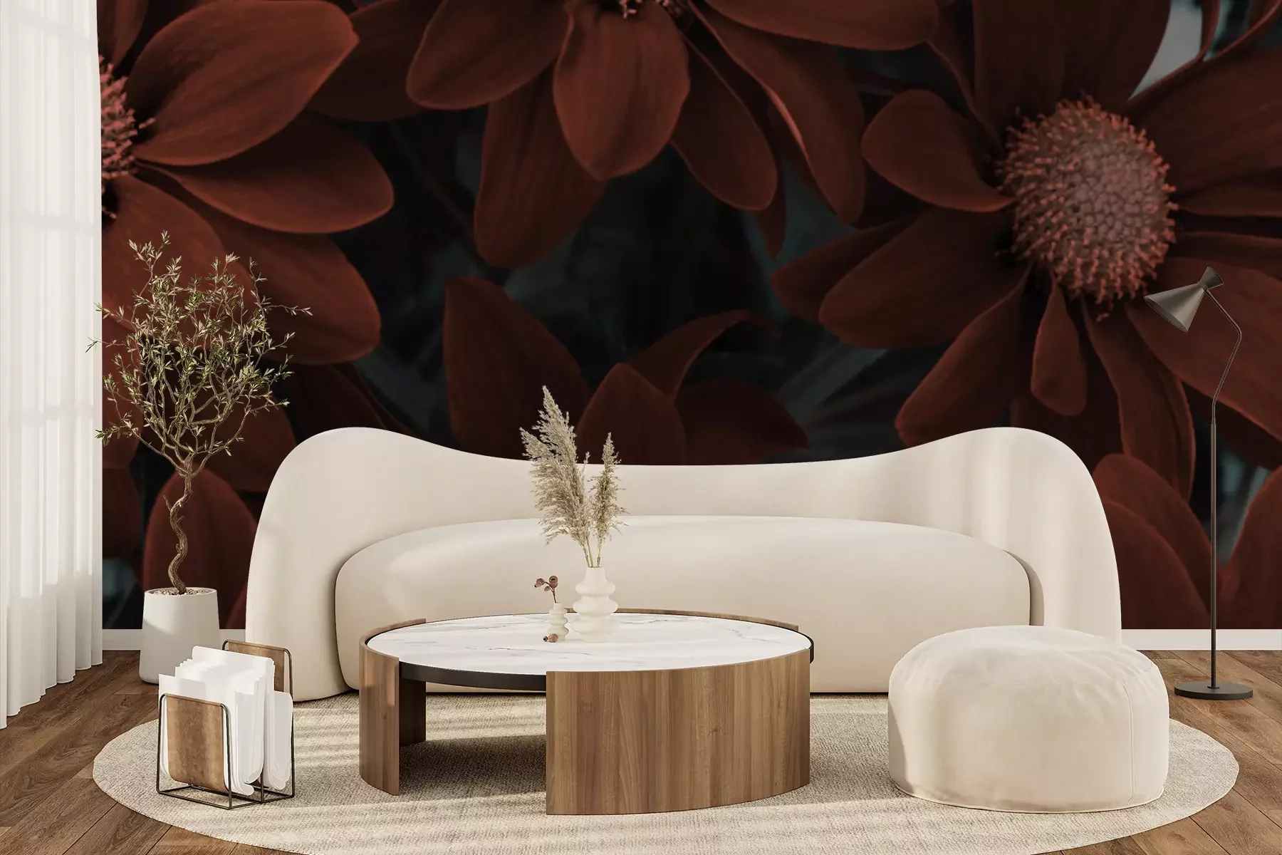 Fotobehang Bruine bloemen op een donkere achtergrond
