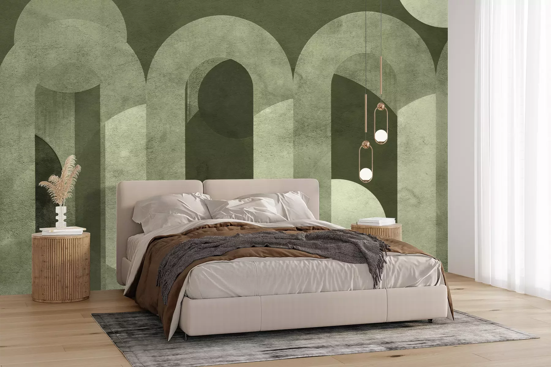 Het materiaal Premium+ is een gestructureerd vinyl op vlies met een gewicht van 255 g/m², dat kleine oneffenheden in de muur effectief camoufleert. De subtiele structuur van fijn zand geeft het oppervlak een exclusieve uitstraling, terwijl de halfmatte afwerking de diepte van de kleuren benadrukt. Het materiaal is dampdoorlatend, waardoor het ook in de keuken en badkamer kan worden gebruikt. De maximale breedte van één baan bedraagt 100 cm – bij grotere afmetingen wordt het fotobehang in meerdere gelijke banen verdeeld. De lijm wordt direct op de muur aangebracht en het behang wordt rand-aan-rand geplakt, wat zorgt voor een esthetisch resultaat zonder zichtbare naden. Het oppervlak kan gemakkelijk worden schoongemaakt door het voorzichtig af te nemen met een vochtige doek.