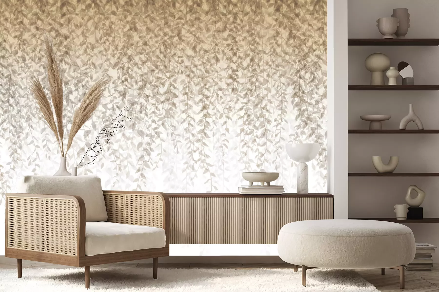 Het materiaal Premium+ is een gestructureerd vinyl op vlies met een gewicht van 255 g/m², dat kleine oneffenheden in de muur effectief camoufleert. De subtiele structuur van fijn zand geeft het oppervlak een exclusieve uitstraling, terwijl de halfmatte afwerking de diepte van de kleuren benadrukt. Het materiaal is dampdoorlatend, waardoor het ook in de keuken en badkamer kan worden gebruikt. De maximale breedte van één baan bedraagt 100 cm – bij grotere afmetingen wordt het fotobehang in meerdere gelijke banen verdeeld. De lijm wordt direct op de muur aangebracht en het behang wordt rand-aan-rand geplakt, wat zorgt voor een esthetisch resultaat zonder zichtbare naden. Het oppervlak kan gemakkelijk worden schoongemaakt door het voorzichtig af te nemen met een vochtige doek.