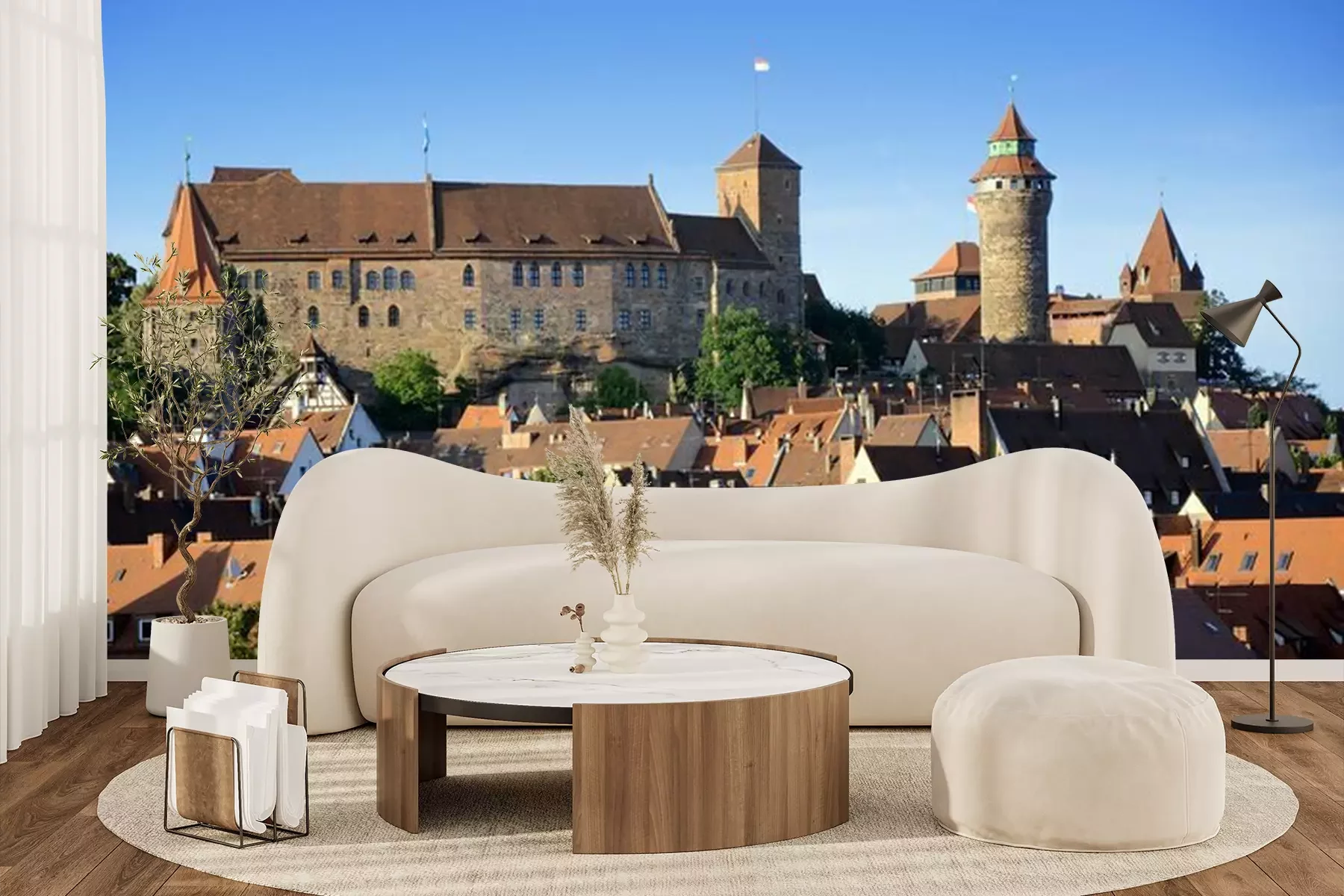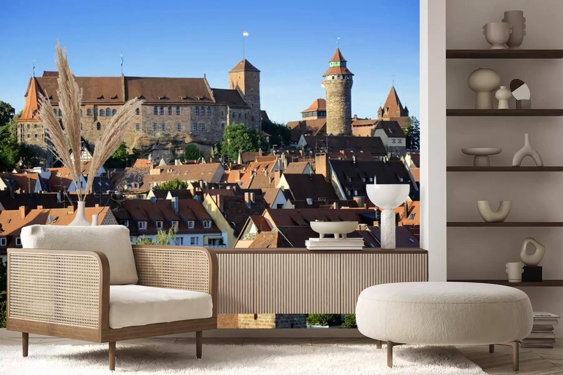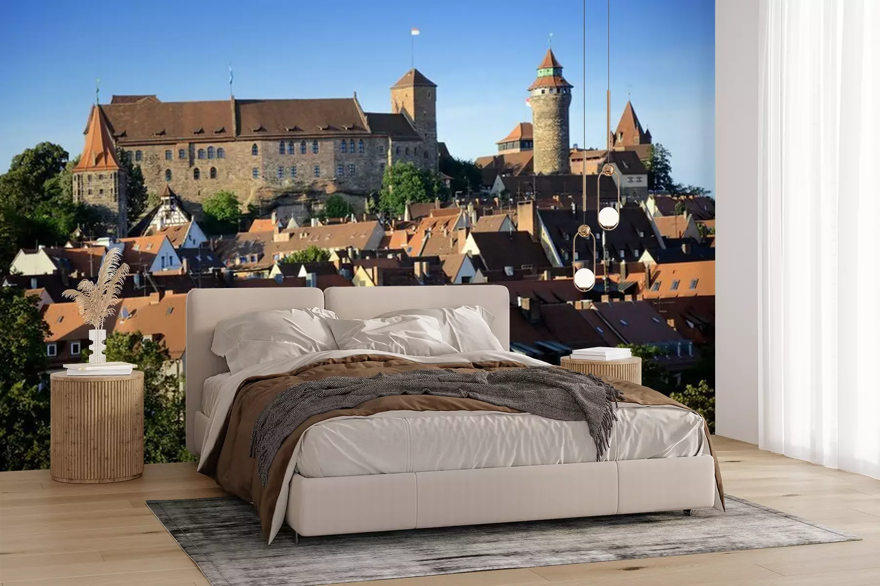 Het materiaal Premium+ is een gestructureerd vinyl op vlies met een gewicht van 255 g/m², dat kleine oneffenheden in de muur effectief camoufleert. De subtiele structuur van fijn zand geeft het oppervlak een exclusieve uitstraling, terwijl de halfmatte afwerking de diepte van de kleuren benadrukt. Het materiaal is dampdoorlatend, waardoor het ook in de keuken en badkamer kan worden gebruikt. De maximale breedte van één baan bedraagt 100 cm – bij grotere afmetingen wordt het fotobehang in meerdere gelijke banen verdeeld. De lijm wordt direct op de muur aangebracht en het behang wordt rand-aan-rand geplakt, wat zorgt voor een esthetisch resultaat zonder zichtbare naden. Het oppervlak kan gemakkelijk worden schoongemaakt door het voorzichtig af te nemen met een vochtige doek.