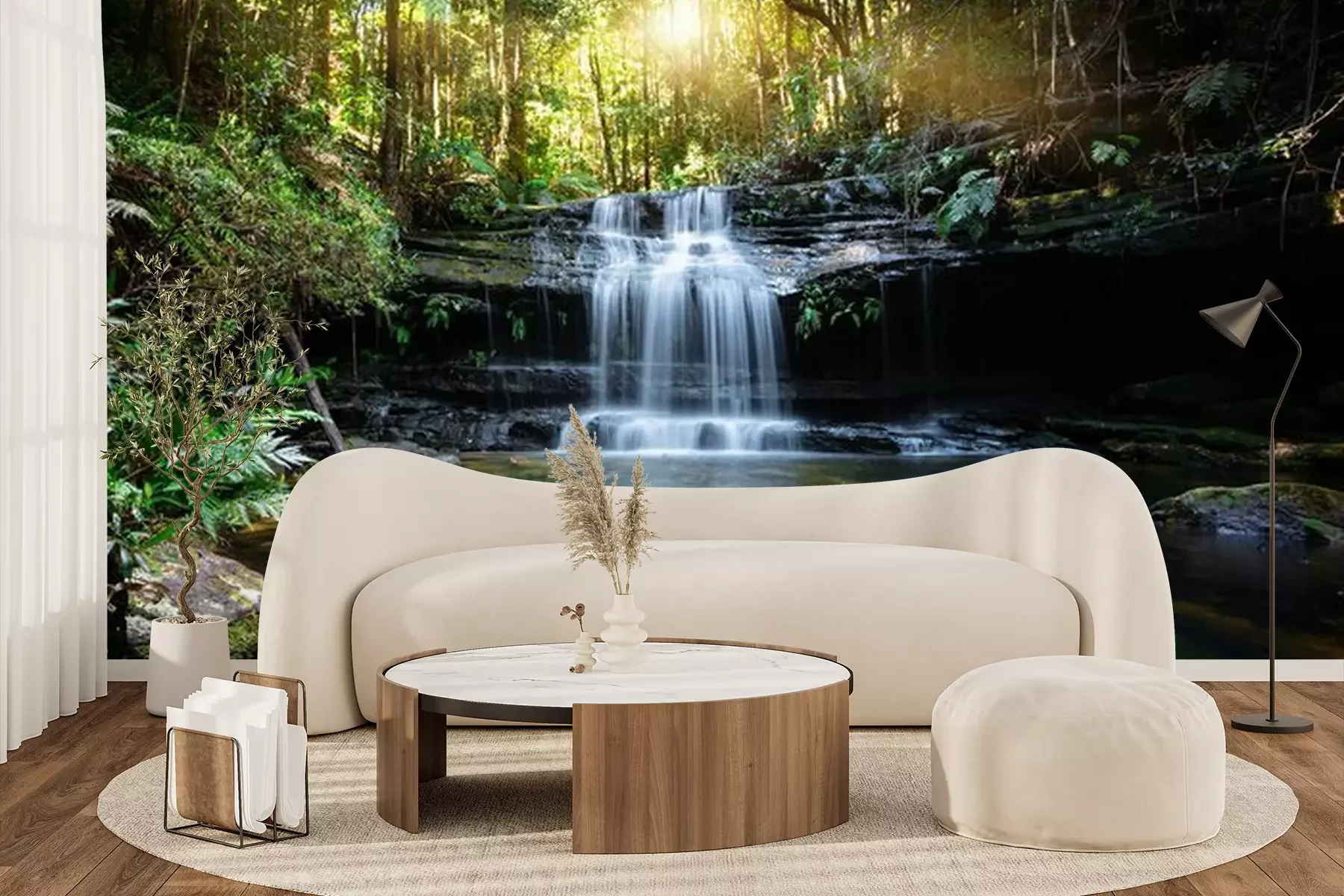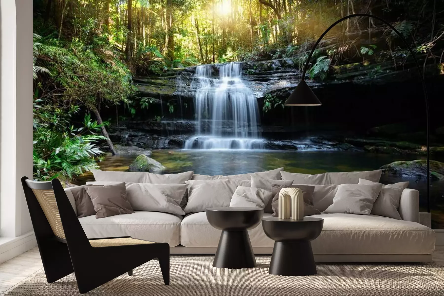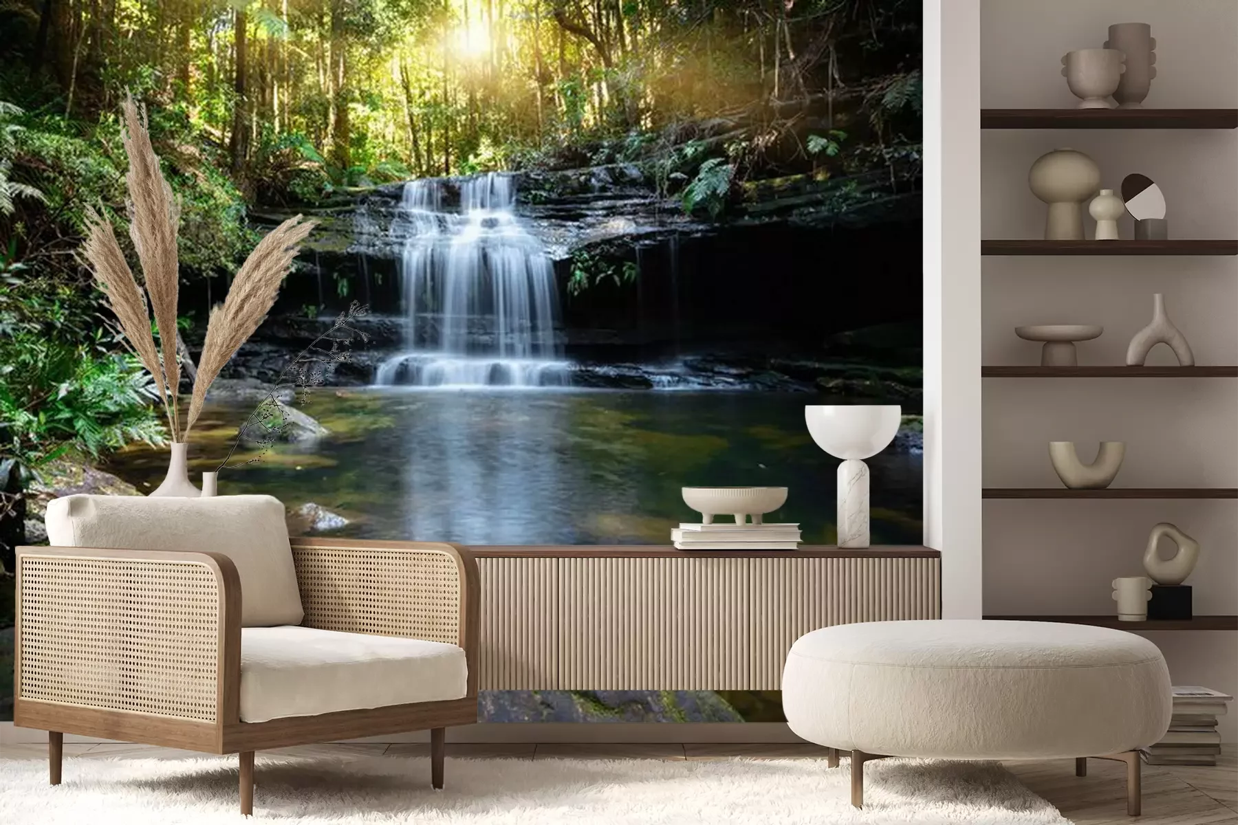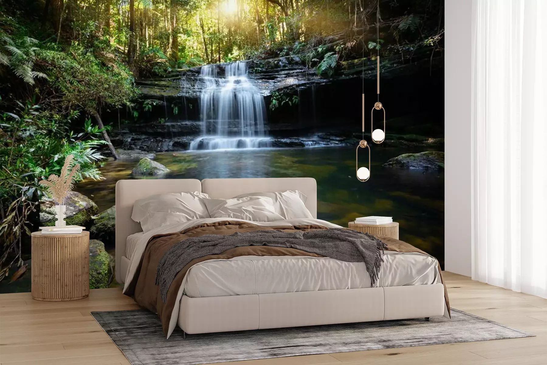 Het materiaal Premium+ is een gestructureerd vinyl op vlies met een gewicht van 255 g/m², dat kleine oneffenheden in de muur effectief camoufleert. De subtiele structuur van fijn zand geeft het oppervlak een exclusieve uitstraling, terwijl de halfmatte afwerking de diepte van de kleuren benadrukt. Het materiaal is dampdoorlatend, waardoor het ook in de keuken en badkamer kan worden gebruikt. De maximale breedte van één baan bedraagt 100 cm – bij grotere afmetingen wordt het fotobehang in meerdere gelijke banen verdeeld. De lijm wordt direct op de muur aangebracht en het behang wordt rand-aan-rand geplakt, wat zorgt voor een esthetisch resultaat zonder zichtbare naden. Het oppervlak kan gemakkelijk worden schoongemaakt door het voorzichtig af te nemen met een vochtige doek.