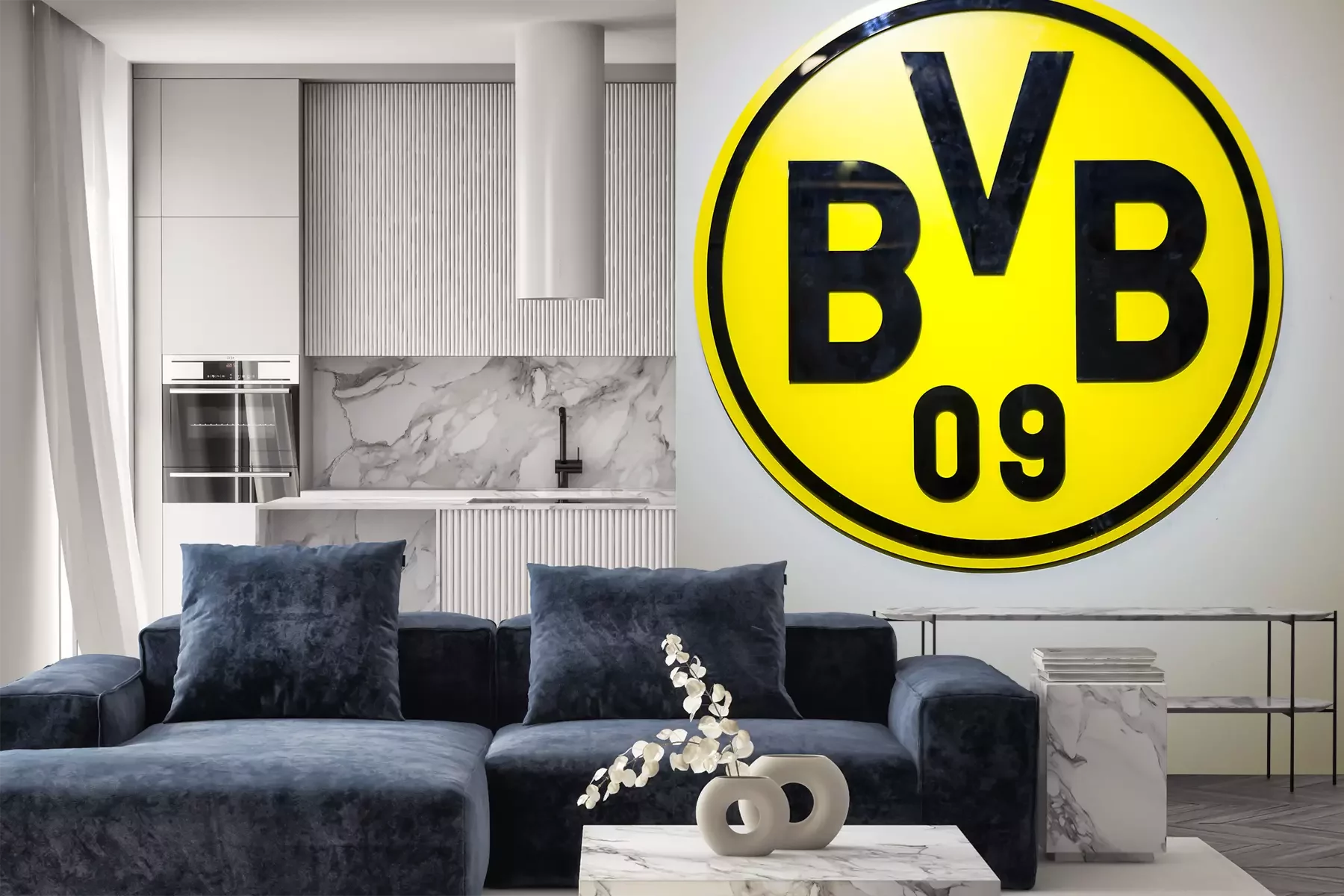 Het materiaal Premium is een glad vinyl op vlies, dat bestand is tegen uitrekken en vervorming. Het is dampdoorlatend – de muren kunnen vrij ademen – waardoor het geschikt is voor gebruik in de keuken en badkamer. Bij vervuiling kan het materiaal worden afgenomen met een vochtige doek. De maximale breedte van één baan bedraagt 95 of 105 cm, afhankelijk van de beschikbaarheid. Montage vindt plaats met de rand-aan-rand methode, wat een esthetisch resultaat zonder zichtbare naden oplevert. Omdat de lijm rechtstreeks op de muur wordt aangebracht, verloopt de installatie van het fotobehang snel en eenvoudig.