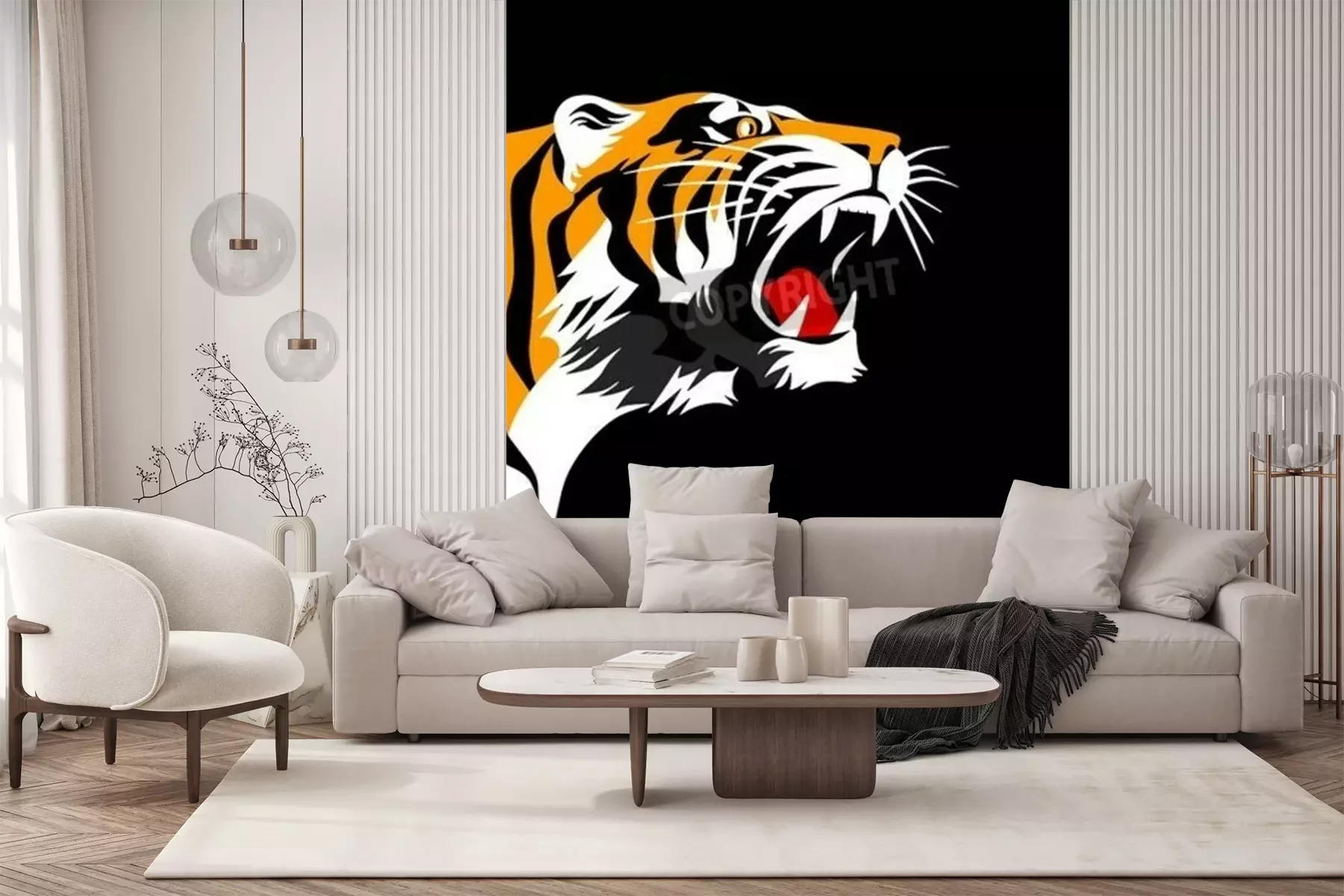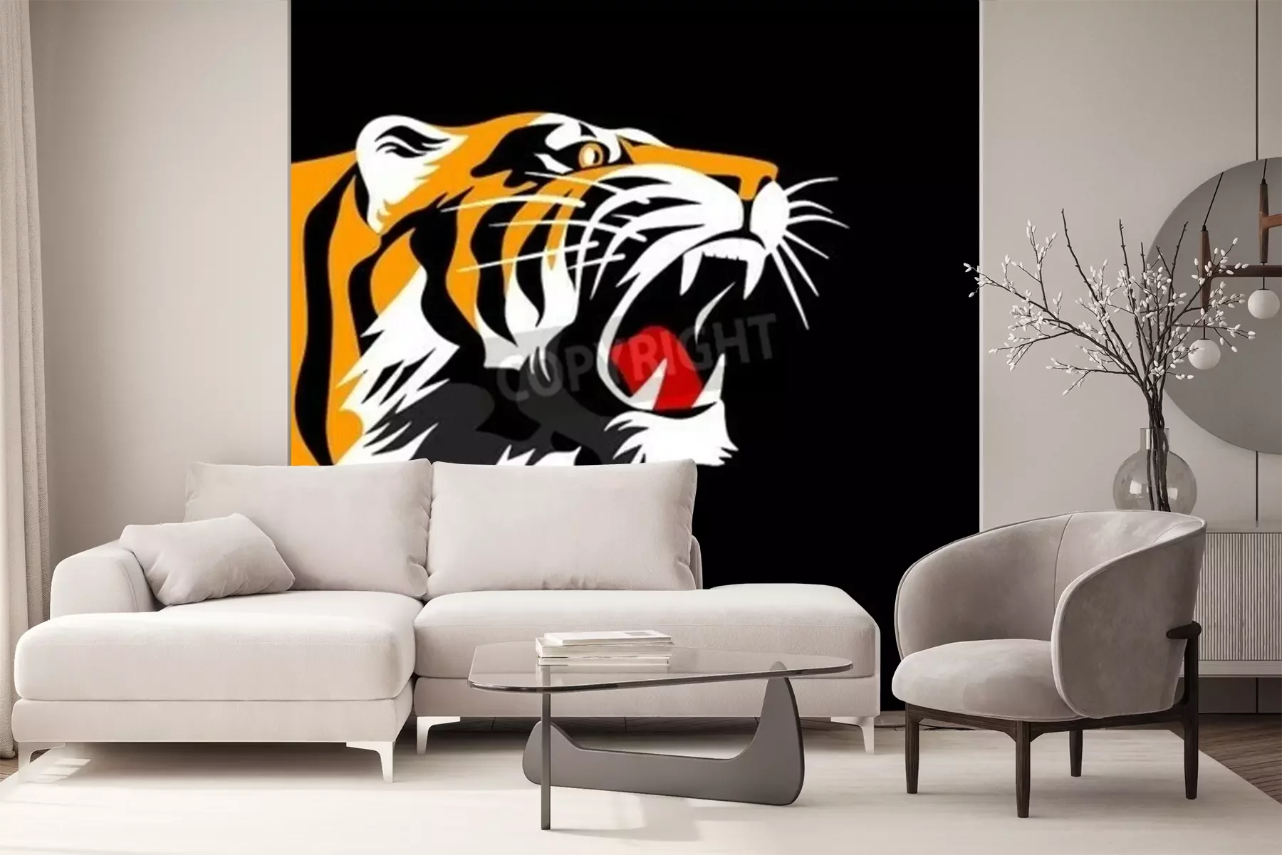 Fotobehang Cartoon tijger op zwarte achtergrond