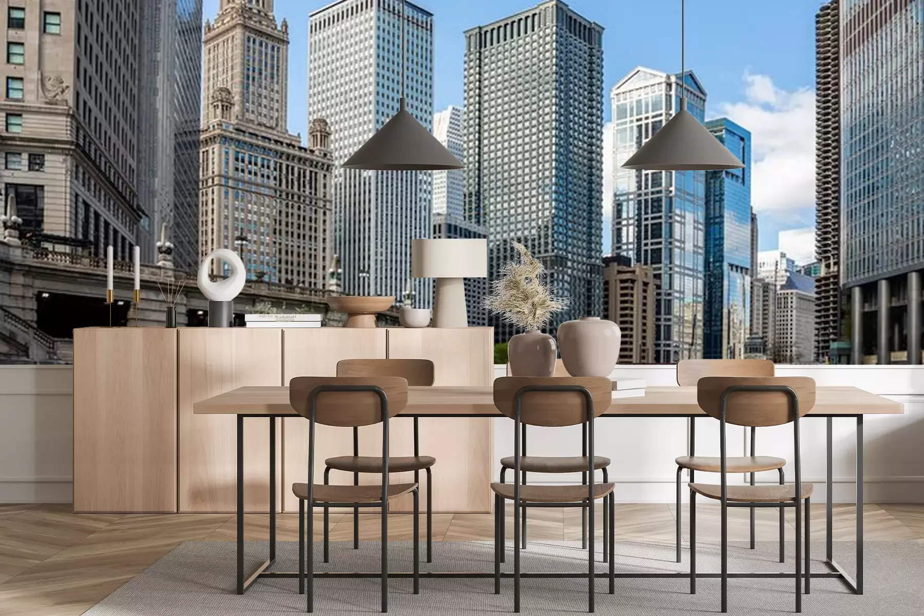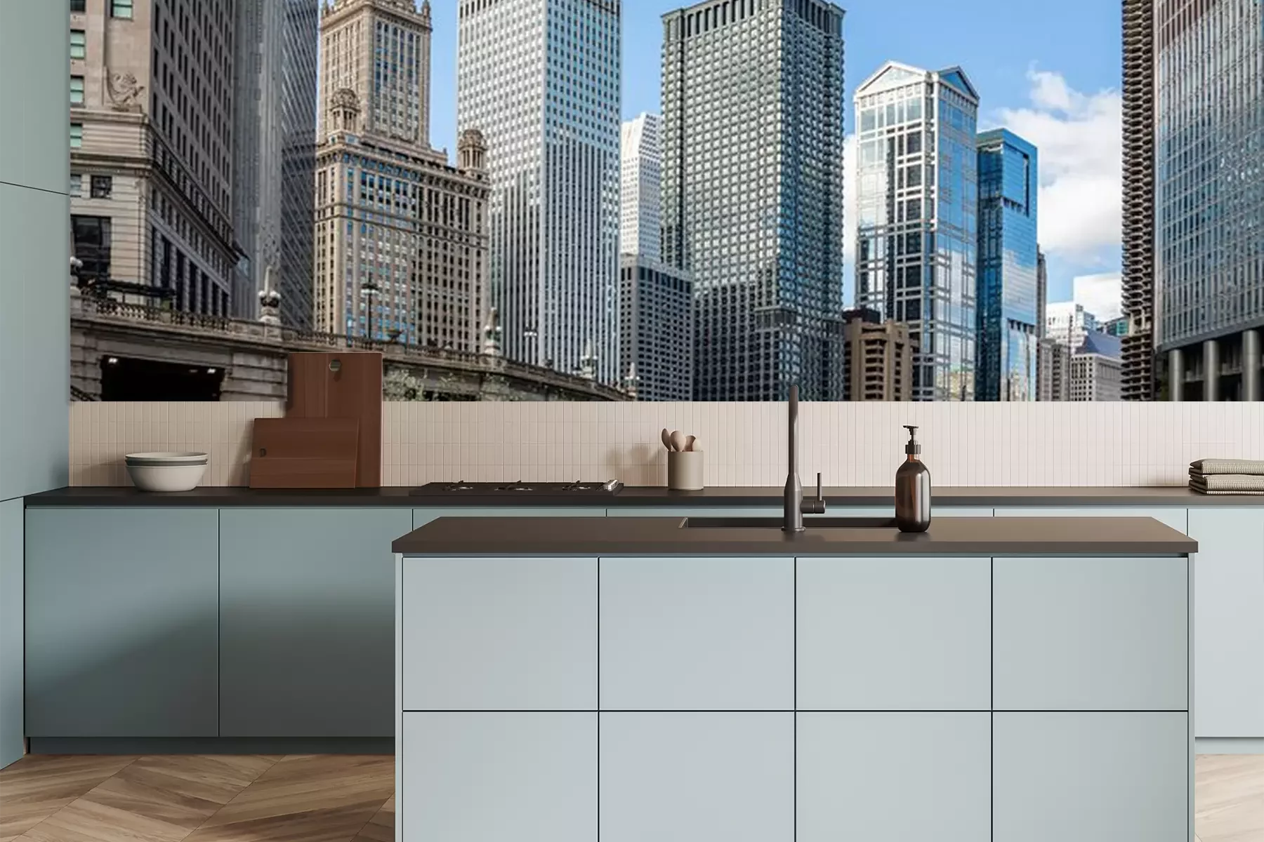 Fotobehang Chicago wolkenkrabbers over de rivier