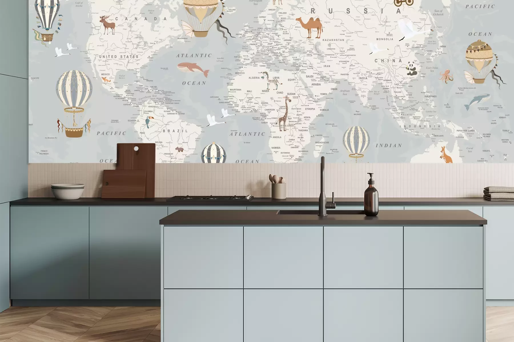 Wereldkaart voor kinderen met dierenProbleemloze bezorging verzorgd door vertrouwde vervoerders