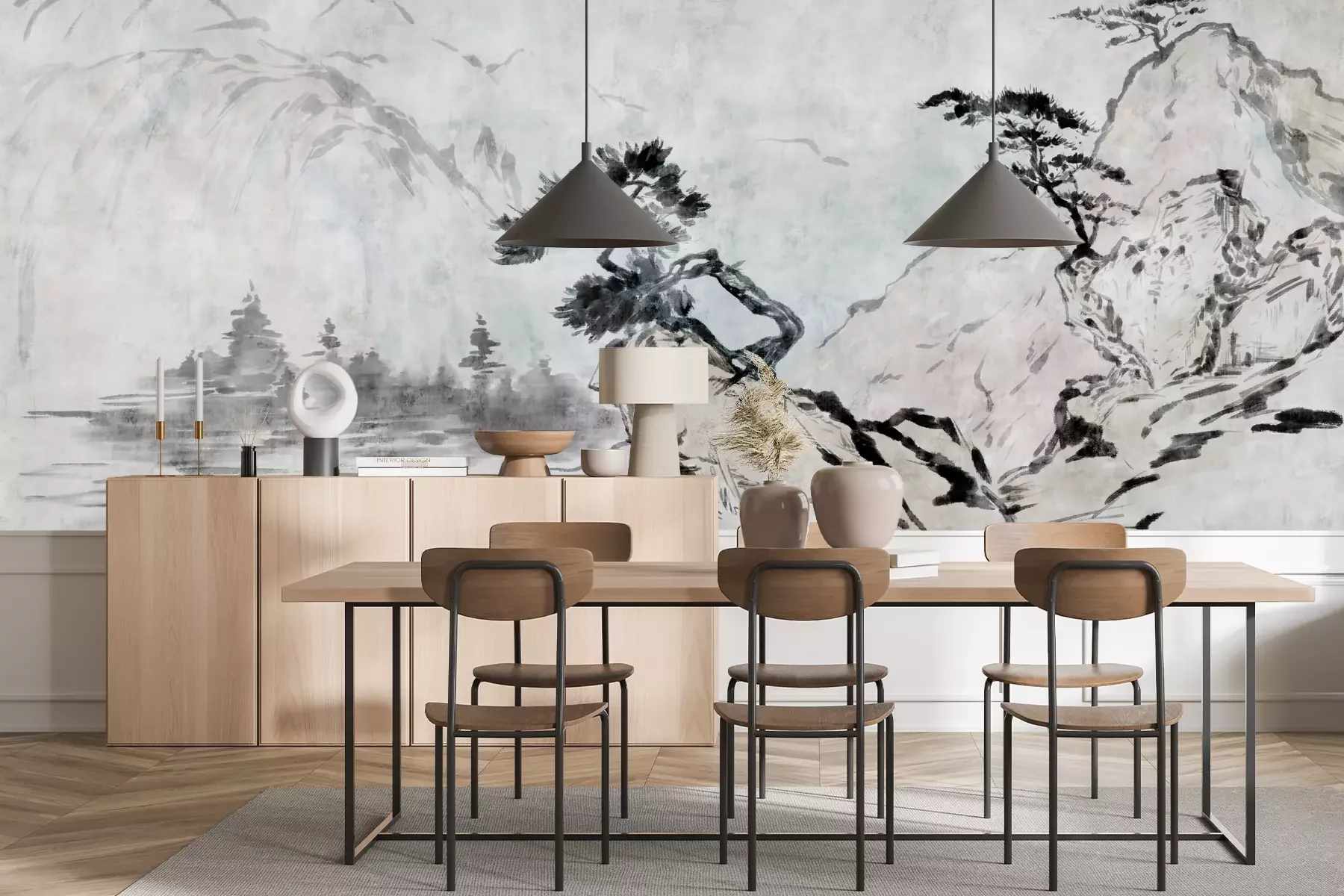 Het materiaal Premium+ is een gestructureerd vinyl op vlies met een gewicht van 255 g/m², dat kleine oneffenheden in de muur effectief camoufleert. De subtiele structuur van fijn zand geeft het oppervlak een exclusieve uitstraling, terwijl de halfmatte afwerking de diepte van de kleuren benadrukt. Het materiaal is dampdoorlatend, waardoor het ook in de keuken en badkamer kan worden gebruikt. De maximale breedte van één baan bedraagt 100 cm – bij grotere afmetingen wordt het fotobehang in meerdere gelijke banen verdeeld. De lijm wordt direct op de muur aangebracht en het behang wordt rand-aan-rand geplakt, wat zorgt voor een esthetisch resultaat zonder zichtbare naden. Het oppervlak kan gemakkelijk worden schoongemaakt door het voorzichtig af te nemen met een vochtige doek.