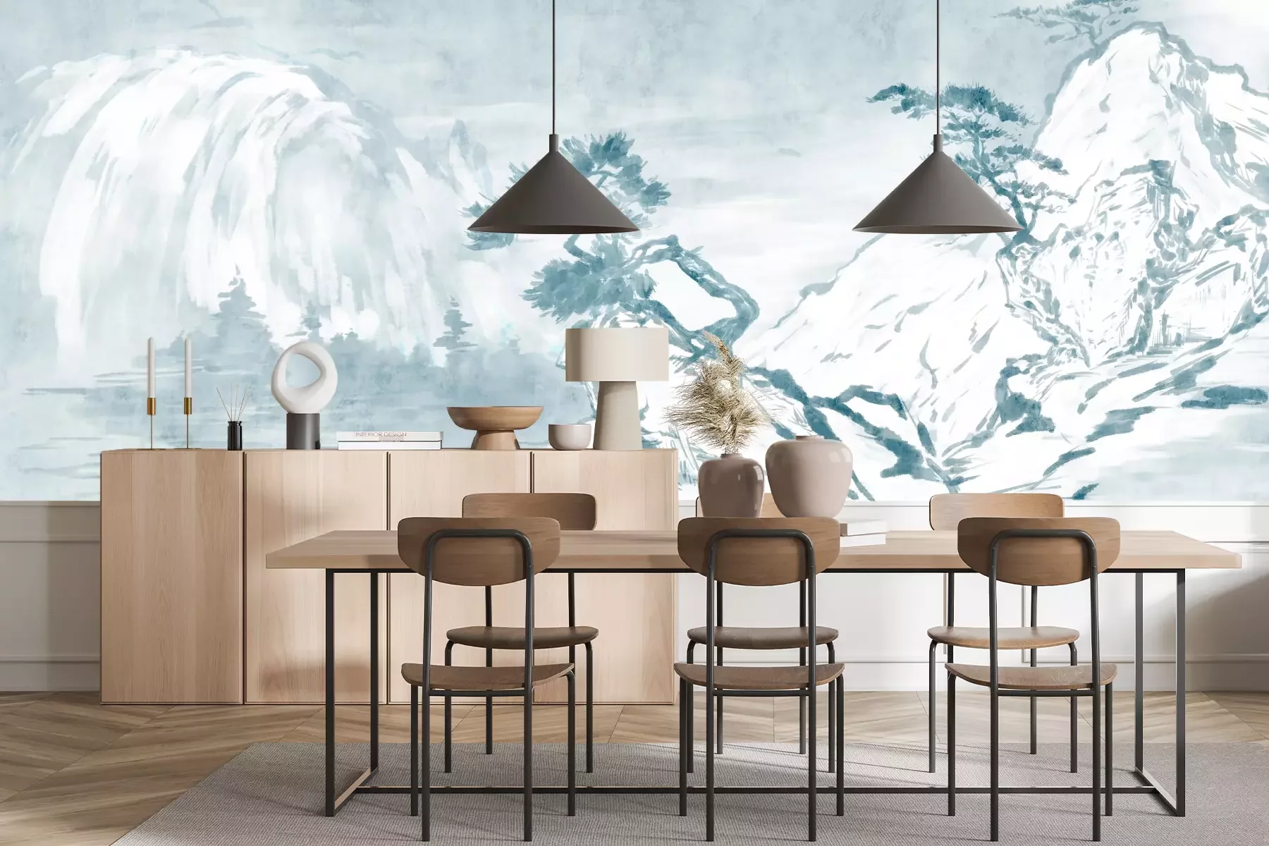 Het materiaal Premium+ is een gestructureerd vinyl op vlies met een gewicht van 255 g/m², dat kleine oneffenheden in de muur effectief camoufleert. De subtiele structuur van fijn zand geeft het oppervlak een exclusieve uitstraling, terwijl de halfmatte afwerking de diepte van de kleuren benadrukt. Het materiaal is dampdoorlatend, waardoor het ook in de keuken en badkamer kan worden gebruikt. De maximale breedte van één baan bedraagt 100 cm – bij grotere afmetingen wordt het fotobehang in meerdere gelijke banen verdeeld. De lijm wordt direct op de muur aangebracht en het behang wordt rand-aan-rand geplakt, wat zorgt voor een esthetisch resultaat zonder zichtbare naden. Het oppervlak kan gemakkelijk worden schoongemaakt door het voorzichtig af te nemen met een vochtige doek.
