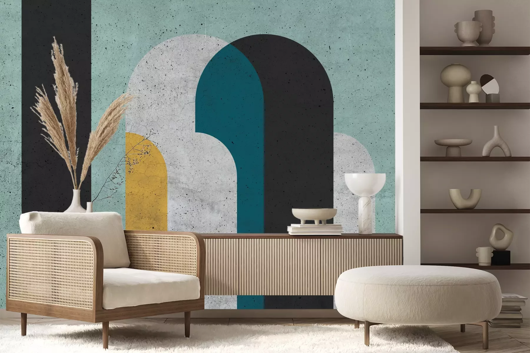 Het materiaal Premium+ is een gestructureerd vinyl op vlies met een gewicht van 255 g/m², dat kleine oneffenheden in de muur effectief camoufleert. De subtiele structuur van fijn zand geeft het oppervlak een exclusieve uitstraling, terwijl de halfmatte afwerking de diepte van de kleuren benadrukt. Het materiaal is dampdoorlatend, waardoor het ook in de keuken en badkamer kan worden gebruikt. De maximale breedte van één baan bedraagt 100 cm – bij grotere afmetingen wordt het fotobehang in meerdere gelijke banen verdeeld. De lijm wordt direct op de muur aangebracht en het behang wordt rand-aan-rand geplakt, wat zorgt voor een esthetisch resultaat zonder zichtbare naden. Het oppervlak kan gemakkelijk worden schoongemaakt door het voorzichtig af te nemen met een vochtige doek.