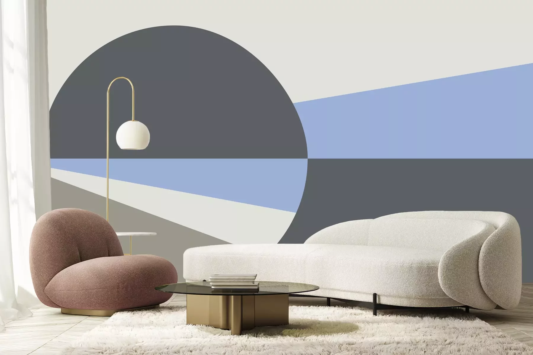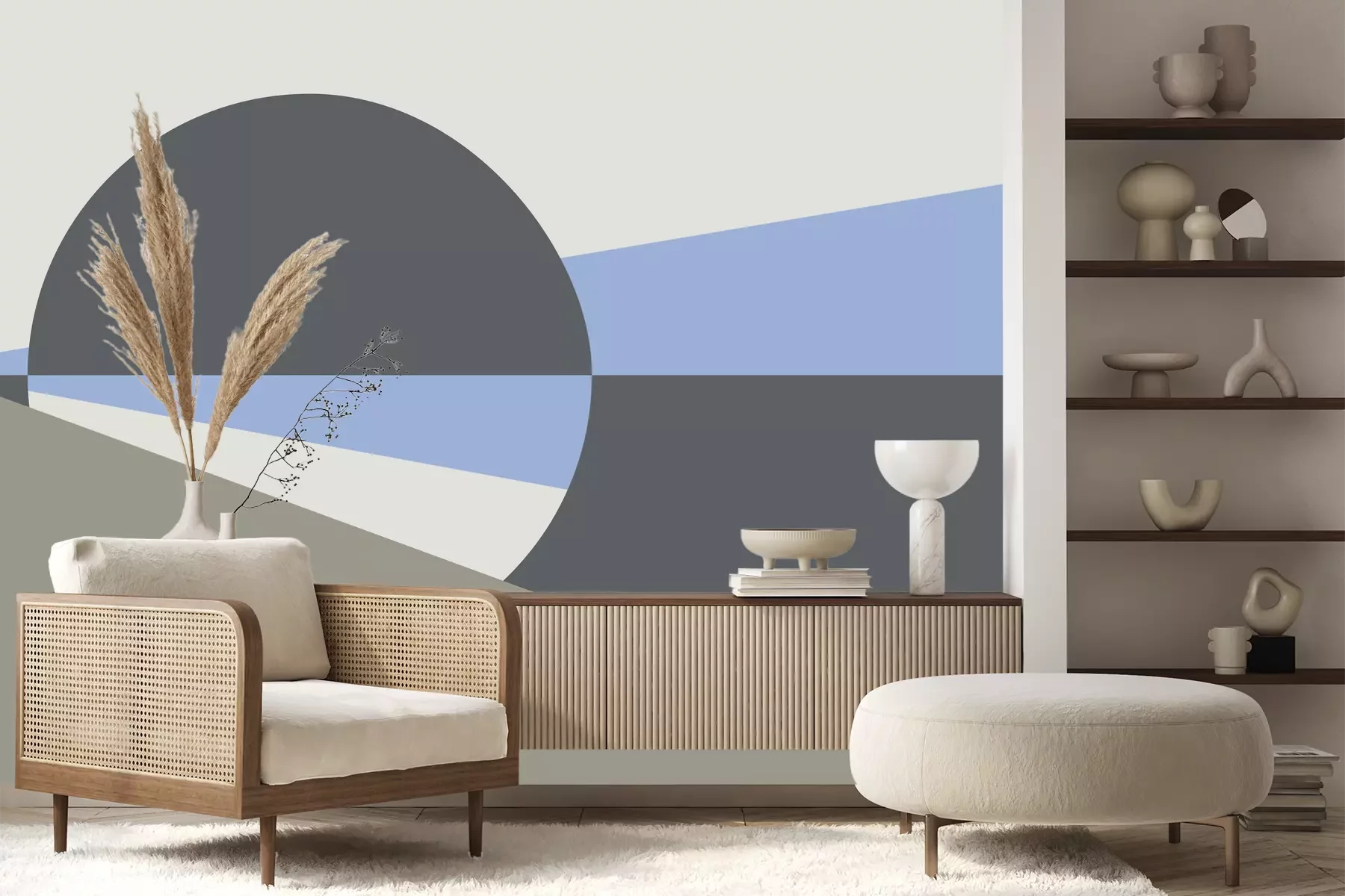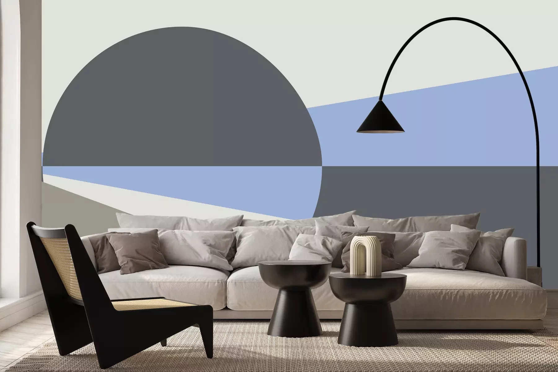 Cirkel en driehoeken in grijstinten