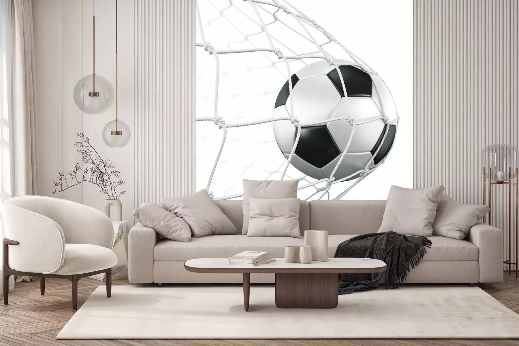 Het materiaal Premium+ is een gestructureerd vinyl op vlies met een gewicht van 255 g/m², dat kleine oneffenheden in de muur effectief camoufleert. De subtiele structuur van fijn zand geeft het oppervlak een exclusieve uitstraling, terwijl de halfmatte afwerking de diepte van de kleuren benadrukt. Het materiaal is dampdoorlatend, waardoor het ook in de keuken en badkamer kan worden gebruikt. De maximale breedte van één baan bedraagt 100 cm – bij grotere afmetingen wordt het fotobehang in meerdere gelijke banen verdeeld. De lijm wordt direct op de muur aangebracht en het behang wordt rand-aan-rand geplakt, wat zorgt voor een esthetisch resultaat zonder zichtbare naden. Het oppervlak kan gemakkelijk worden schoongemaakt door het voorzichtig af te nemen met een vochtige doek.