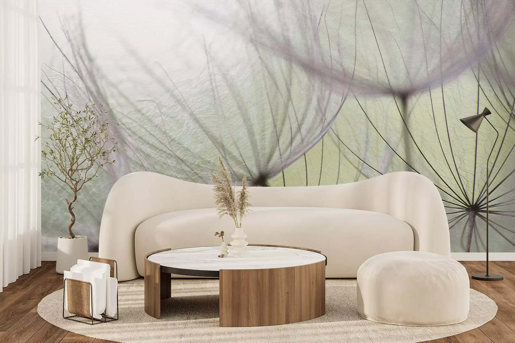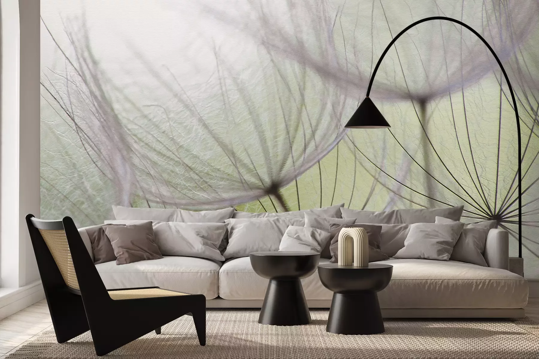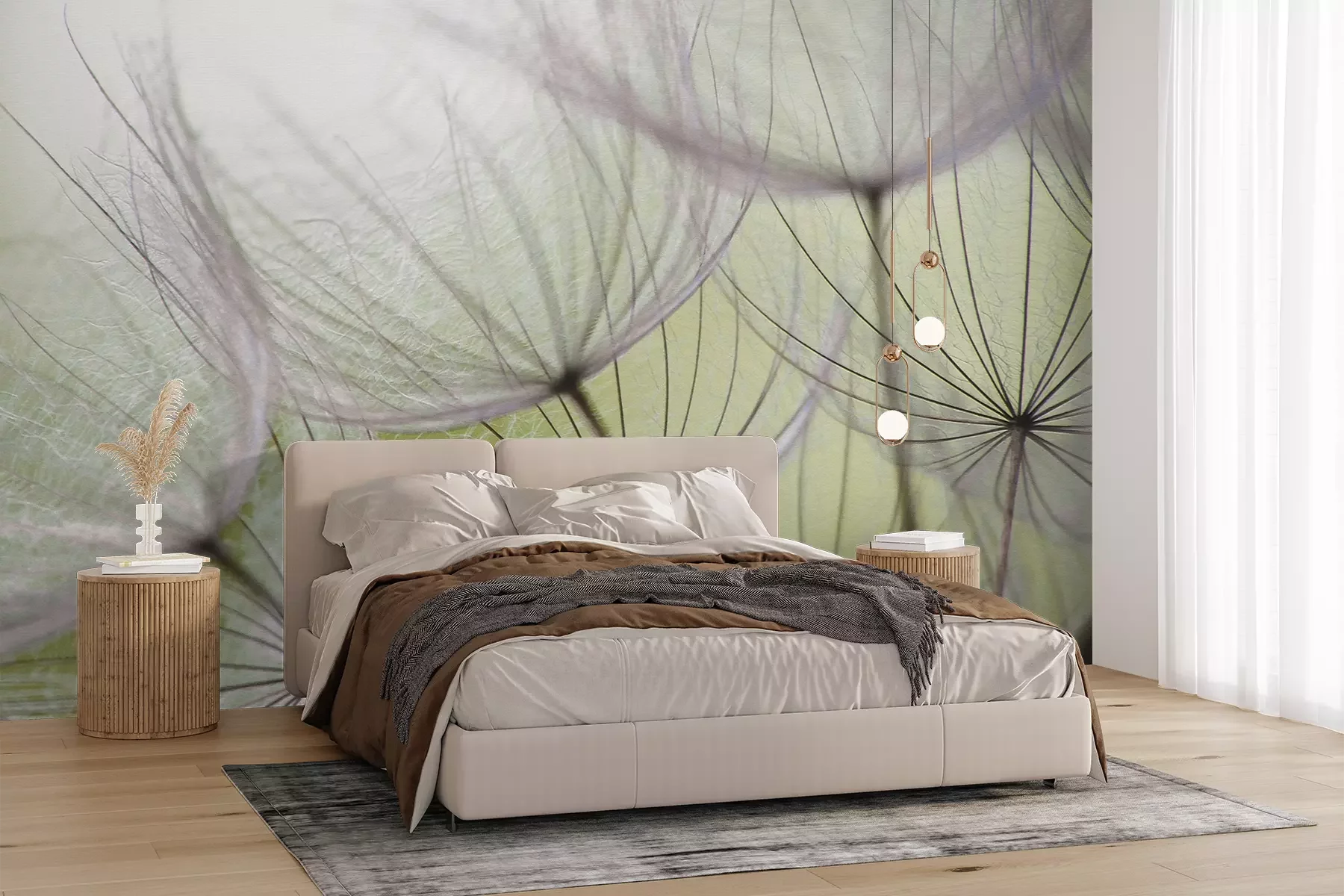 Het materiaal Premium+ is een gestructureerd vinyl op vlies met een gewicht van 255 g/m², dat kleine oneffenheden in de muur effectief camoufleert. De subtiele structuur van fijn zand geeft het oppervlak een exclusieve uitstraling, terwijl de halfmatte afwerking de diepte van de kleuren benadrukt. Het materiaal is dampdoorlatend, waardoor het ook in de keuken en badkamer kan worden gebruikt. De maximale breedte van één baan bedraagt 100 cm – bij grotere afmetingen wordt het fotobehang in meerdere gelijke banen verdeeld. De lijm wordt direct op de muur aangebracht en het behang wordt rand-aan-rand geplakt, wat zorgt voor een esthetisch resultaat zonder zichtbare naden. Het oppervlak kan gemakkelijk worden schoongemaakt door het voorzichtig af te nemen met een vochtige doek.