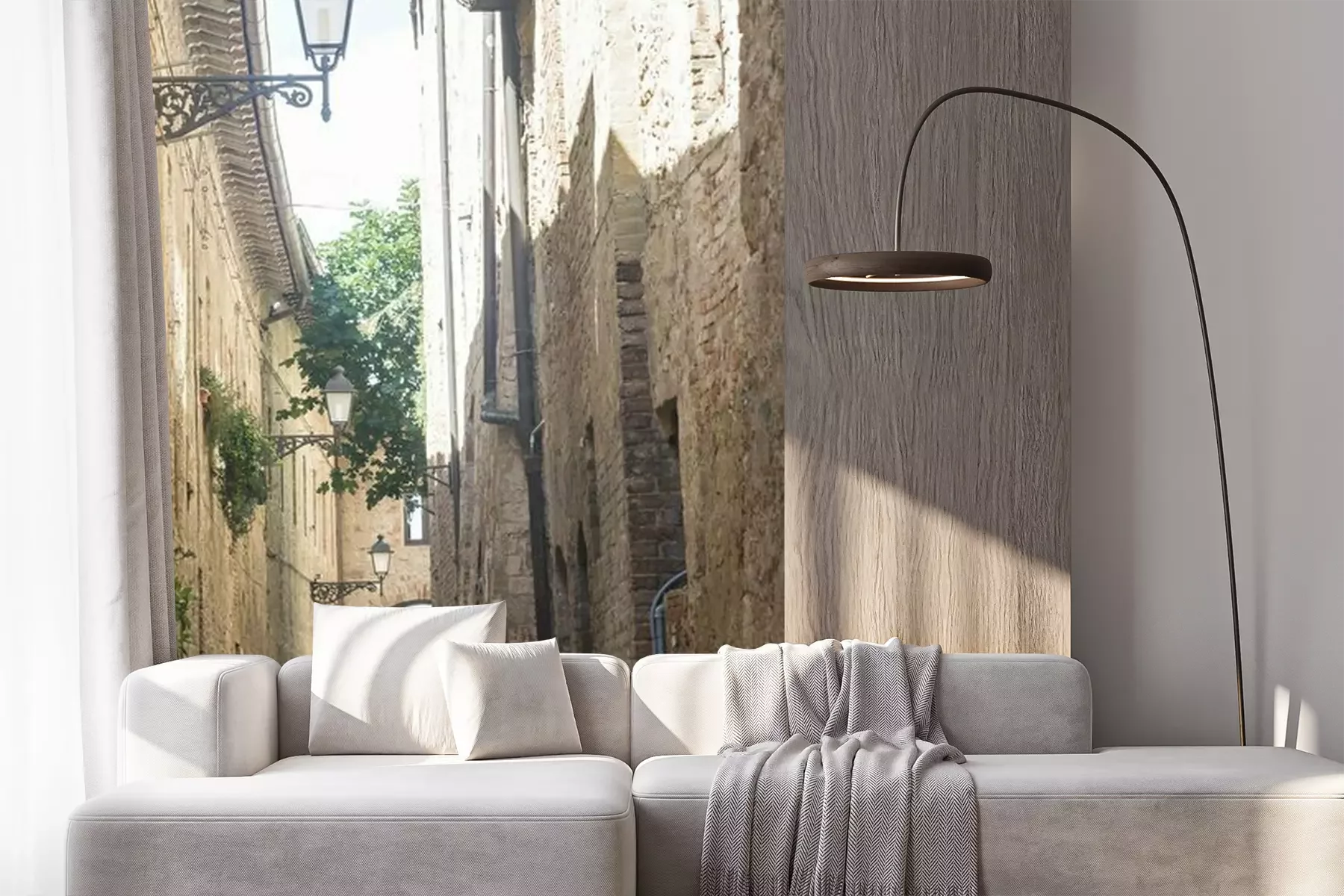 Het materiaal Premium+ is een gestructureerd vinyl op vlies met een gewicht van 255 g/m², dat kleine oneffenheden in de muur effectief camoufleert. De subtiele structuur van fijn zand geeft het oppervlak een exclusieve uitstraling, terwijl de halfmatte afwerking de diepte van de kleuren benadrukt. Het materiaal is dampdoorlatend, waardoor het ook in de keuken en badkamer kan worden gebruikt. De maximale breedte van één baan bedraagt 100 cm – bij grotere afmetingen wordt het fotobehang in meerdere gelijke banen verdeeld. De lijm wordt direct op de muur aangebracht en het behang wordt rand-aan-rand geplakt, wat zorgt voor een esthetisch resultaat zonder zichtbare naden. Het oppervlak kan gemakkelijk worden schoongemaakt door het voorzichtig af te nemen met een vochtige doek.