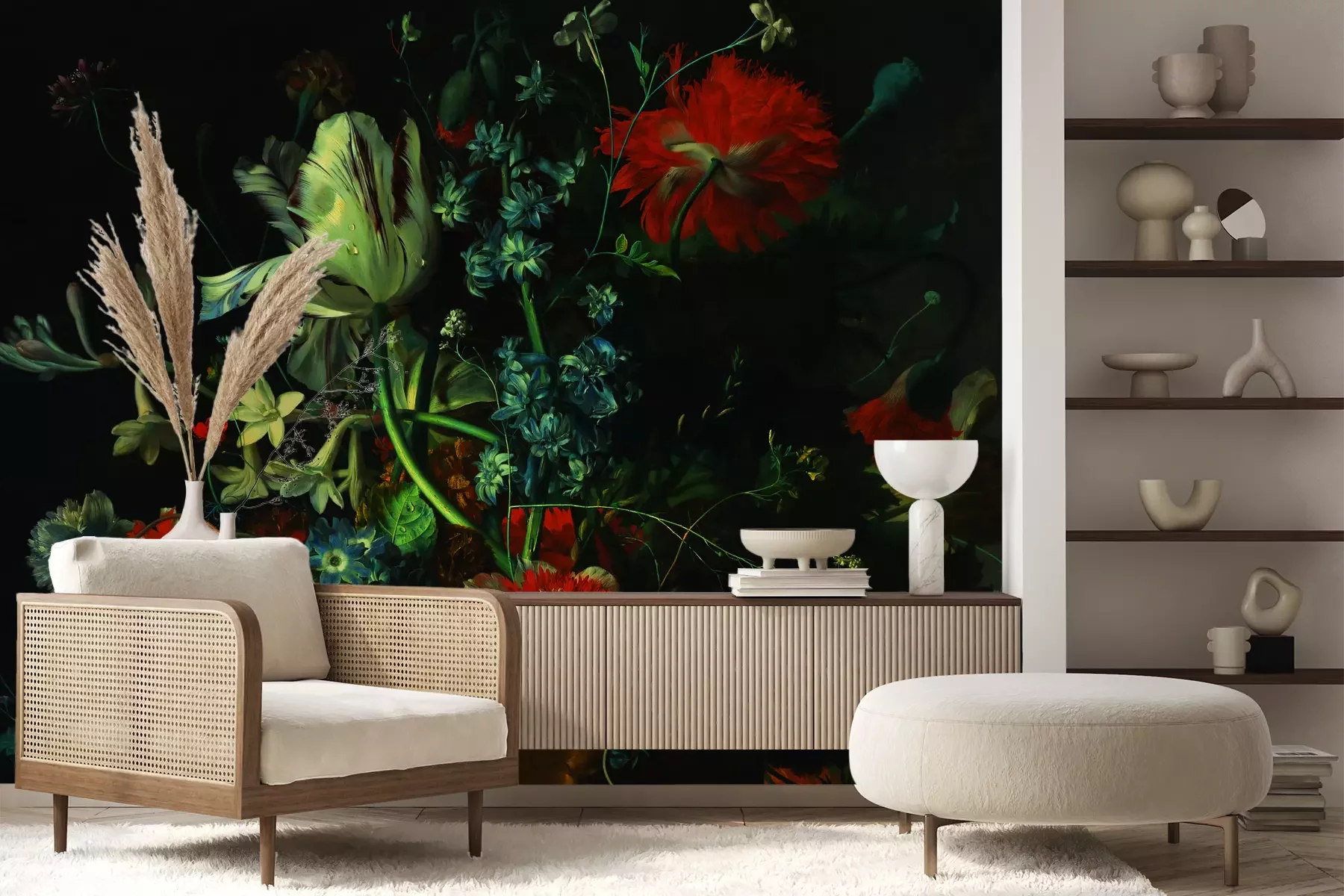 Het materiaal Standard is een hoogwaardig latexmateriaal met een glad, mat oppervlak. Dankzij de HP Latex-printtechnologie zijn de kleuren intens, duurzaam en UV-bestendig, waardoor het patroon jarenlang een onberispelijke uitstraling behoudt. Vervuilde oppervlakken kunnen voorzichtig worden afgeveegd met een droge doek. De maximale breedte van één baan bedraagt 95 cm of 105 cm – afhankelijk van de bestelde fotobehangbreedte. Bij grotere afmetingen wordt het patroon verdeeld over meerdere gelijkmatige banen. Het fotobehang wordt rand-aan-randaangebracht, wat vrijwel onzichtbare naden mogelijk maakt.